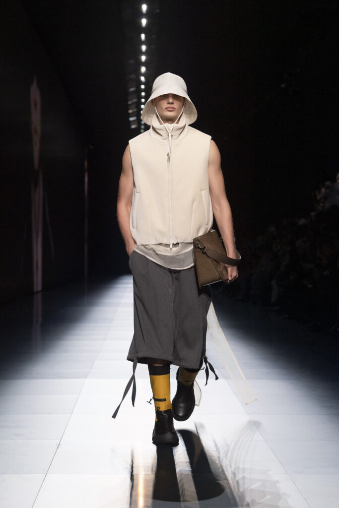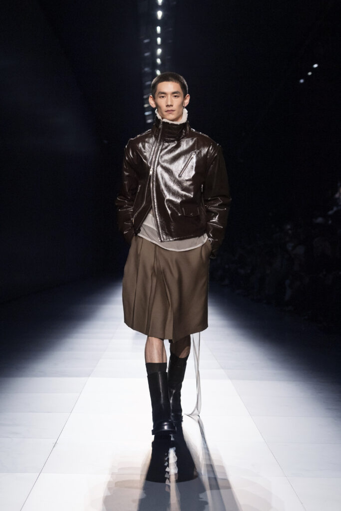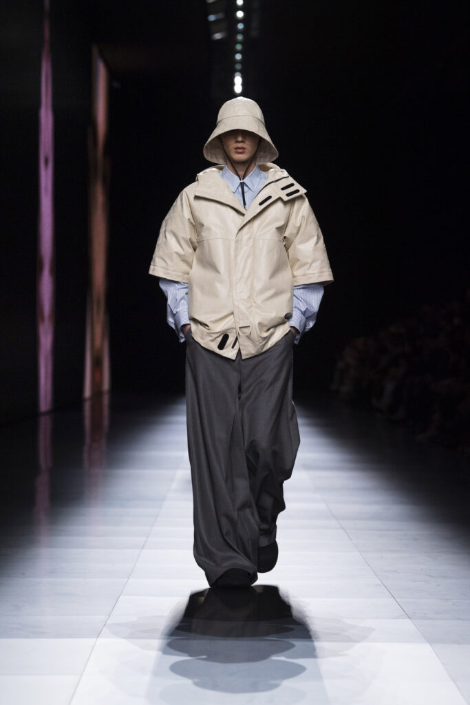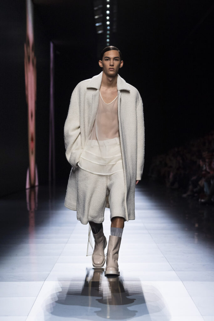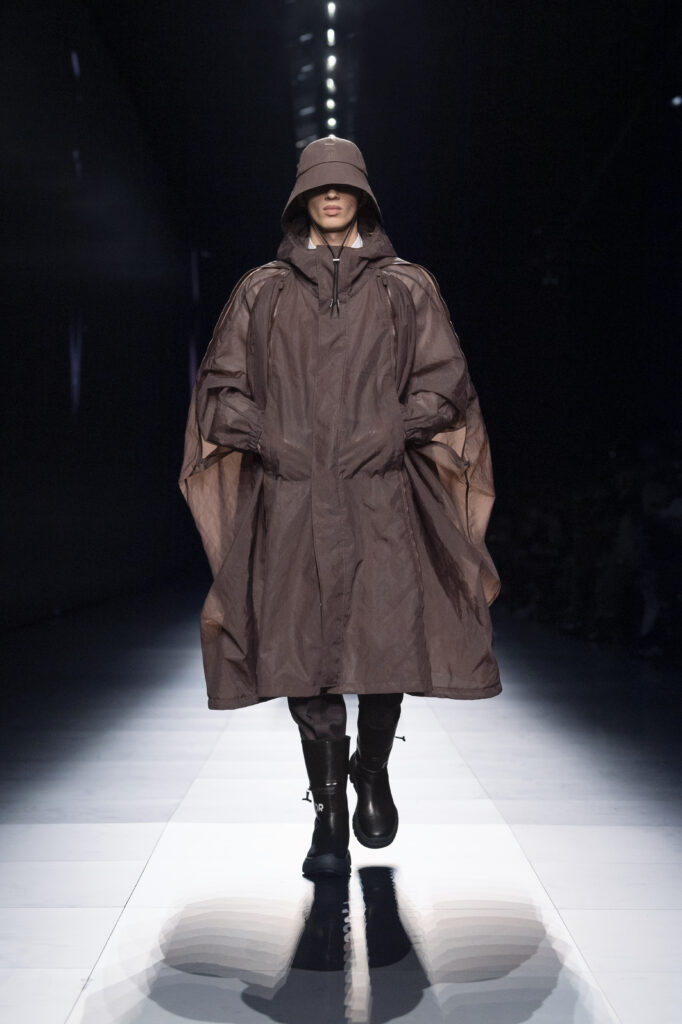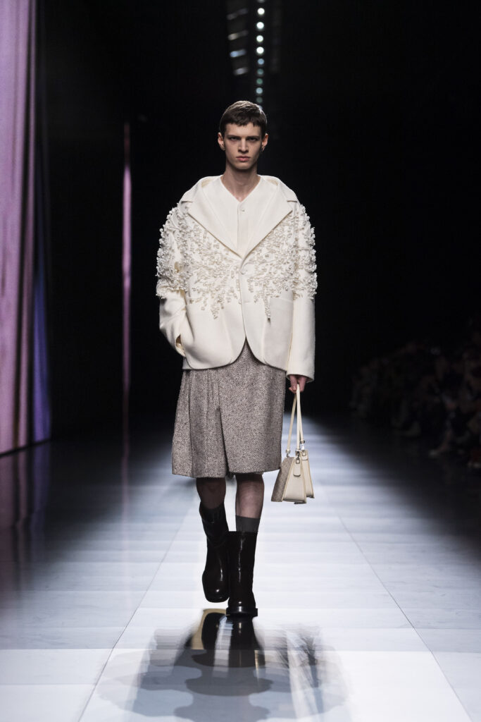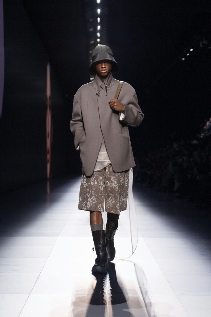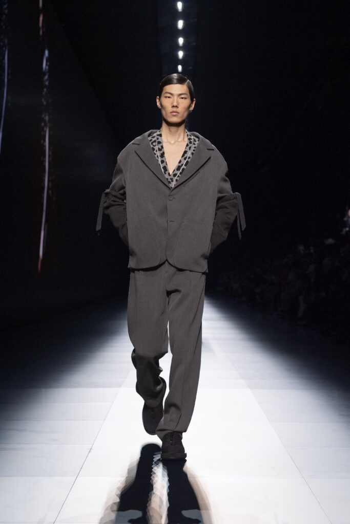 Le fleuve de la Tamise à Londres et la Seine à Paris ont inspiré le directeur artistique des lignes masculines de Dior, Kim Jones, pour sa collection d’hiver 2023-2024. Cette collection met en avant la circulation, l’aisance et la fluidité, reflétant les remous et les flux de l’eau. Cette dynamique rappelle également celle recherchée par Yves Saint Laurent, qui a pris la tête de Dior à seulement 21 ans, l’un des plus jeunes couturiers de l’histoire. Les modèles absorbent les leçons du passé pour les appliquer au présent et au futur : les vêtements s’hybrident et se métamorphosent de manière originale, s’adaptant à celui qui les porte.