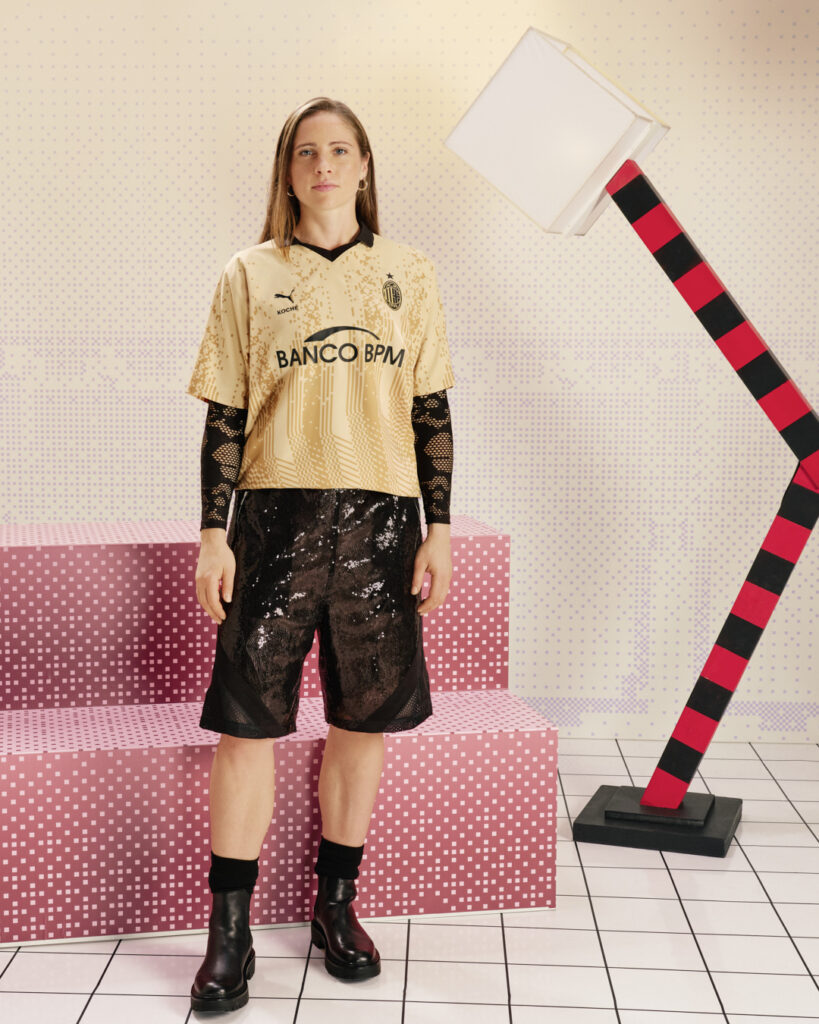 Casper Stylsvig, Chief Revenue Officer of AC Milan, commented: “This Fourth kit designed by PUMA and KOCHÉ is the perfect incarnation of AC Milan’s innovative drive to be a pioneer and a trend setter. With its ability to incorporate our red and black colors with gold and its modern design, the kit combines heritage and innovation, and it is a testament to AC Milan’s ability to merge football and fashion in a credible and authentic way.” Christelle KOCHER, Founder and Creative Director of KOCHÉ said: “It was such an honor for me to work on this cult jersey. I am a football fan and AC Milan is one of the most iconic football clubs of all time. I am very proud to bring an elegant KOCHÉ touch to AC Milan players on the pitch. It was a real pleasure to deep dive into AC Milan’s DNA and give my modern take on the red and black stripes.”