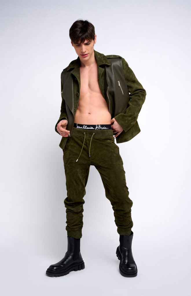 Jean-Claude Jitrois, qui aime à stimuler tous les sens, a donc exploré de nouvelles textures cette saison : il a introduit des garnitures en agneau de Mongolie et revisité les franges dans des endroits inattendus. L’aspect doux et plus vaporeux de l’agneau de Mongolie possède un contraste rafraîchissant avec la précision et la permanence du cuir, créant ainsi des manteaux élégants et polyvalents pour les fêtes et le quotidien. Tout en faisant parfois un clin d’œil au style contemporain de la rue, ils conservent la silhouette immédiatement reconnaissable de la maison. La frange de cuir, autre élément essentiel de l’esthétique Jitrois est montré dans son mouvement le plus dynamique et le plus séduisant, dans un noir profond et dans un nouveau jaune Citrine, en guêtres sur le bas de la jambe. Elles apportent une touche dramatique aux looks, avec un côté presque ludique et polyvalent. Enfin, Jitrois propose de nouvelles formes dans un daim somptueux, avec des vestes à capuche de style militaire : remarquables mais incroyablement douces au toucher.