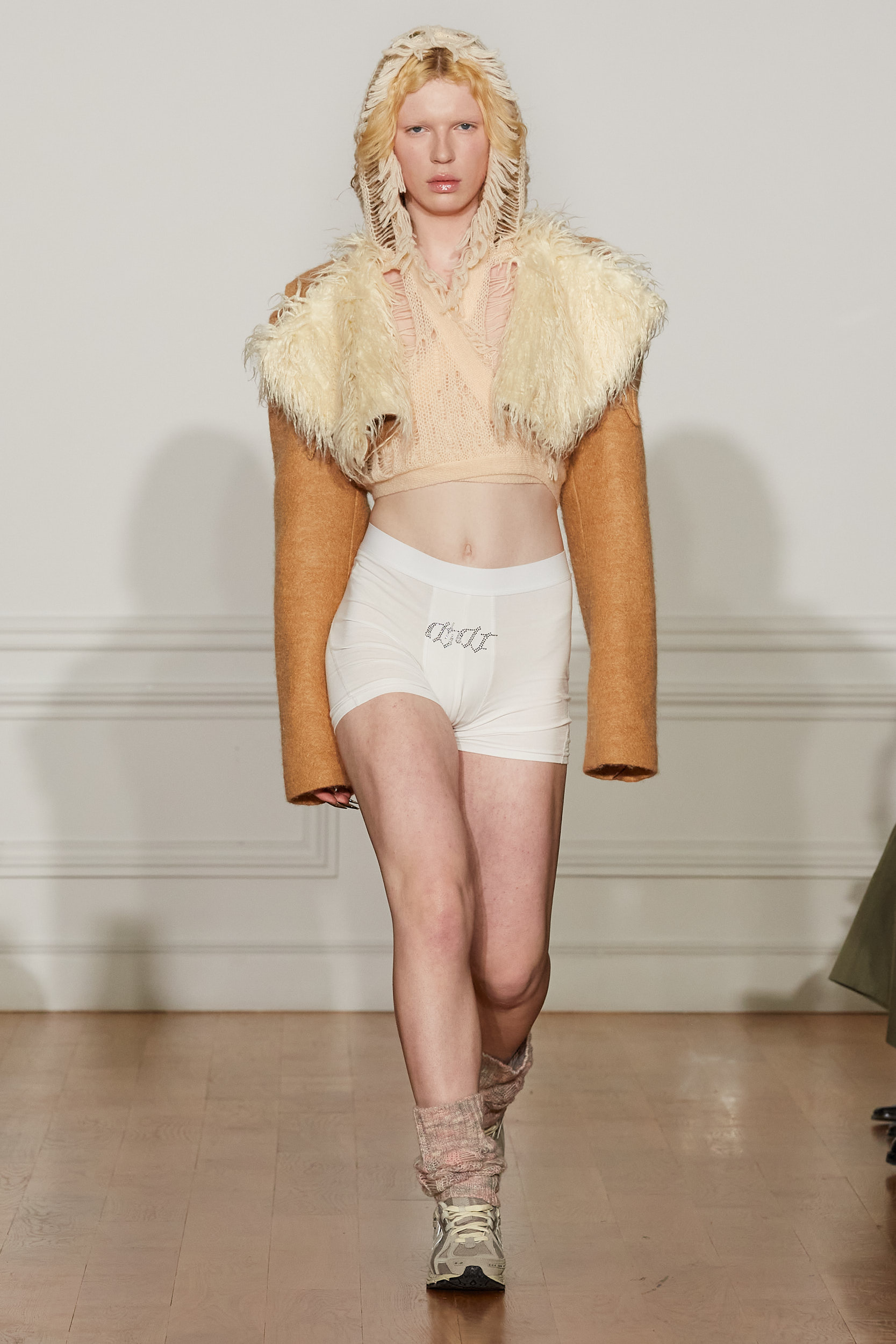 Malgré la beauté des vêtements, il y a une certaine urgence dans la collection. Les denims délavés et les couleurs fanées, les tricots délicatement détruits et les jambières dans une palette de crème évoquent une certaine détresse. Pour Di Du, ces moments de bonheur sont éphémères et il est important de les chérir avant qu’ils ne disparaissent lentement.