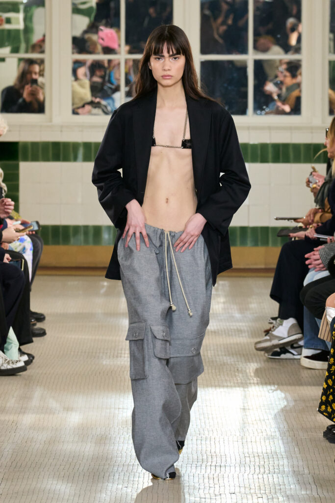 Inspirée par l’univers de la science-fiction, la silhouette « Iagarçonne » ou des looks masculins à la fois décontractés et géométriques, VICTORIA/TOMAS a traduit sa vision à travers des pièces qui résonnent avec le temps présent et nous emmènent vers l’avenir.
