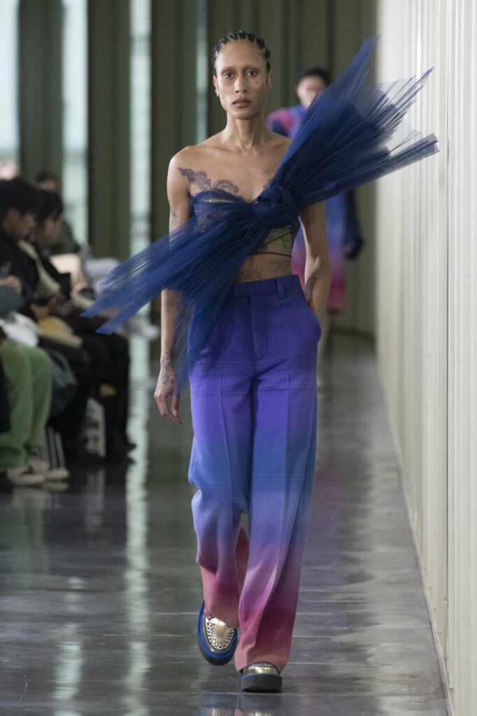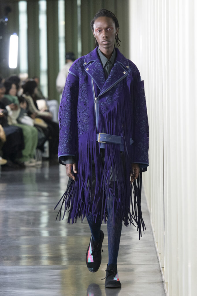 La collection se compose de pièces de haute couture pour femmes et hommes, avec des coupes déstructurées et des détails sur mesure. La présentation a également révélé des collaborations avec des marques comme 66° North, Alcantara, G-SHOCK et New Era, qui ont ajouté une touche supplémentaire à la collection.