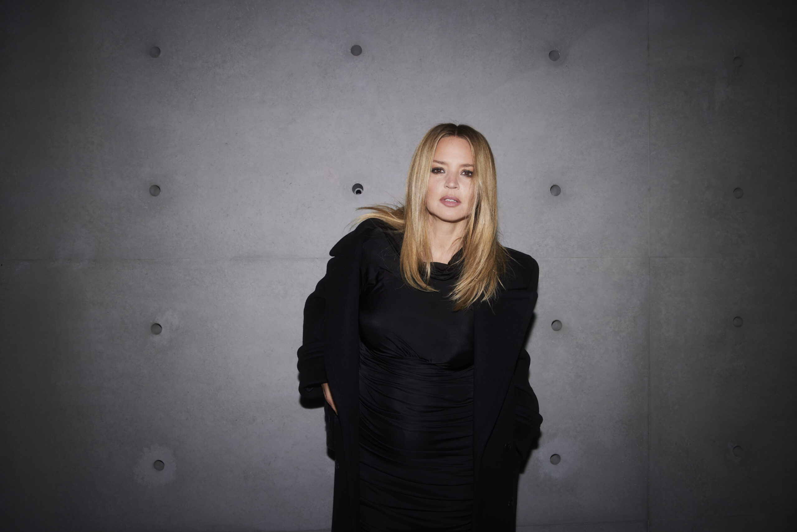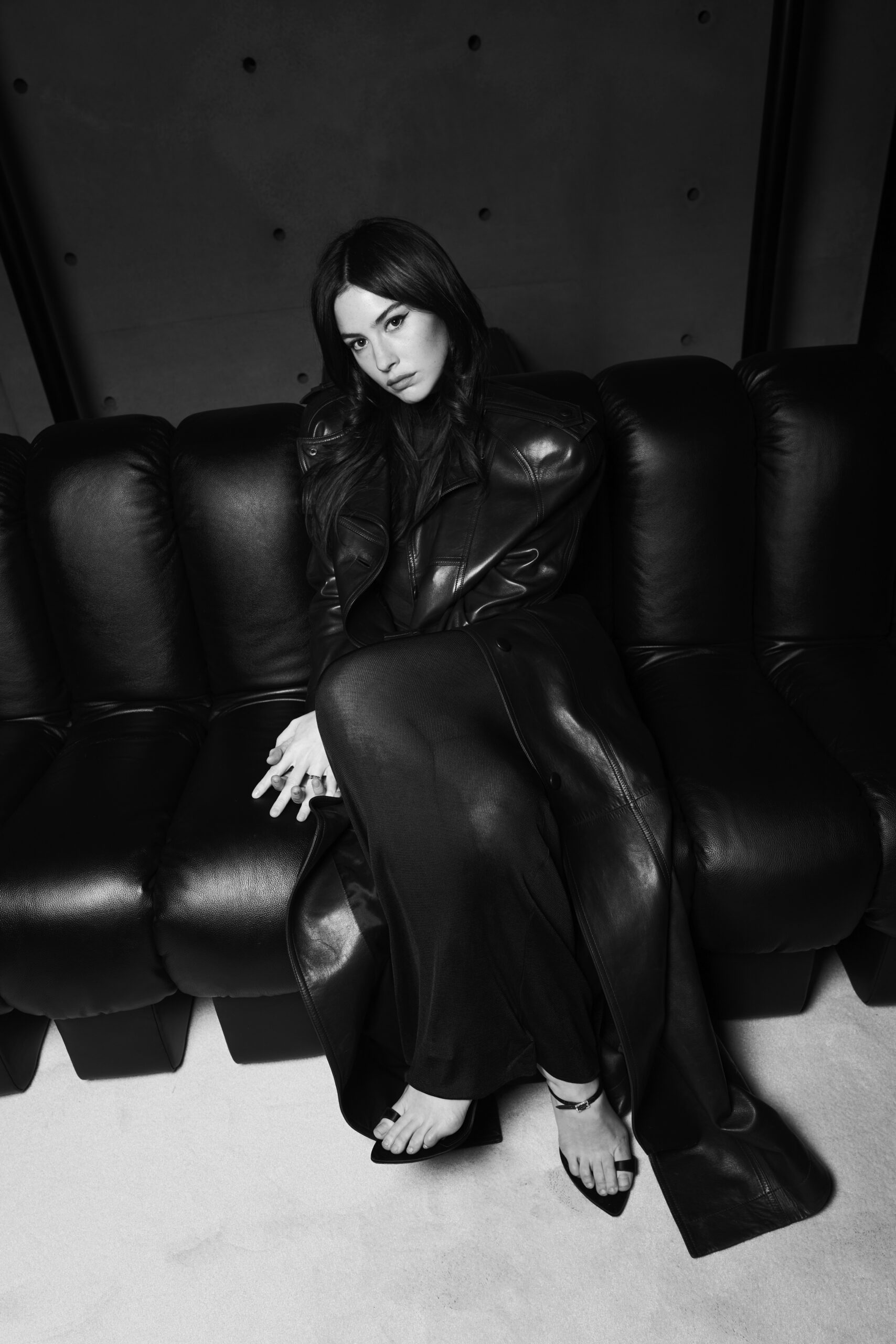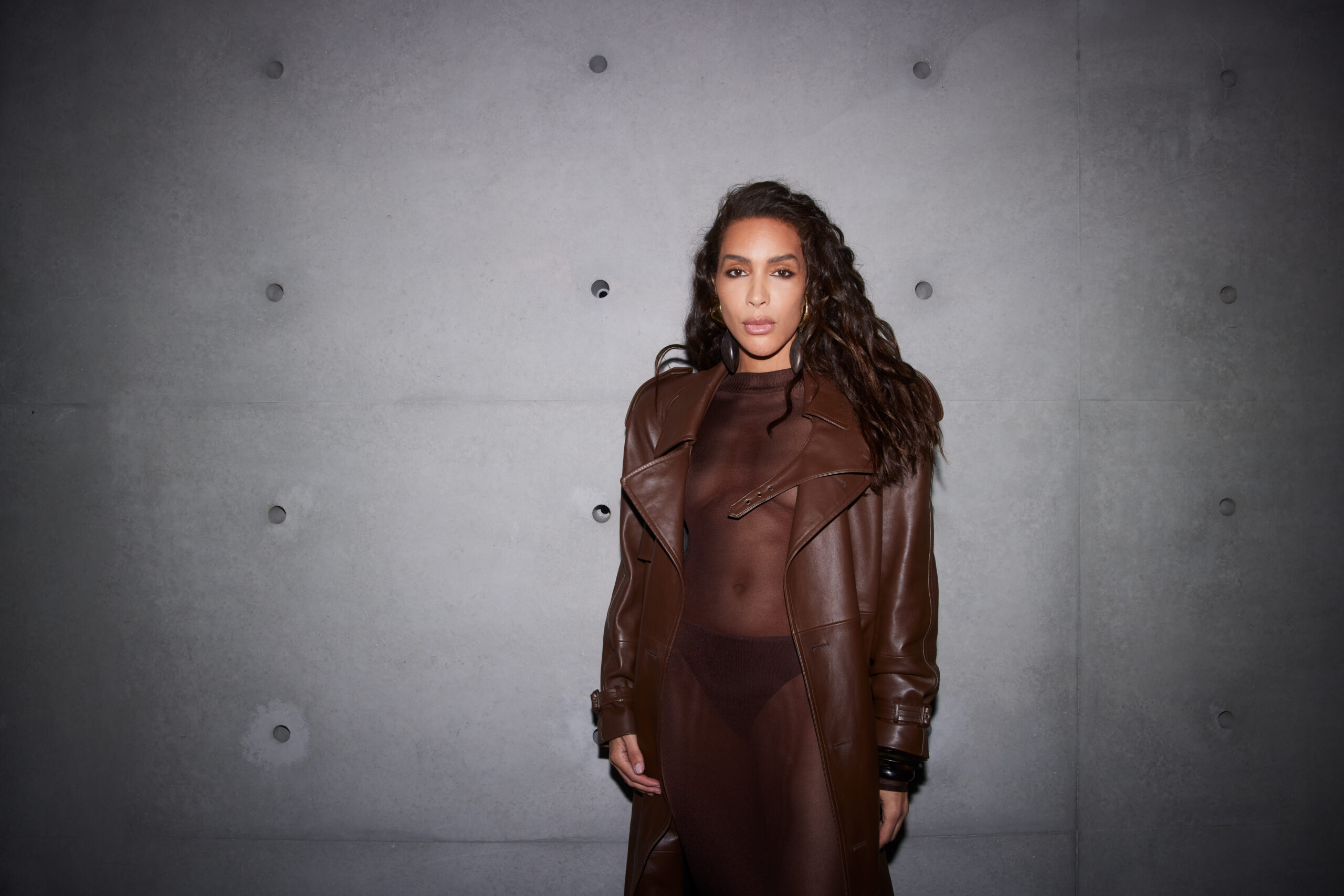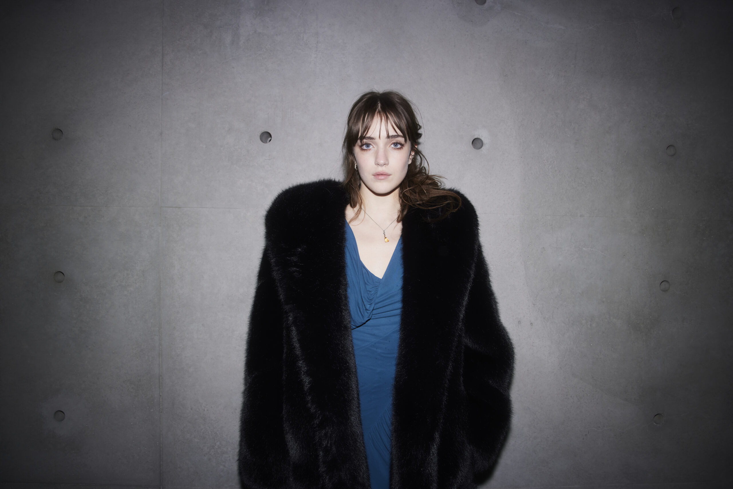 La palette de couleurs est épurée, entre noir, blanc, camel, bleu marine et des touches d’argent qui renforcent l’idée d’une sophistication audacieuse. Des matières douces comme le mohair, le cachemire, le satin et le velours contrastent avec des textures plus rugueuses pour un rendu harmonieux.