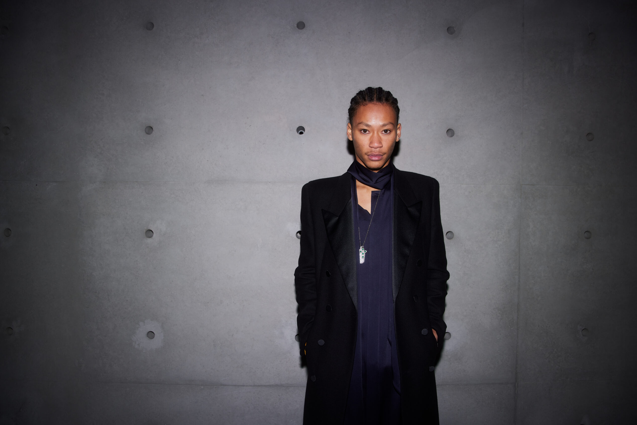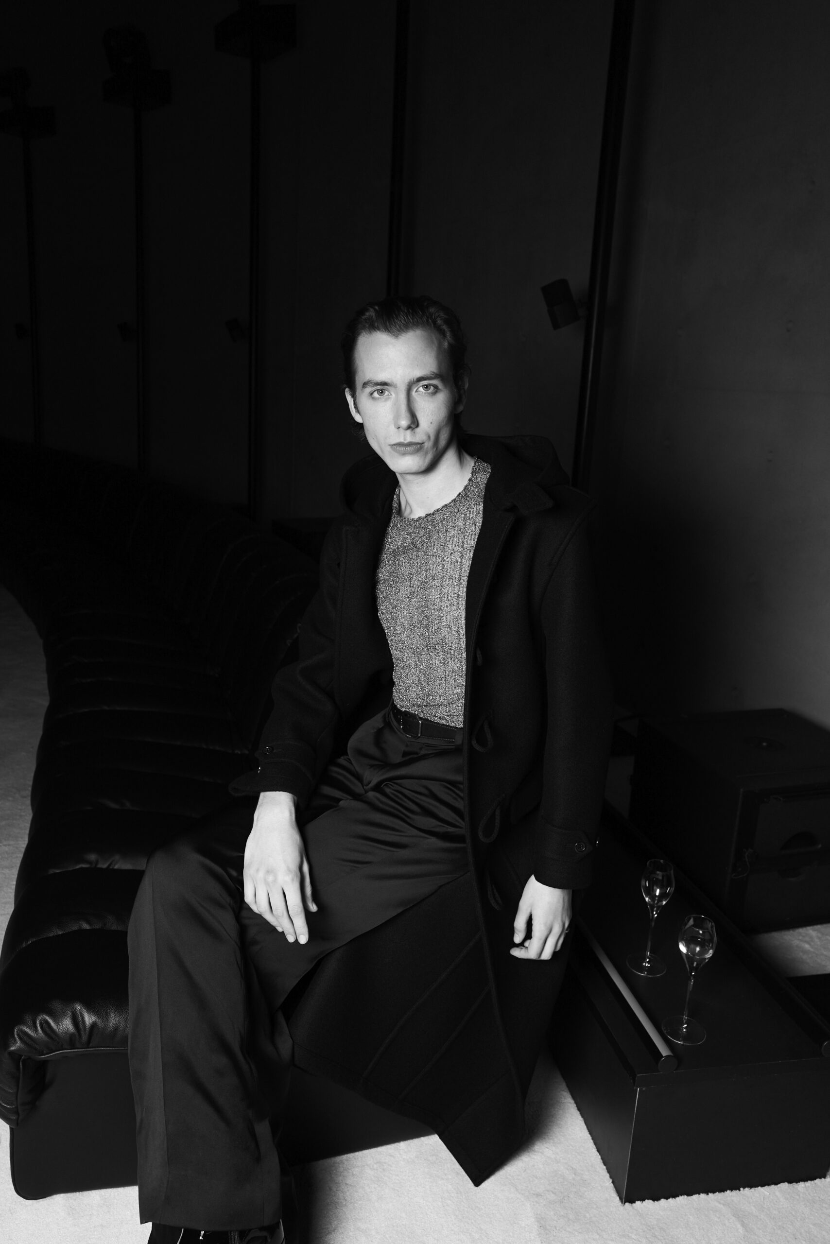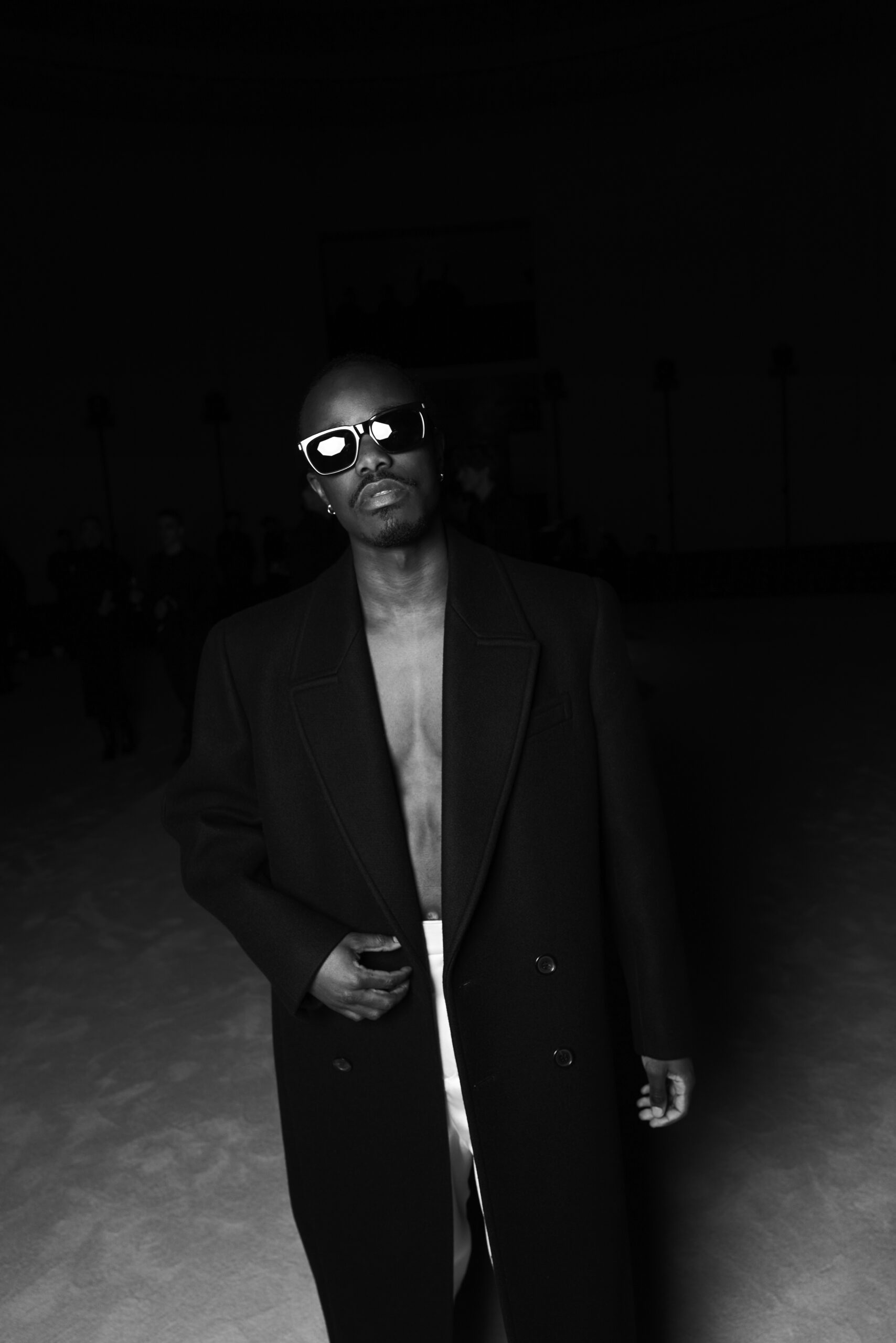 La maison Saint Laurent continue de jouer avec les codes masculins et féminins, en proposant des pièces qui s’inspirent les unes des autres. Les proportions sont parfaitement maîtrisées, avec une idée de drapé pour envelopper le corps. Les cagoules, déjà présentes dans la collection femme de la marque, font leur apparition dans cette collection homme, offrant une touche de mystère et d’originalité.