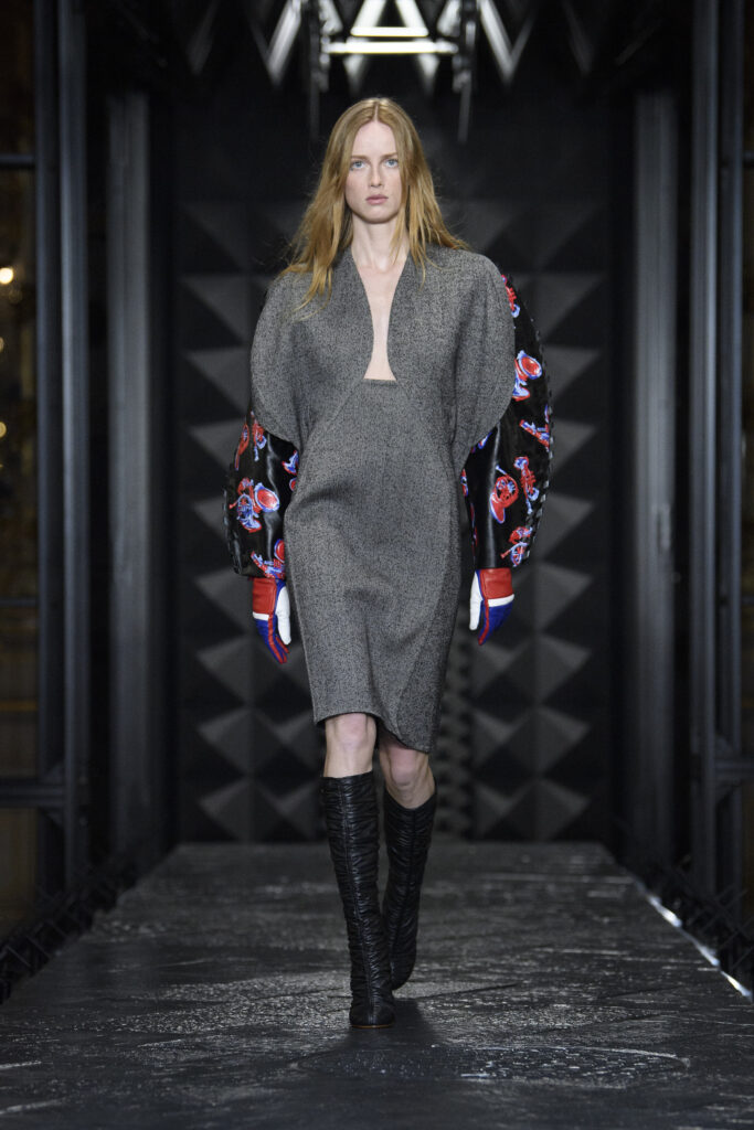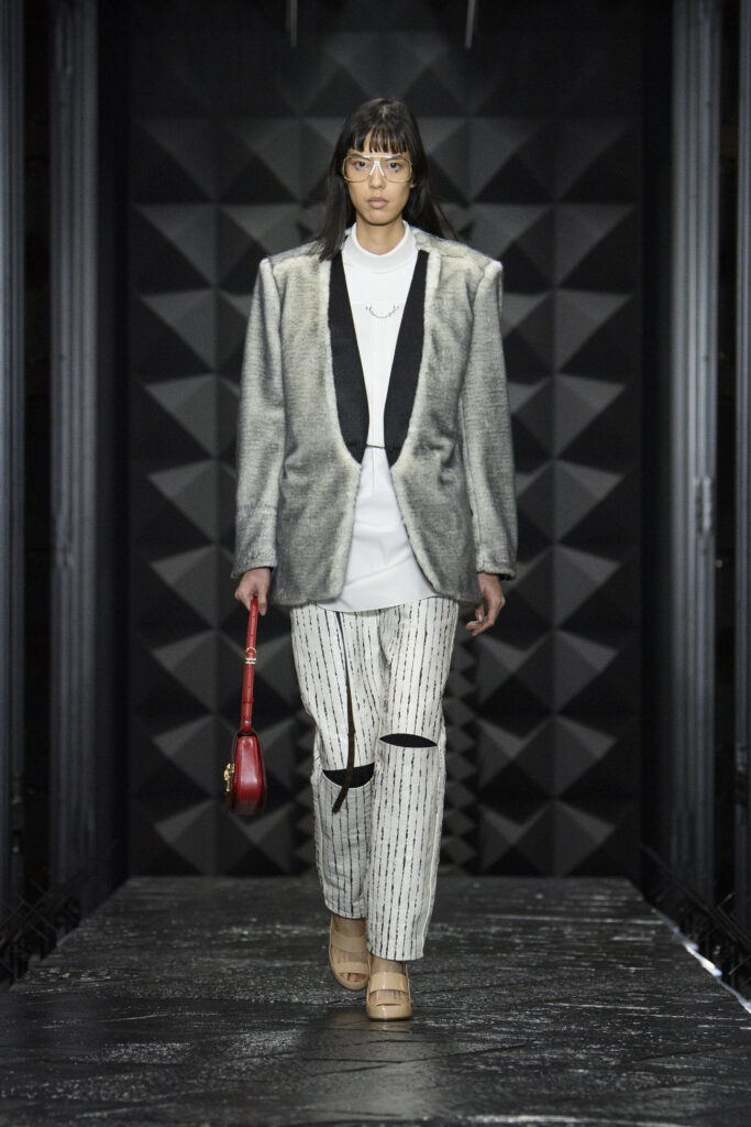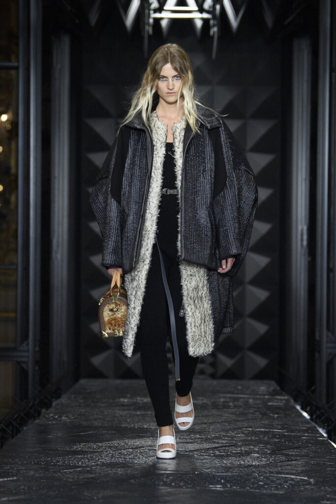 La collection elle-même reflète cette essence française, cette sophistication dans un geste dilettante. Les silhouettes sont élégantes et fluides, avec une touche de nonchalance qui leur confère ce je-ne-sais-quoi typiquement français. Les pièces sont riches en textures, avec des matières luxueuses telles que le cuir, la fourrure et la soie.