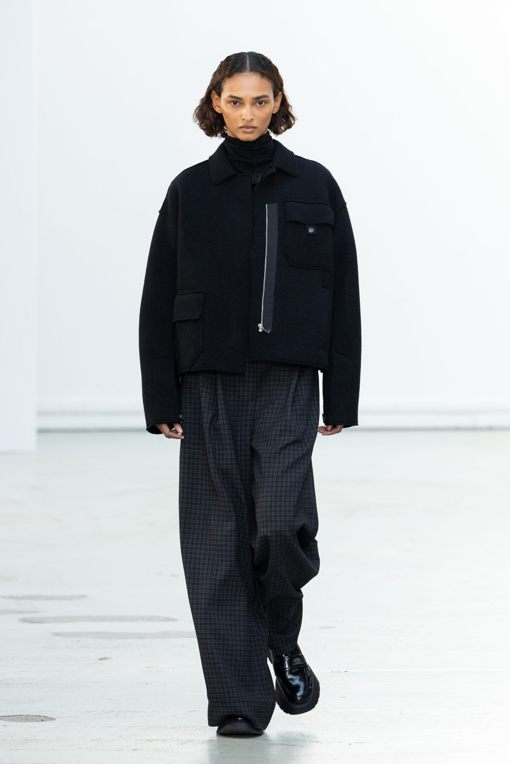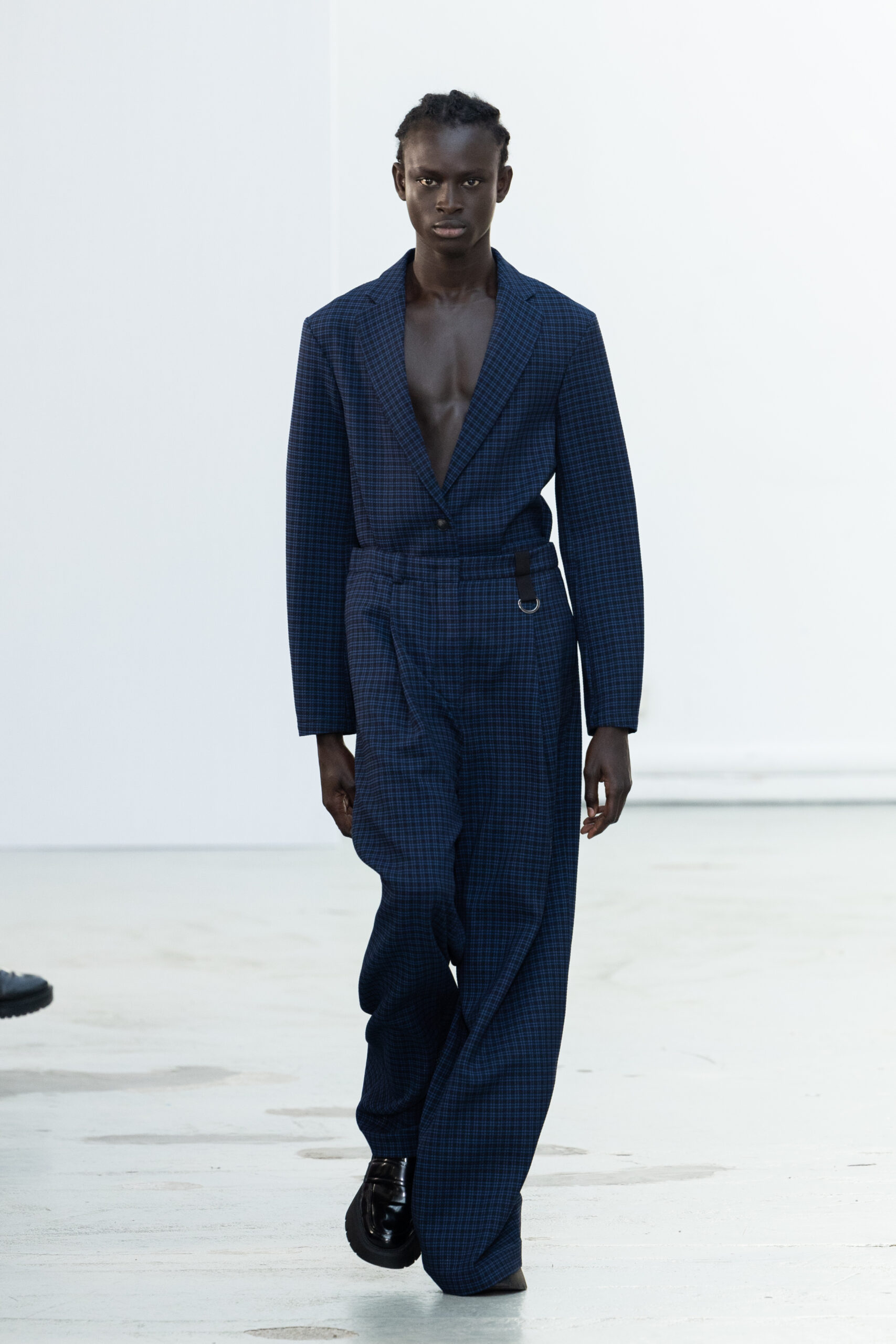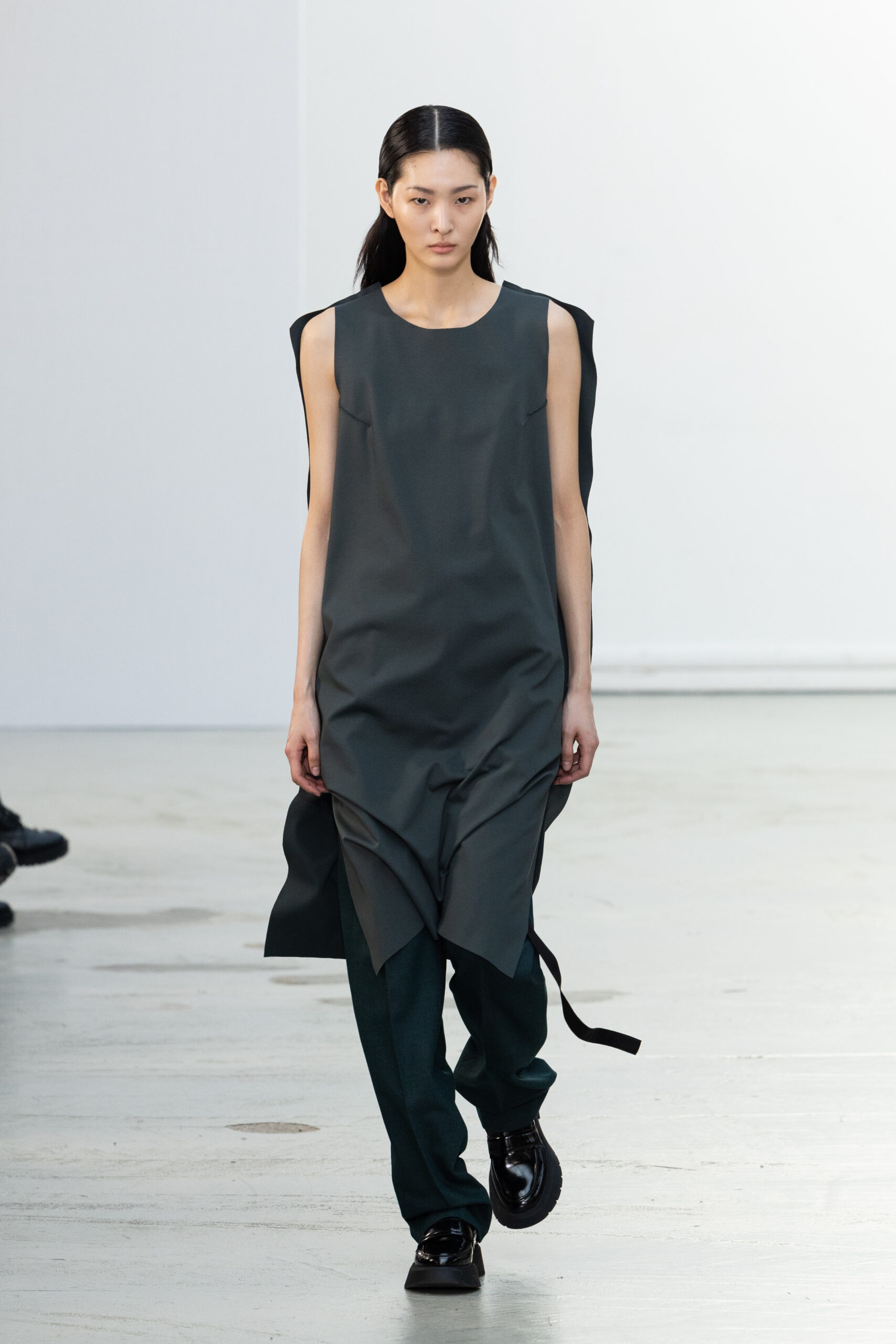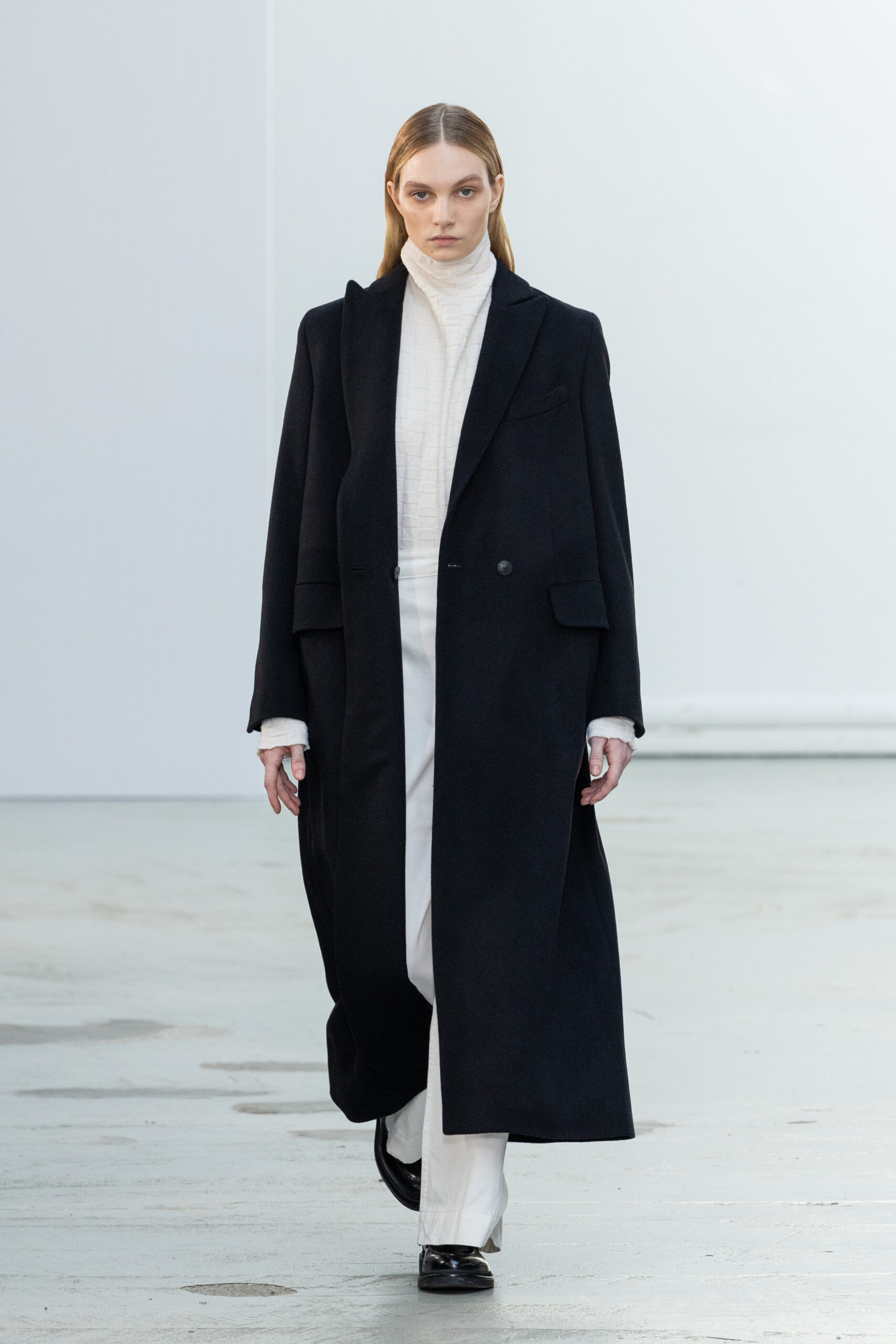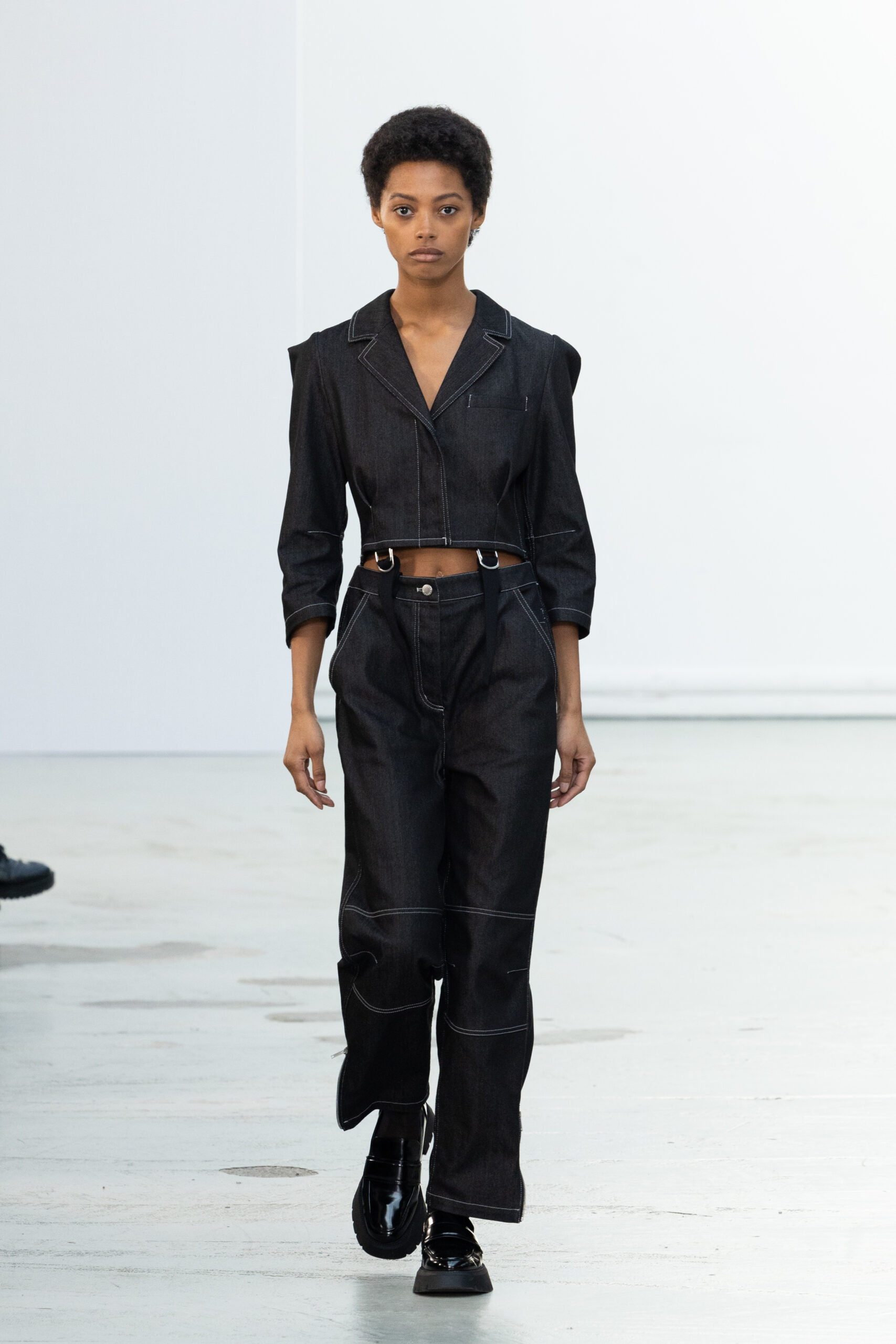 La collection explore les tons ombrés, mélangeant les genres avec des silhouettes genderless et puissantes, mises en valeur par un casting intense. Les coupes sont strictes, mais les matières sont délicates, permettant au styliste Sheila Single d’effectuer des silhouettes intenses. Nehera continue d’explorer l’ajustement parfait du tailoring avec des pantalons, des hauts et des vestes ajustables.