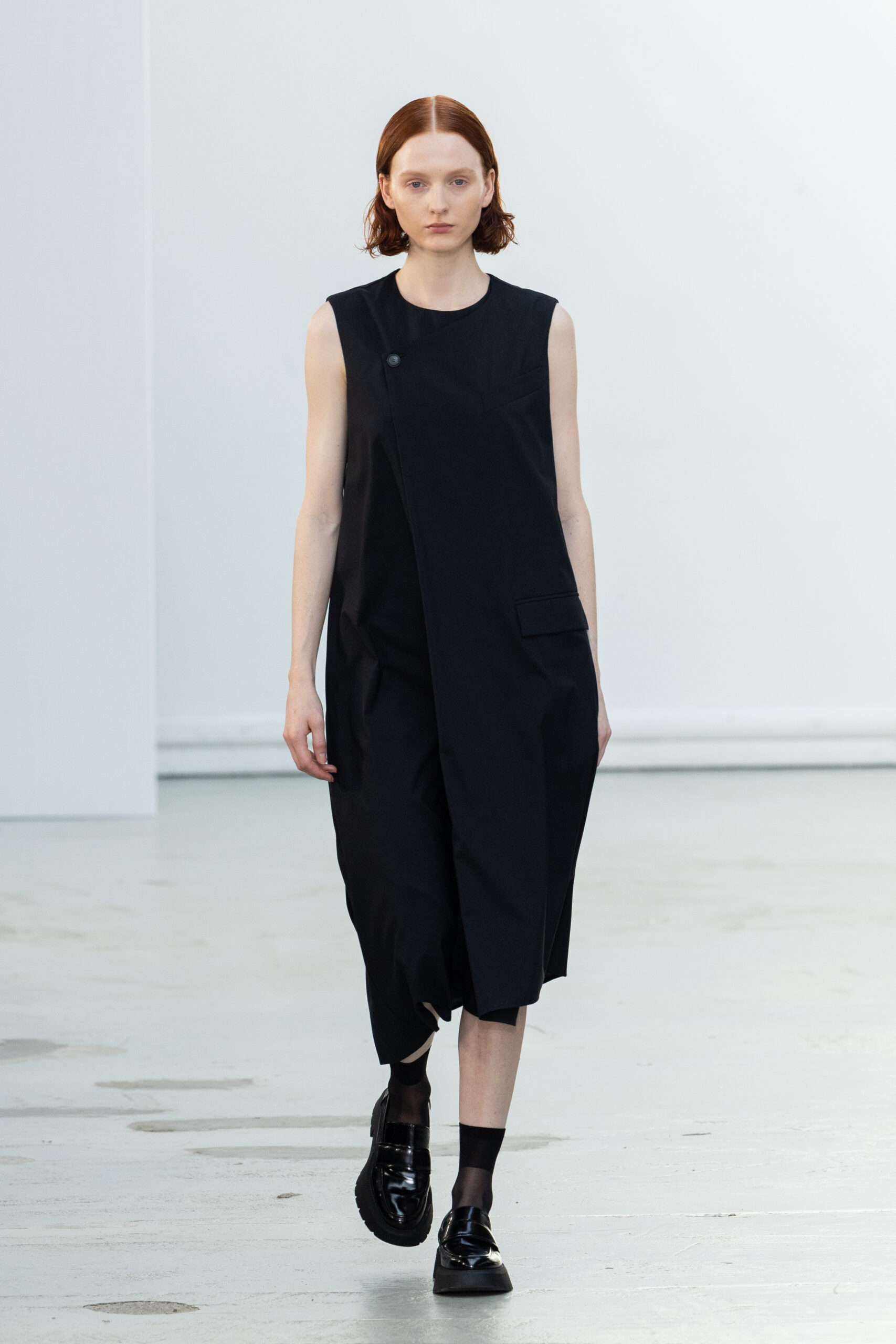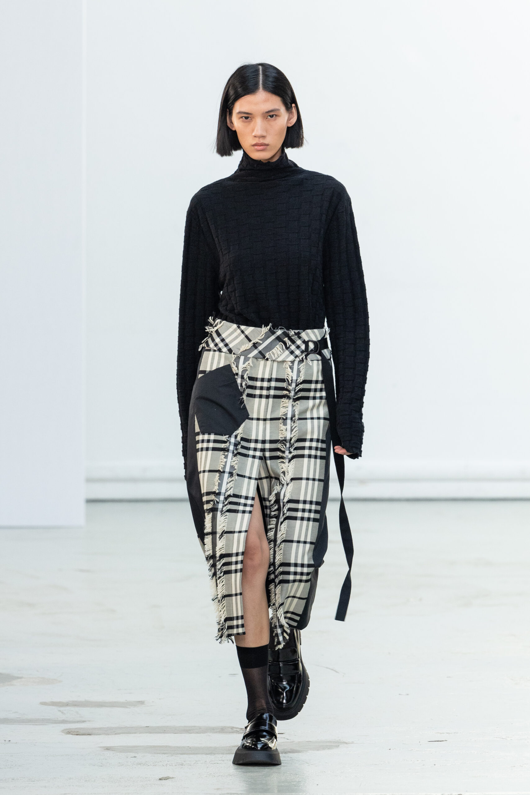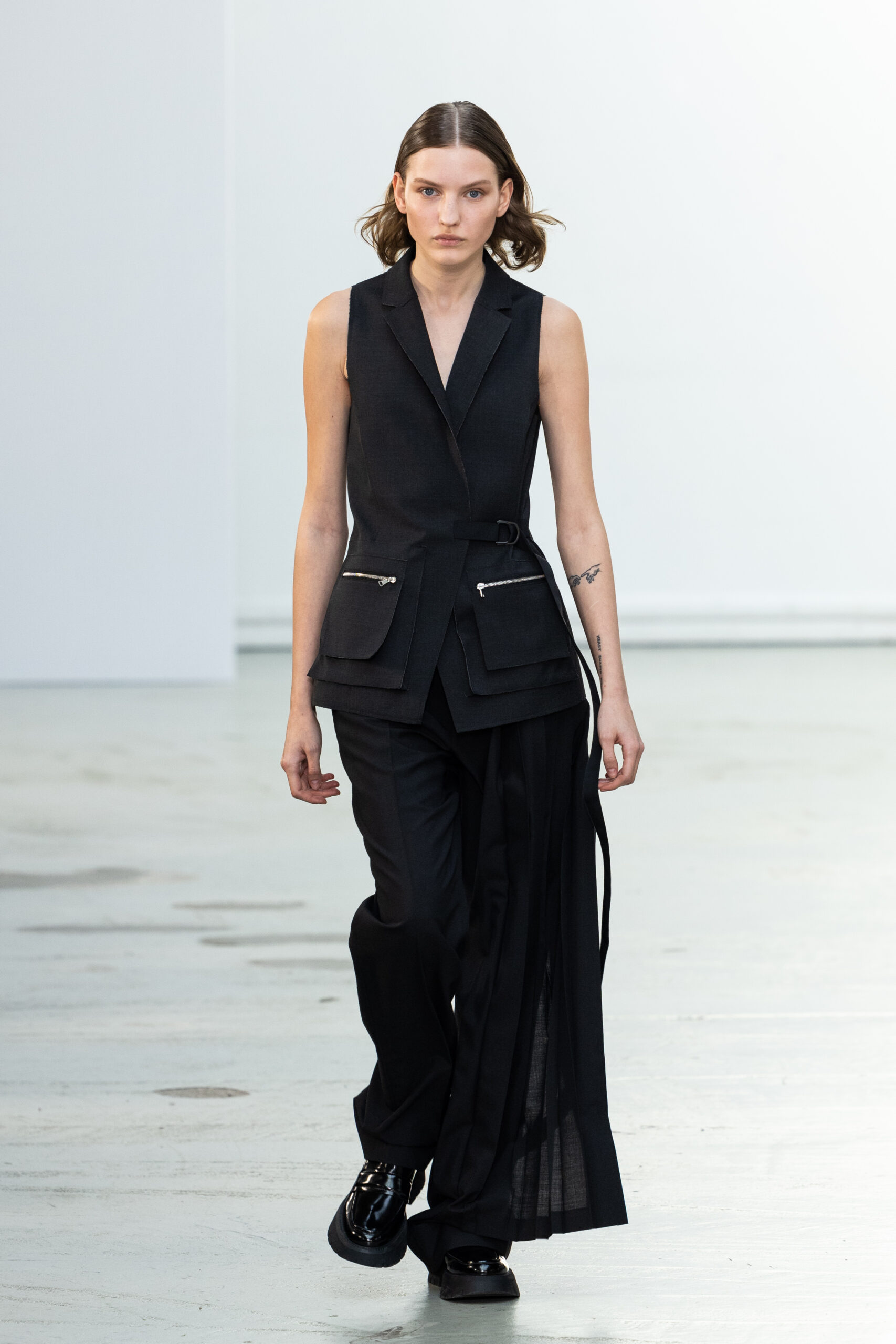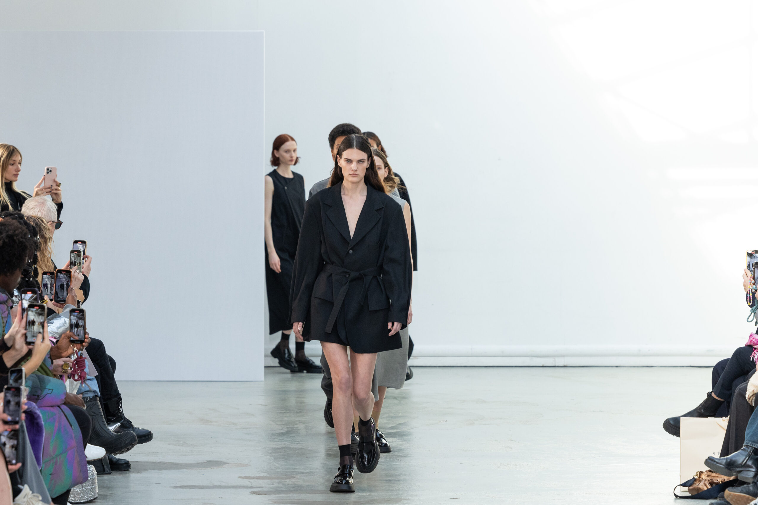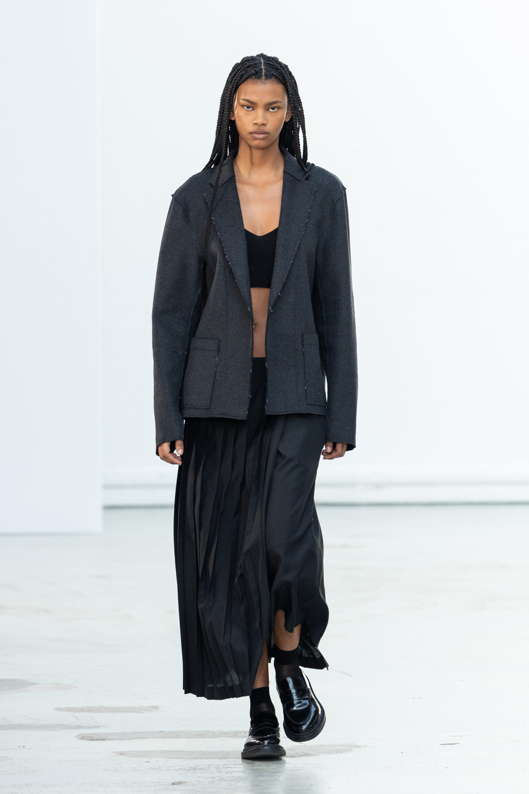 La collection explore les tons ombrés, mélangeant les genres avec des silhouettes genderless et puissantes, mises en valeur par un casting intense. Les coupes sont strictes, mais les matières sont délicates, permettant au styliste Sheila Single d’effectuer des silhouettes intenses. Nehera continue d’explorer l’ajustement parfait du tailoring avec des pantalons, des hauts et des vestes ajustables.