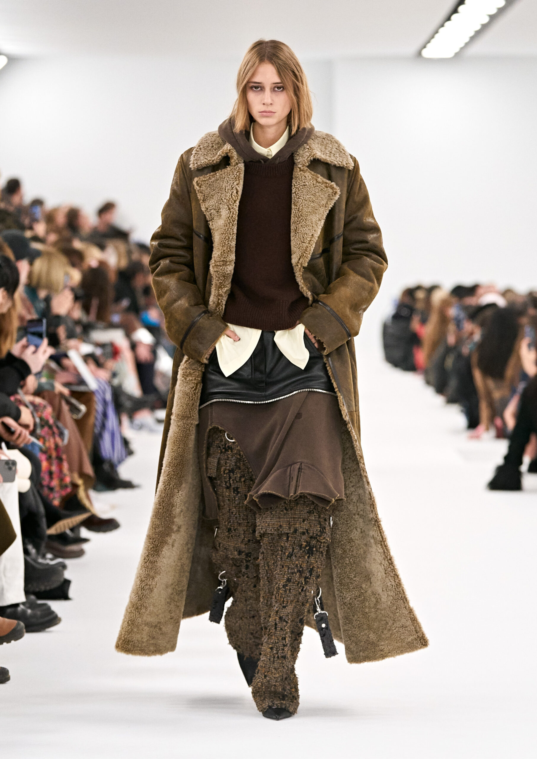 Le dialogue entre le chic parisien et le cool américain se manifeste dans une formalisation des vêtements de sport et de travail. Les vêtements décontractés tels que les sweats et les jeans sont transformés en pièces sophistiquées : des manteaux et des vestes en cachemire, des pantalons fluides en laine fine, des tricots en cachemire doux, des robes en cuir smockées extensibles, etc. Une silhouette de soirée contemporaine se dessine avec des looks de sweats ou de denim élégants, proposant une nouvelle forme de formalité.