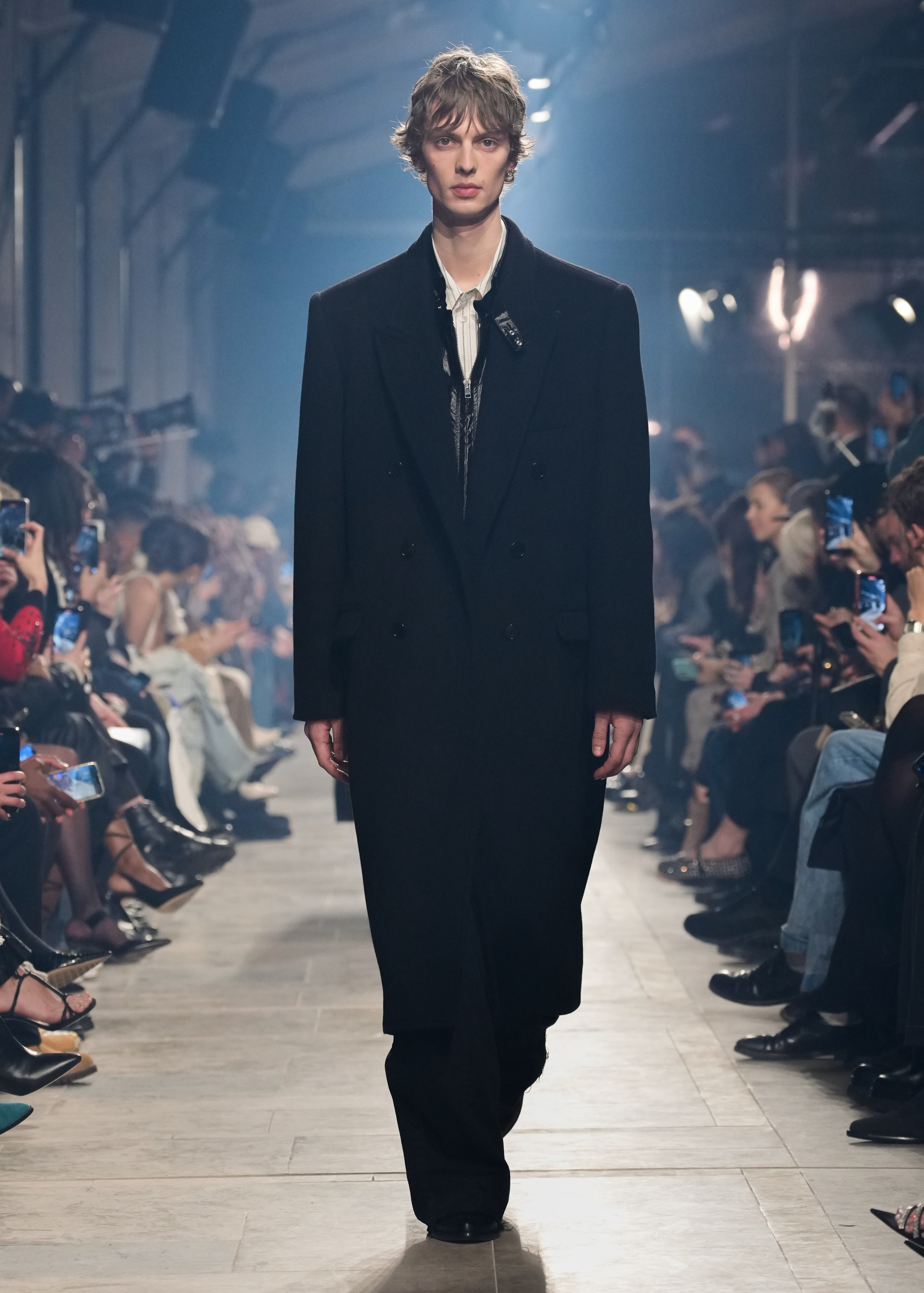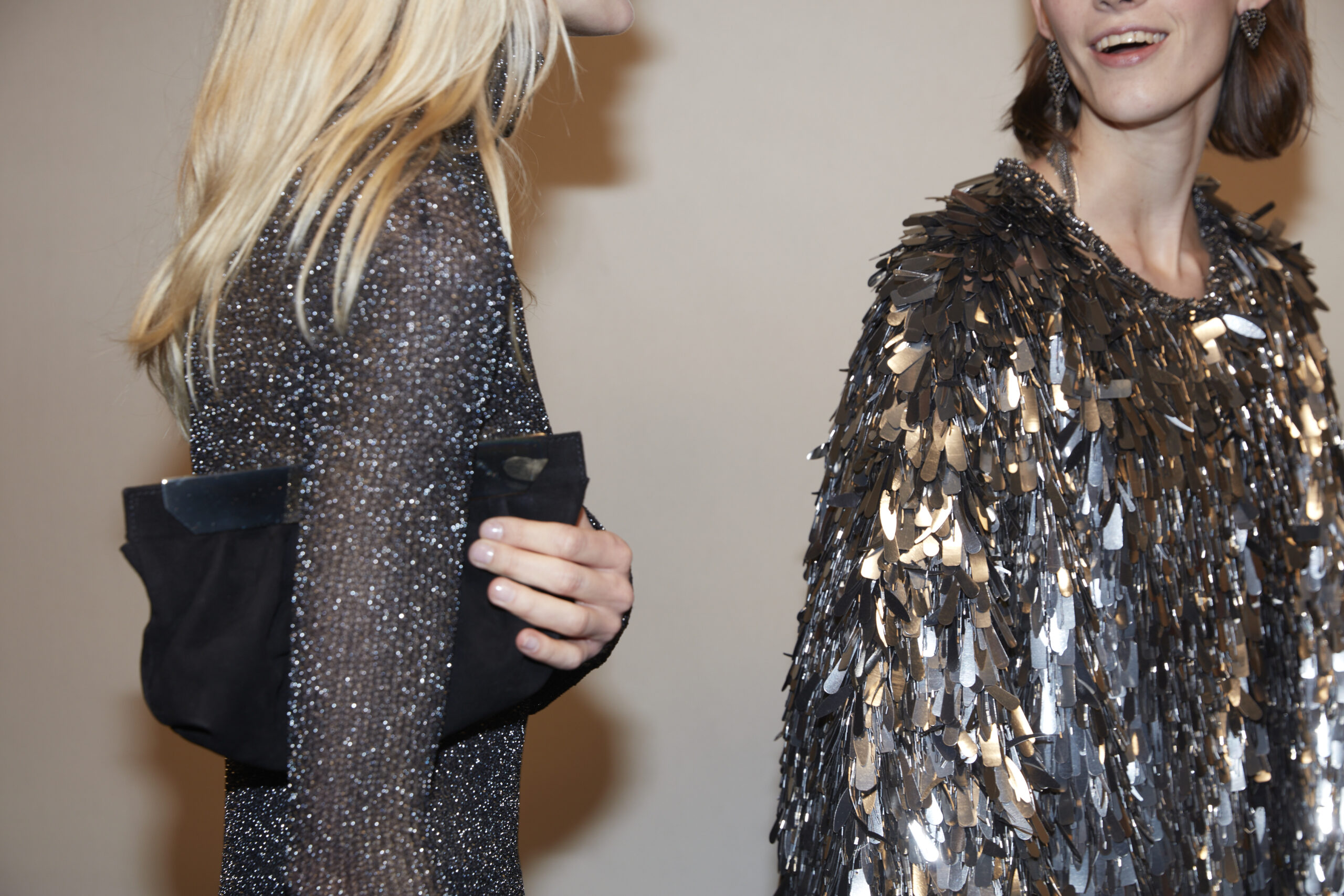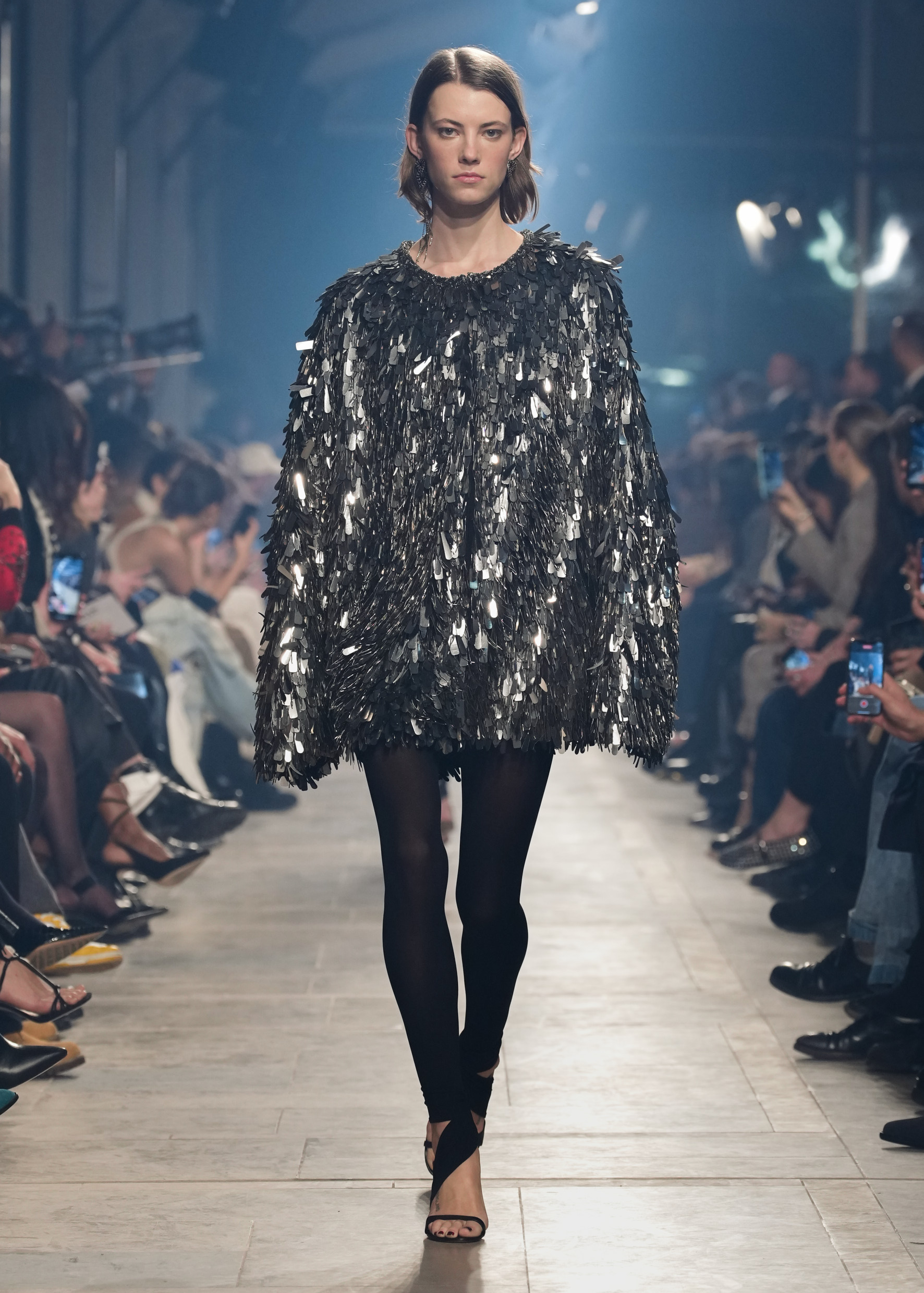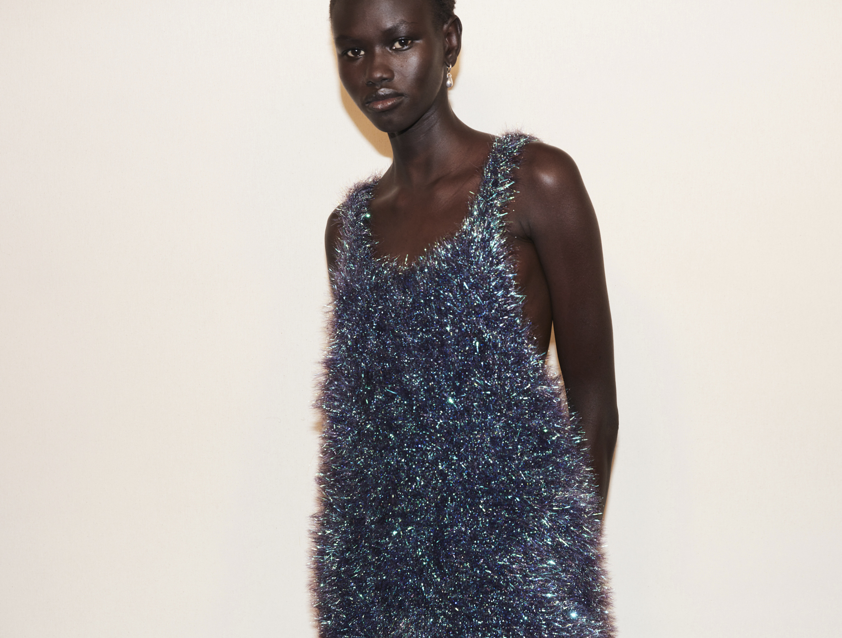 La palette de couleurs, d’abord naturelle et minimale, explore les horizons jaunes et magenta avant de plonger dans le noir. Une soirée scintillante mélange des textures – broderies, velours lurex – et des volumes – surdimensionnés, ajustés, coupés courts.