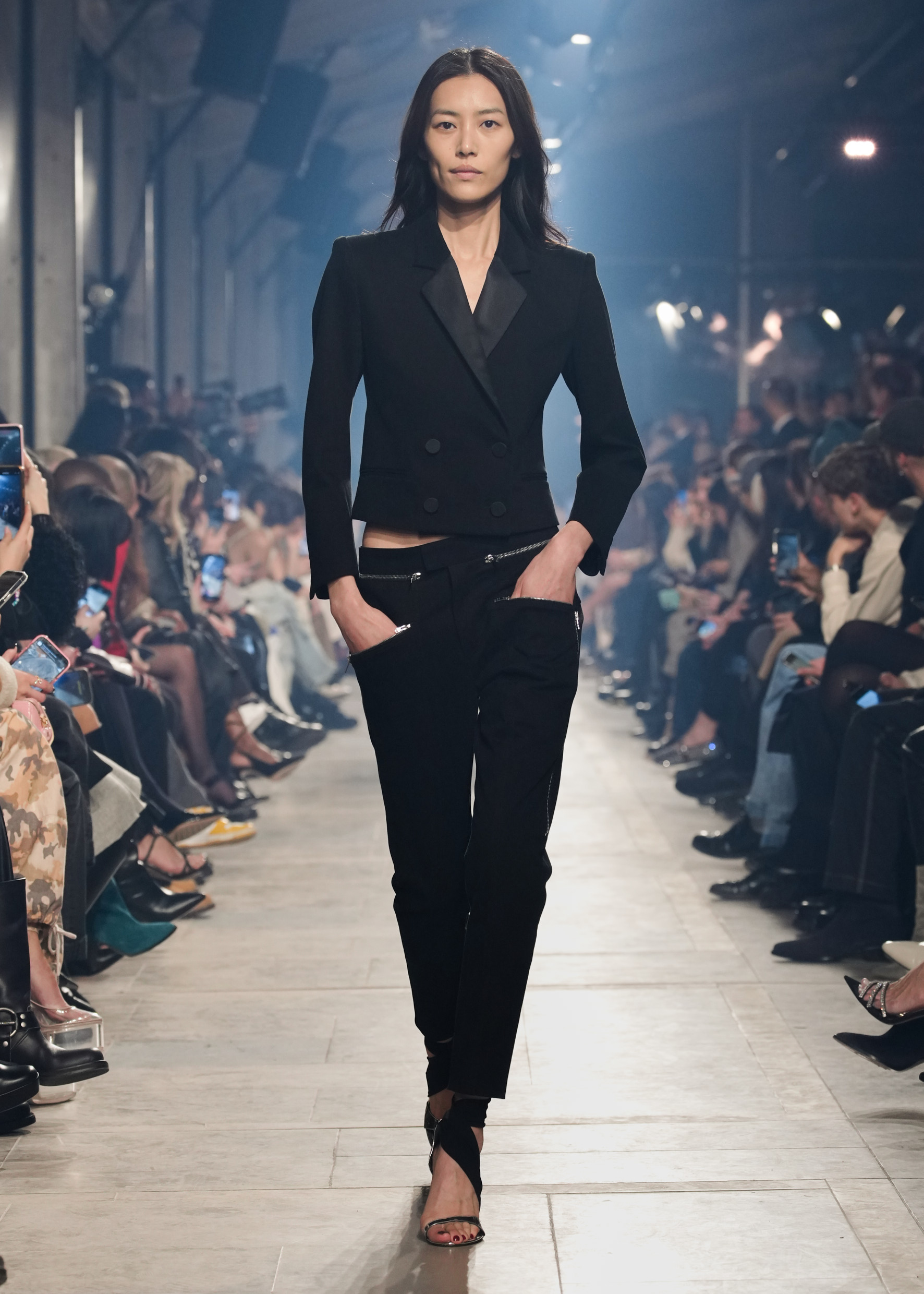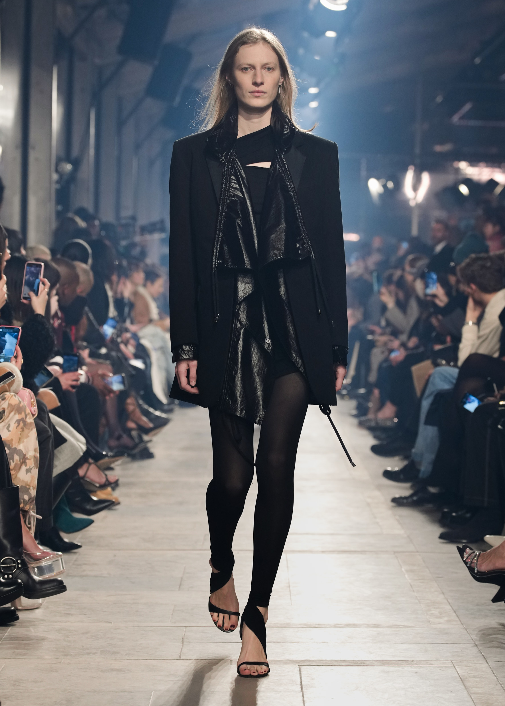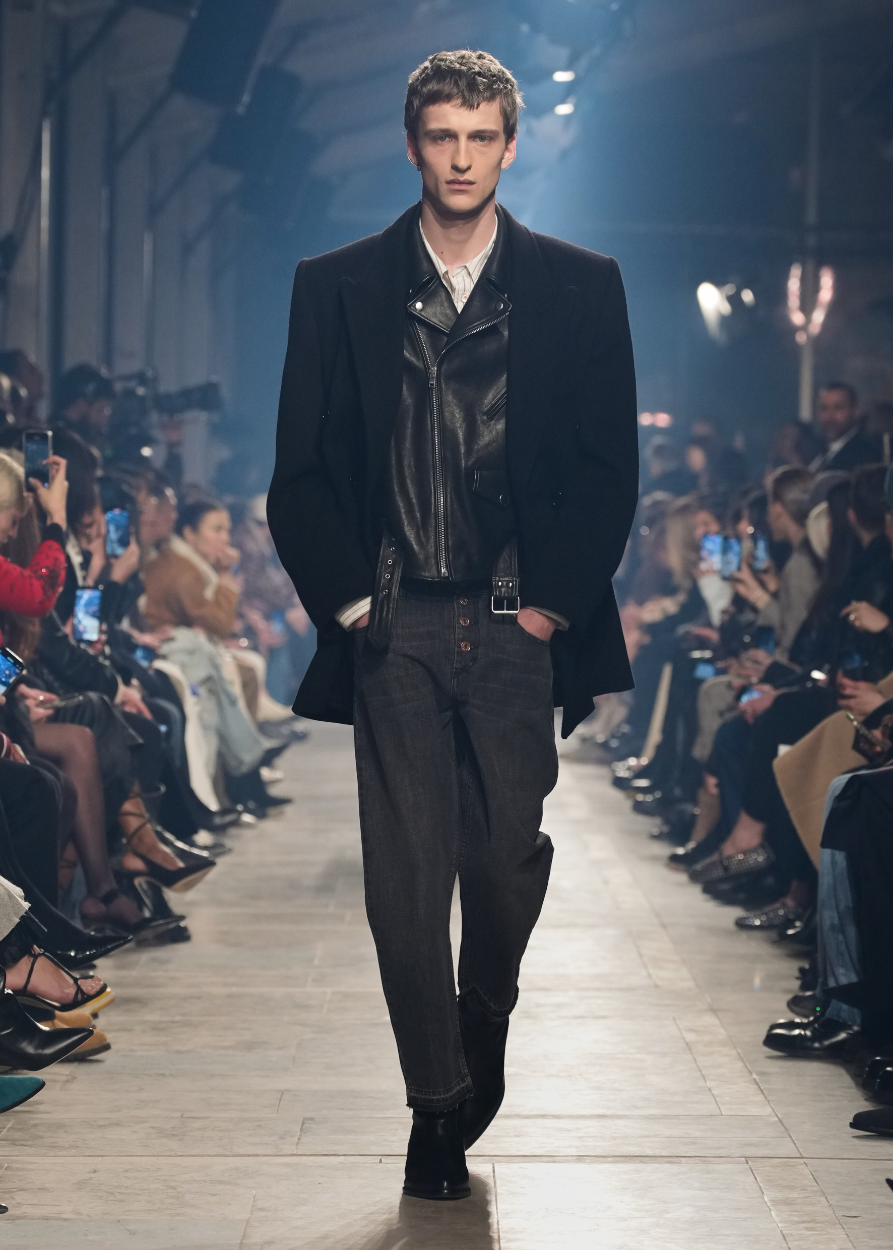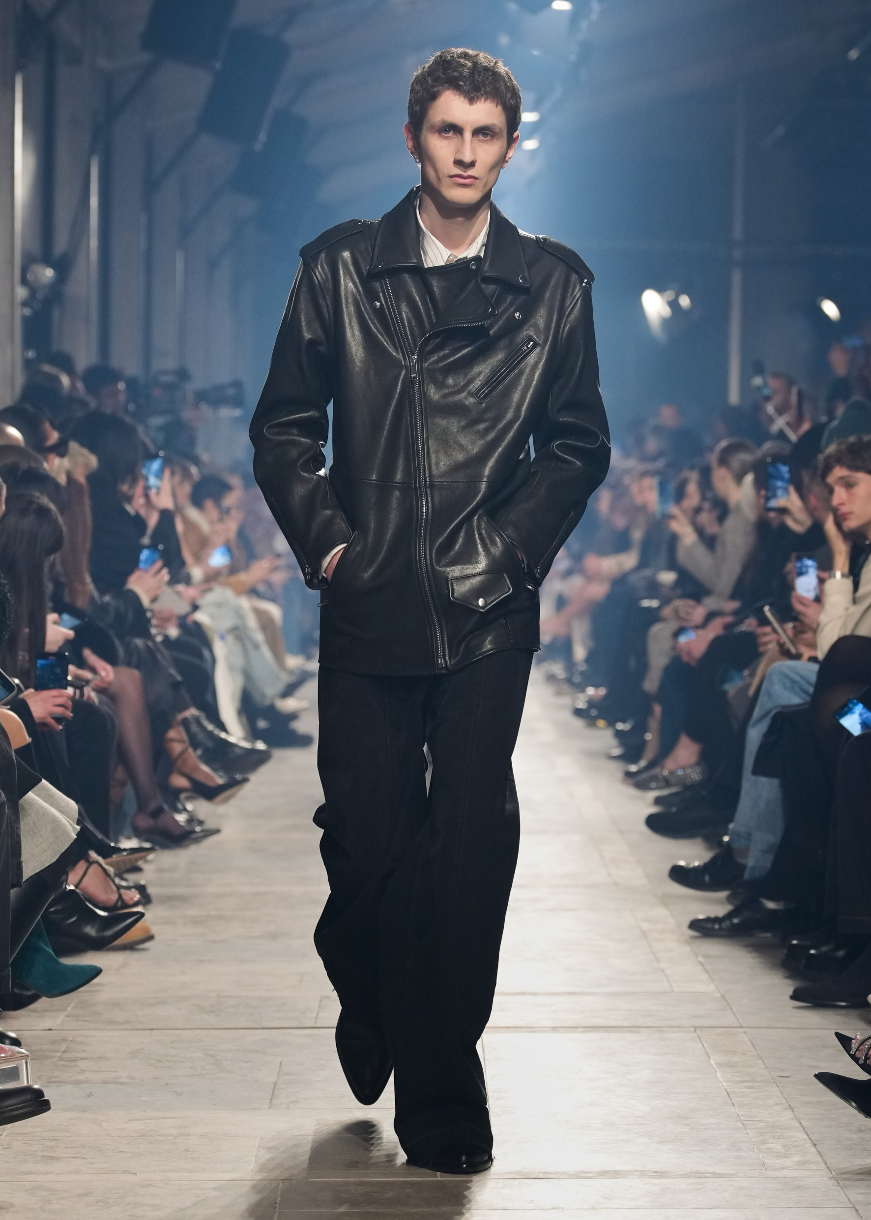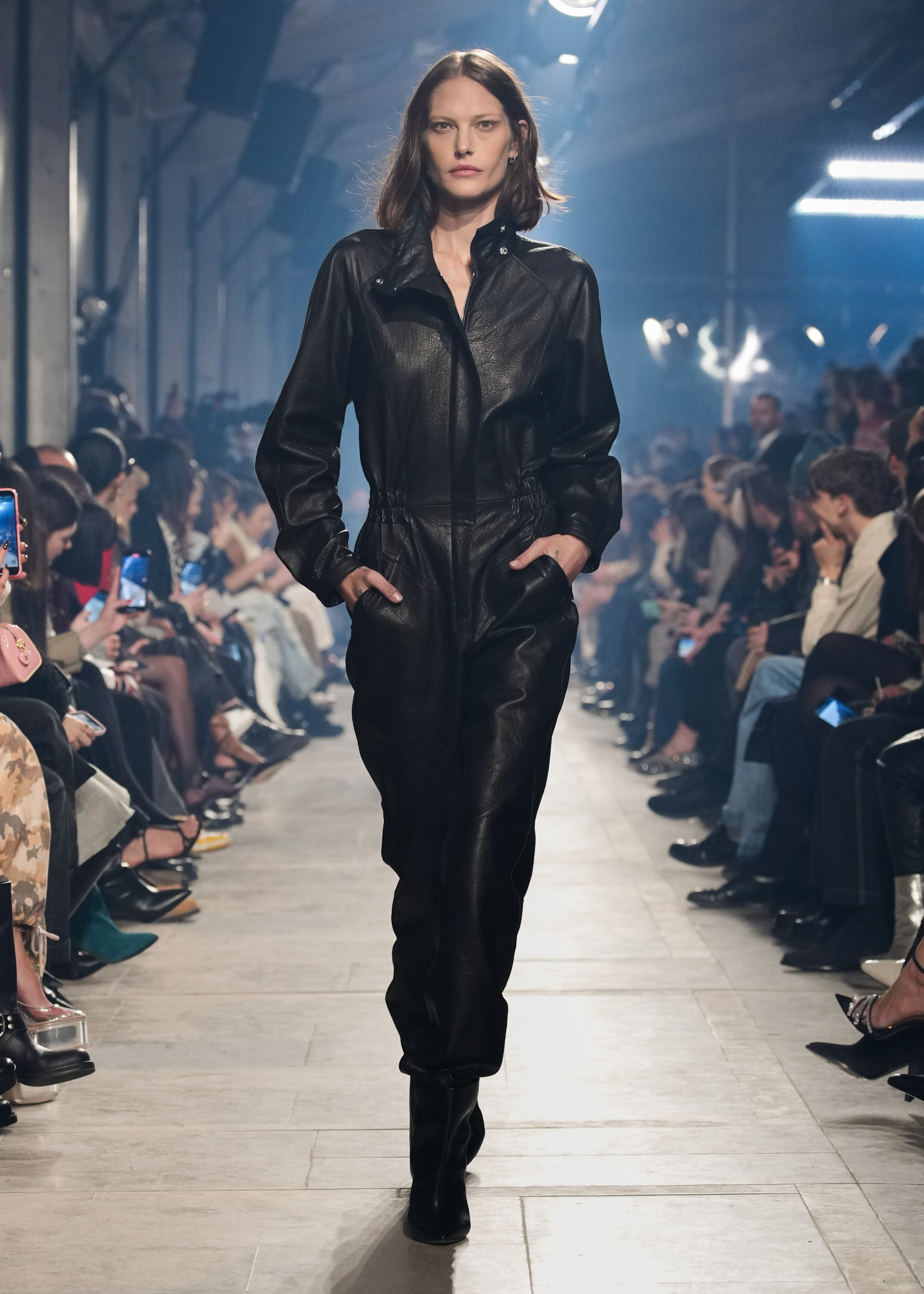 Les fermetures éclair métalliques insufflent un esprit de perfecto dans la collection où le cuir règne en maître. Elles ferment les vestes et leurs poches et se fondent dans les pièces comme des détails précieux, dévoilant un décolleté ou coupant une robe.