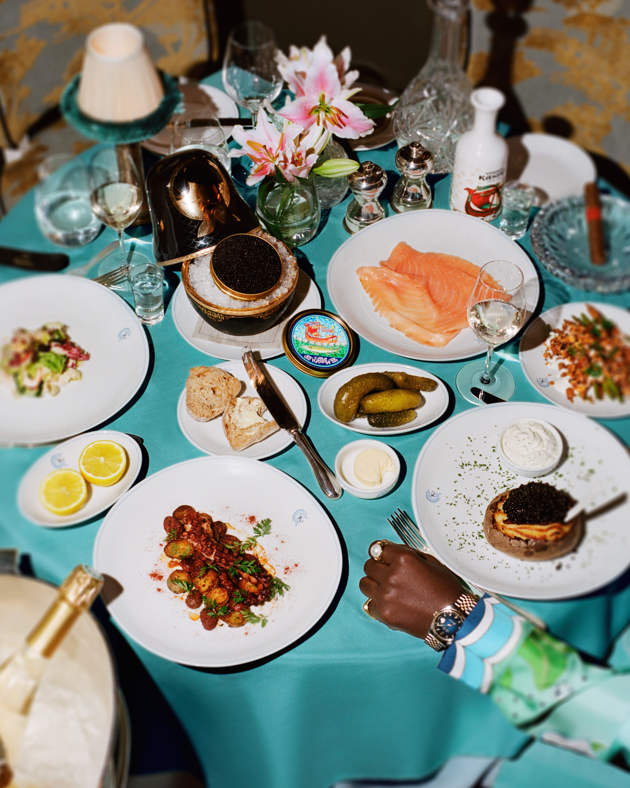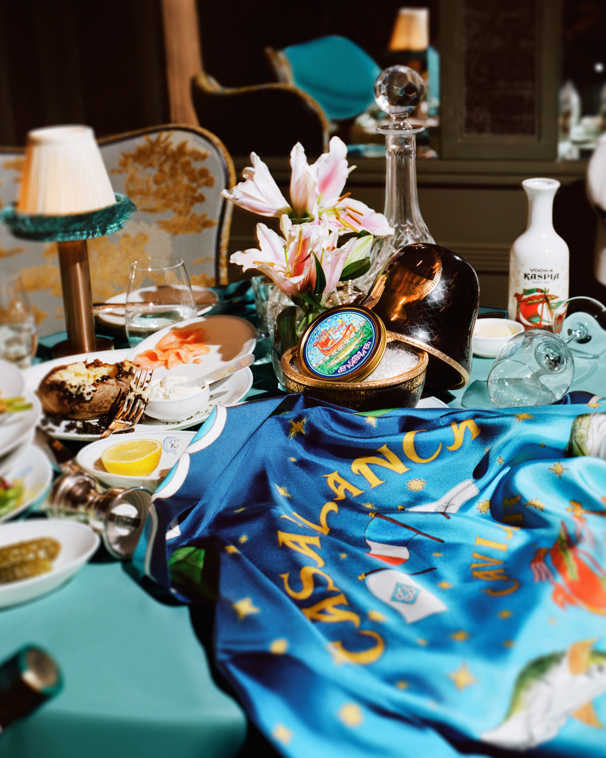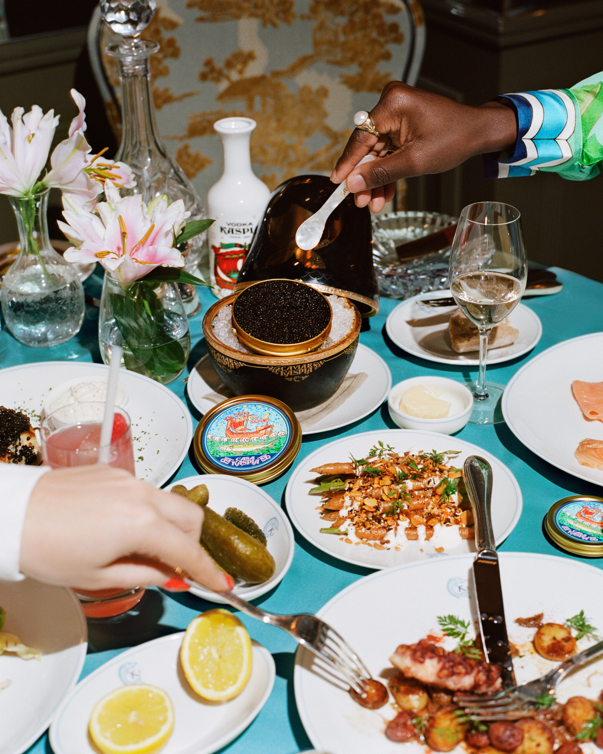 Cette collaboration est une interprétation élégante des éléments culinaires de base, la cuillère en nacre – accompagnée d’une pochette brodée – sera un objet de collection convoité, tandis que la boîte de caviar Impérial Baeri est la pièce ludique de résistance des œuvres collaboratives du duo, chacune présentant le nouveau langage de conception formé par Casa Kaspia.