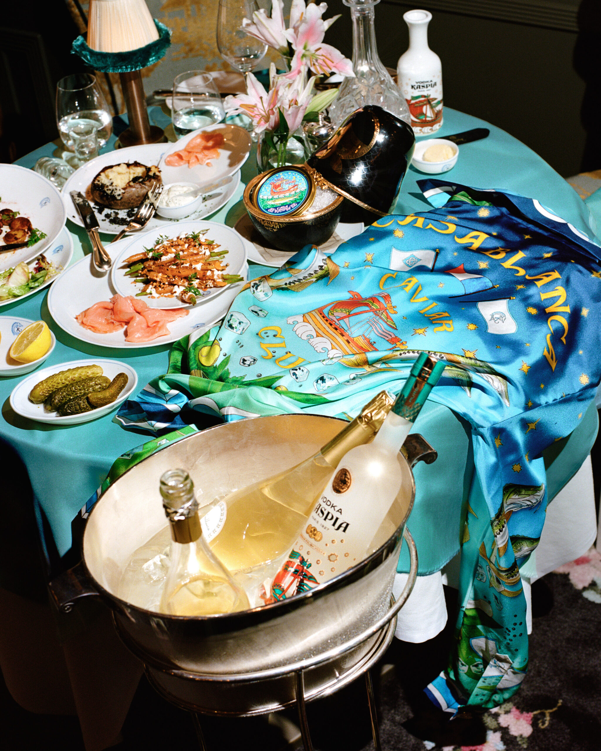 La maison de couture Casablanca et le groupe Kaspia présentent leur collection capsule de dix pièces de prêt-à-porter, d’accessoires et de caviar. Cette collaboration est née d’une rencontre fortuite entre Charaf Tajer, directeur créatif de Casablanca, et Ramon Mac-Crohon, PDG du groupe Kaspia.