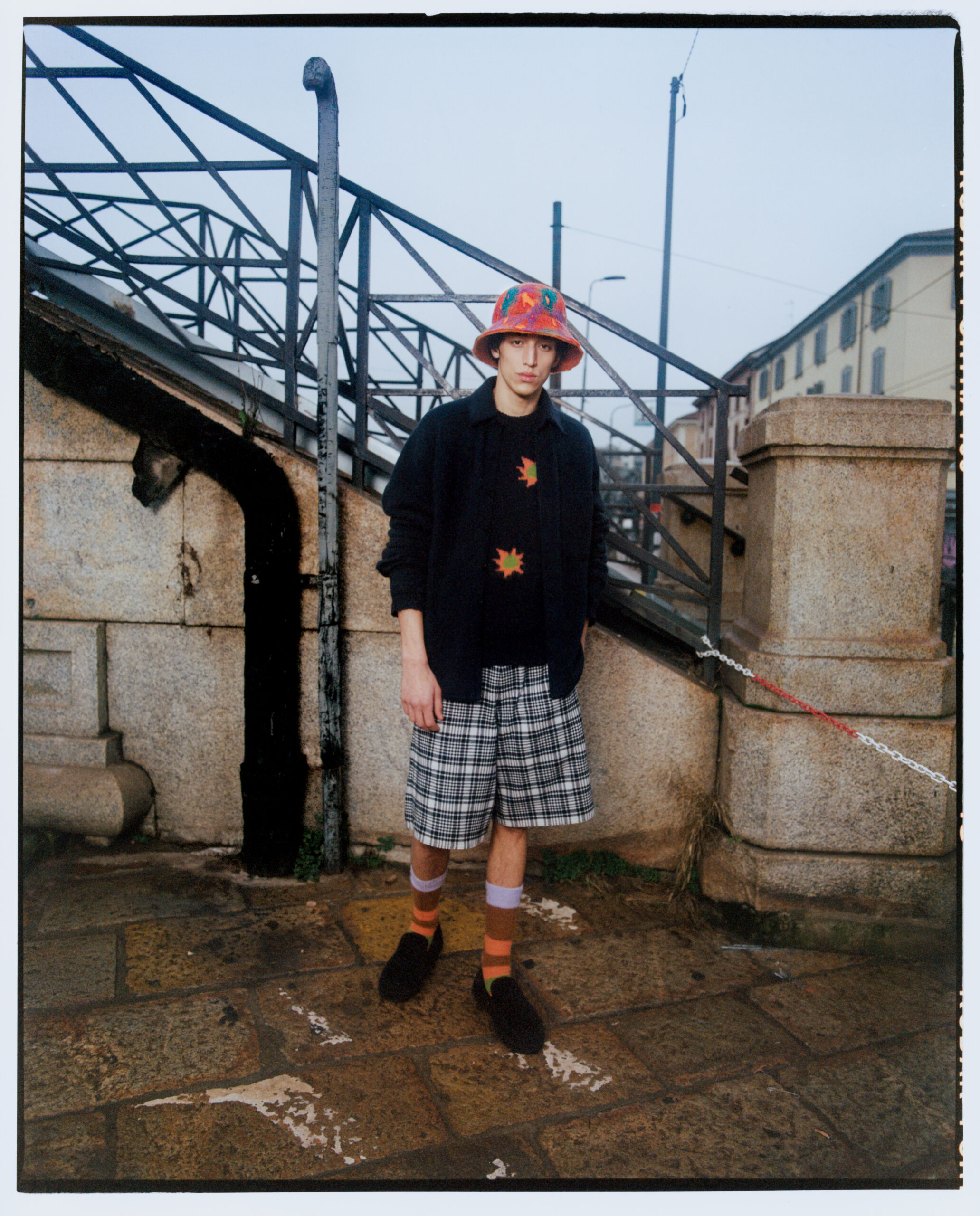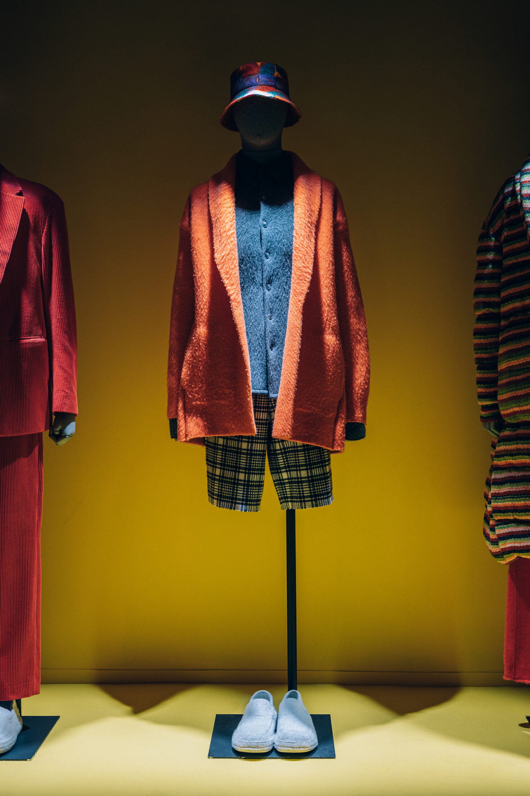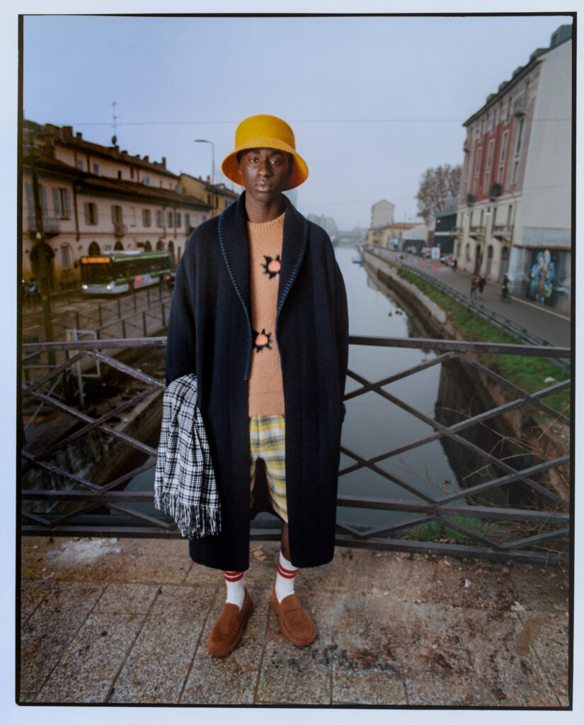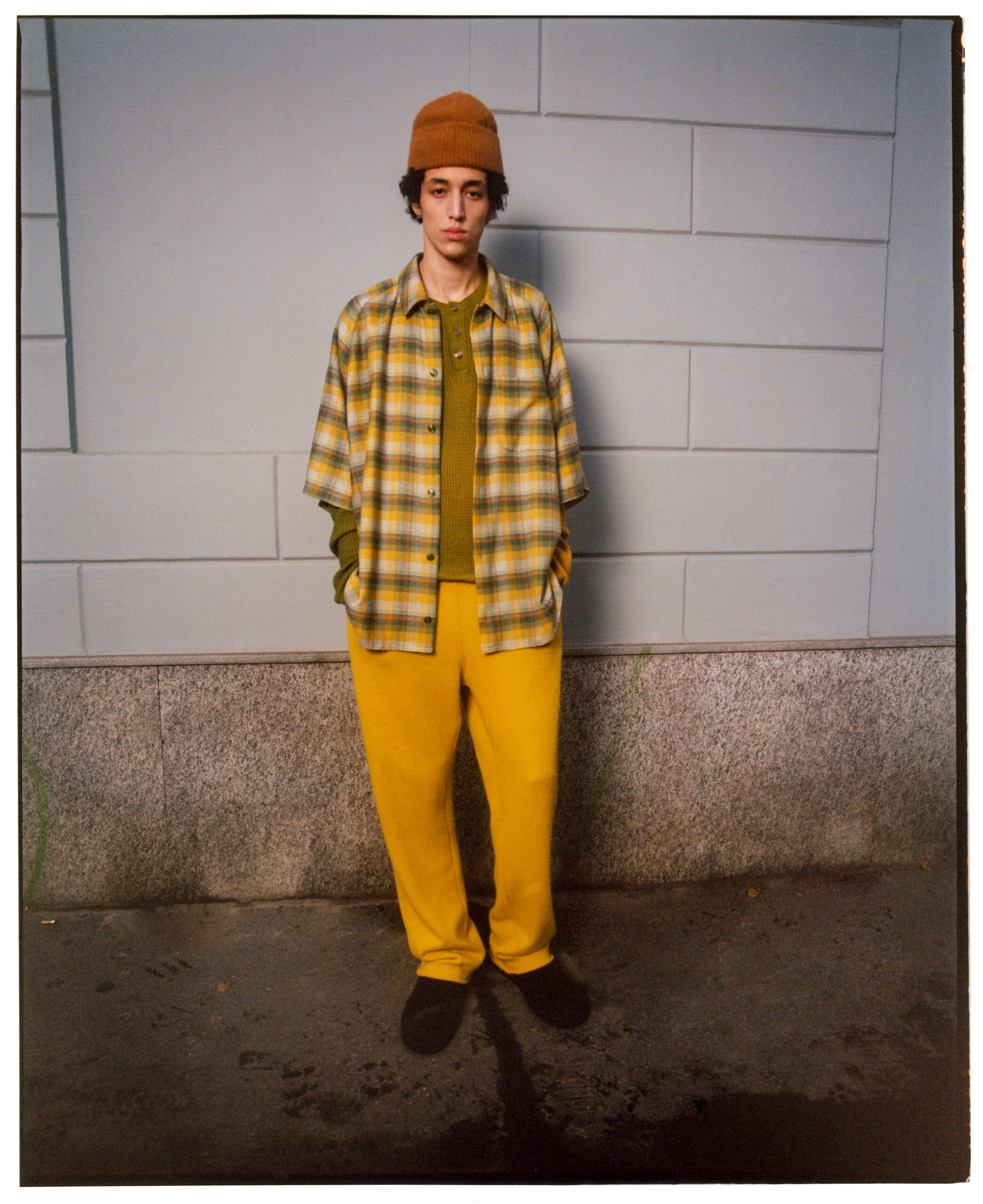 Tout est doux, à la fois dans la forme et dans l’esprit : un flux sans couture entre l’intérieur et l’extérieur, le travail et les loisirs, le jour et la nuit ; des pièces confortables, faciles à porter et à mélanger. Des carreaux qui font référence aux flanelles californiennes blanchies par le soleil sont tissés dans les plus beaux chemises en cachemire boutonnées, les shorts longs et les pantalons. Un tissu rappelant le velours côtelé usé est élevé au rang de tissu de costume dans des couleurs riches telles que le lilas, le rouge baies, le vert, le jaune aurore, le vert et le vicuna. Des chapeaux de feutre à bords larges et des casquettes de baseball ajustées, bloquées à la main dans une usine de chapeaux centenaire, ainsi que des slip-ons en cachemire brossé complètent les looks.