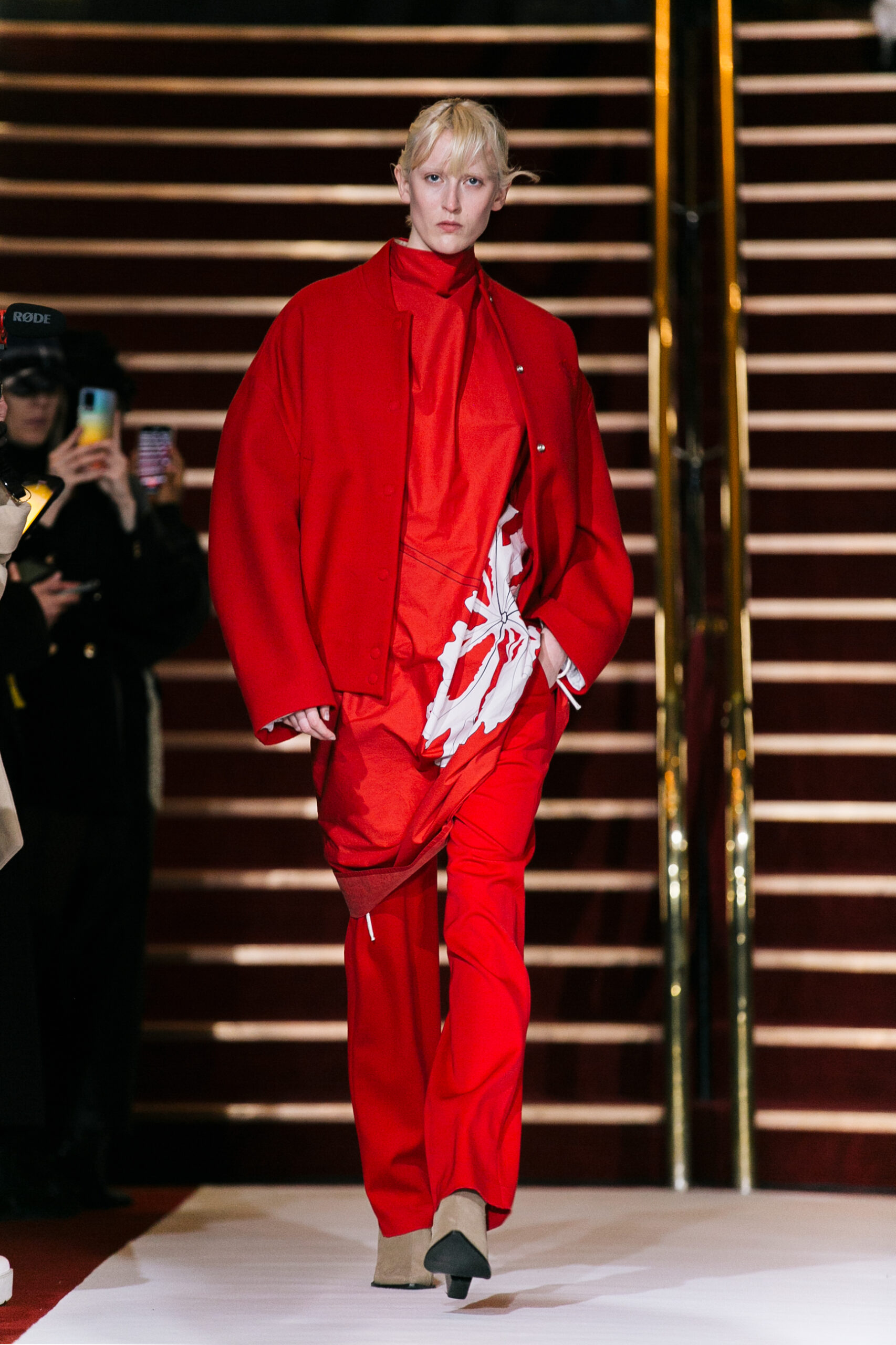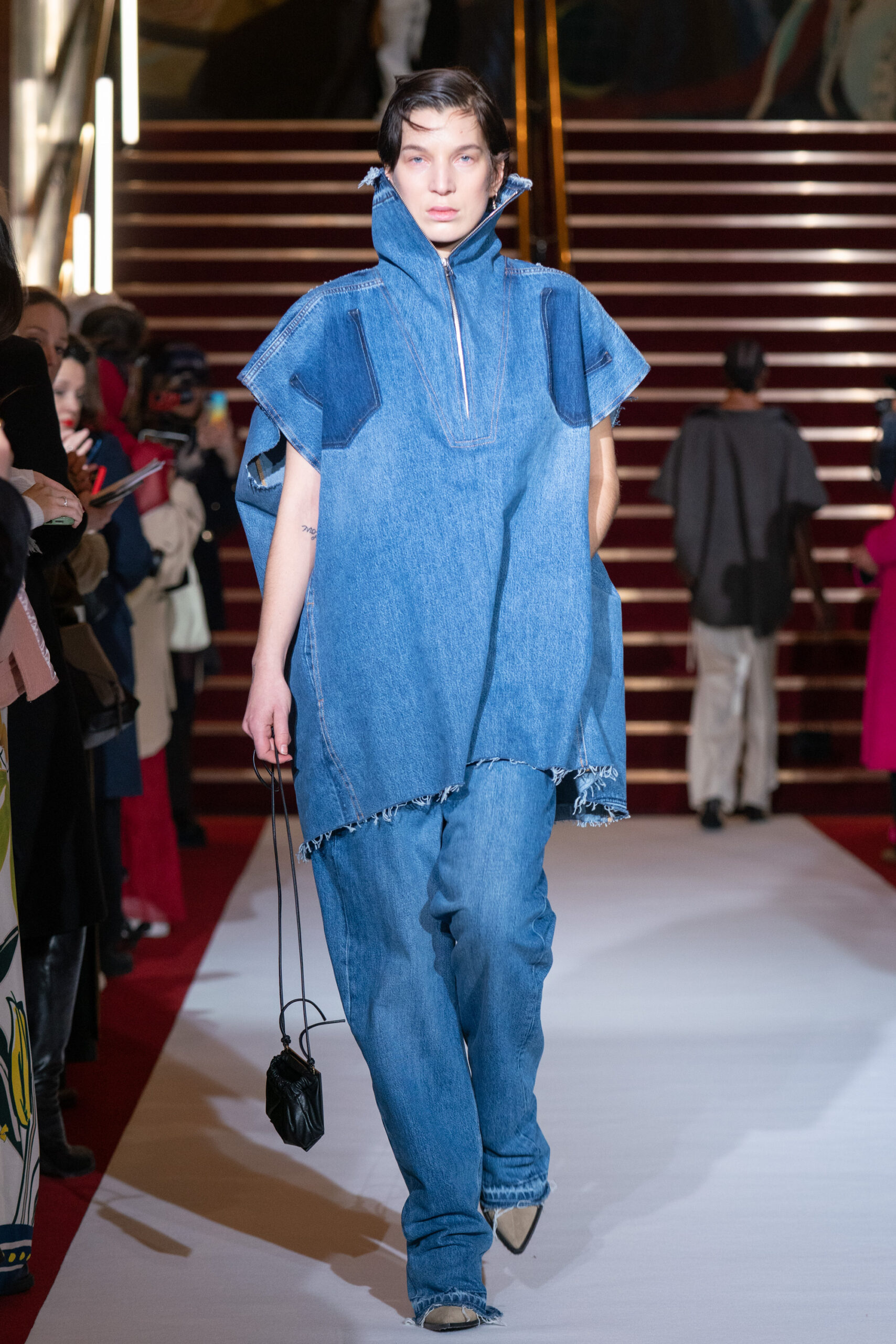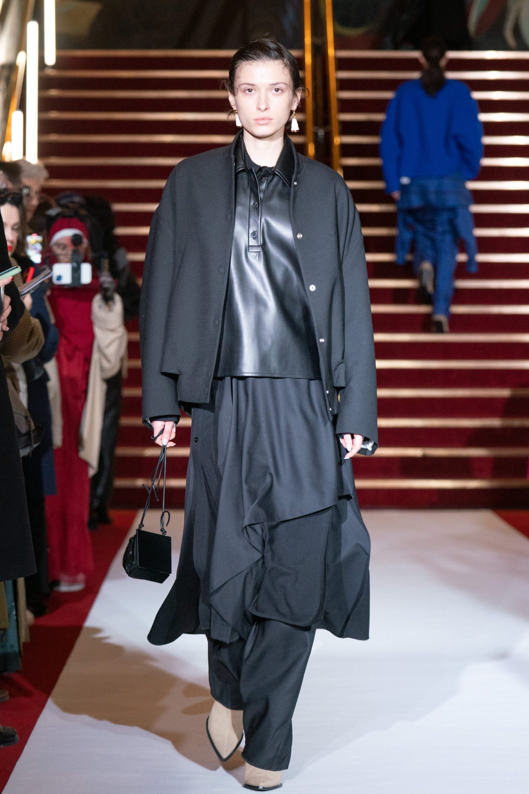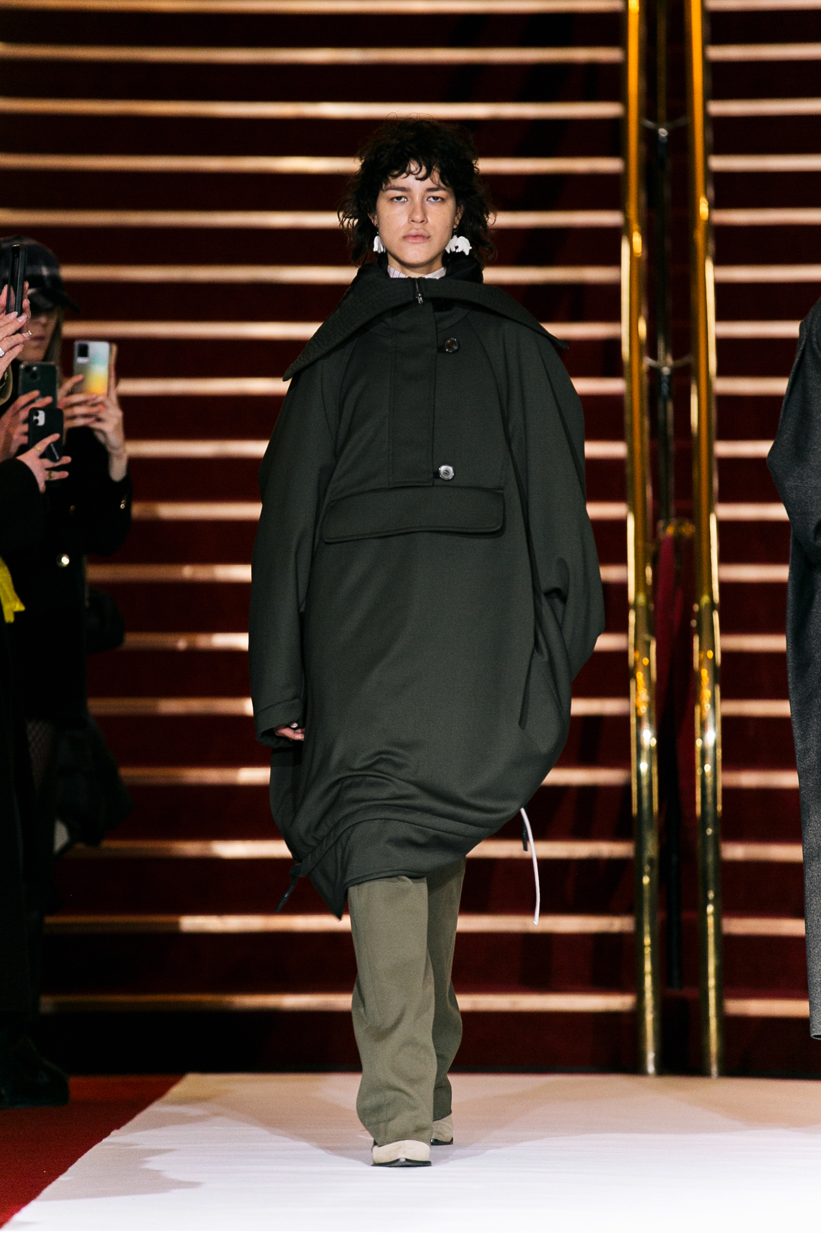 La collection a été présentée dans l’un des cinémas les plus célèbres du monde, où les caméras, les téléphones et les miroirs sont omniprésents, poussant souvent les gens à porter un masque lorsqu’ils se présentent devant le monde (des réseaux sociaux). Cependant, les Ukrainiens, qui font face à une guerre à grande échelle depuis un an, ne peuvent plus se permettre de porter ces masques. Au lieu de cela, ils se présentent tels quels, dans leur état brut. La designer Lilia Litkovska voit et honore la beauté des valeurs intérieures et de la force, de la vie quotidienne contre vents et marées. Elle établit un chic brut et touchant, presque un chic industriel, célébrant la personne pour ce qu’elle est vraiment lorsqu’elle porte et ressent les vêtements, et s’exprime dans sa forme la plus vraie.