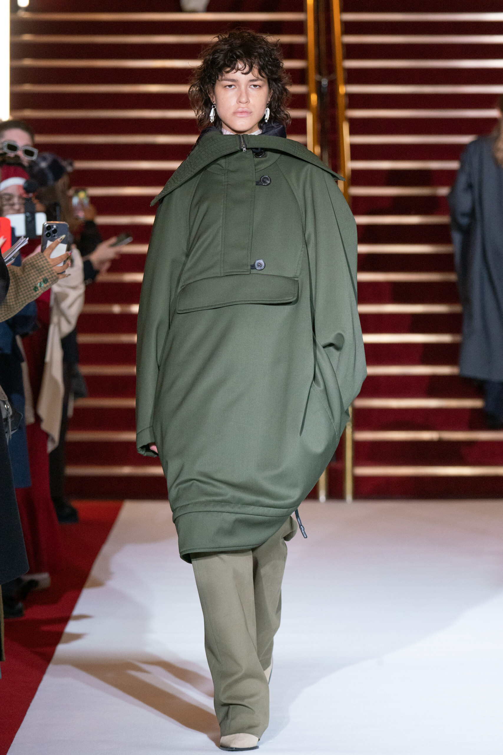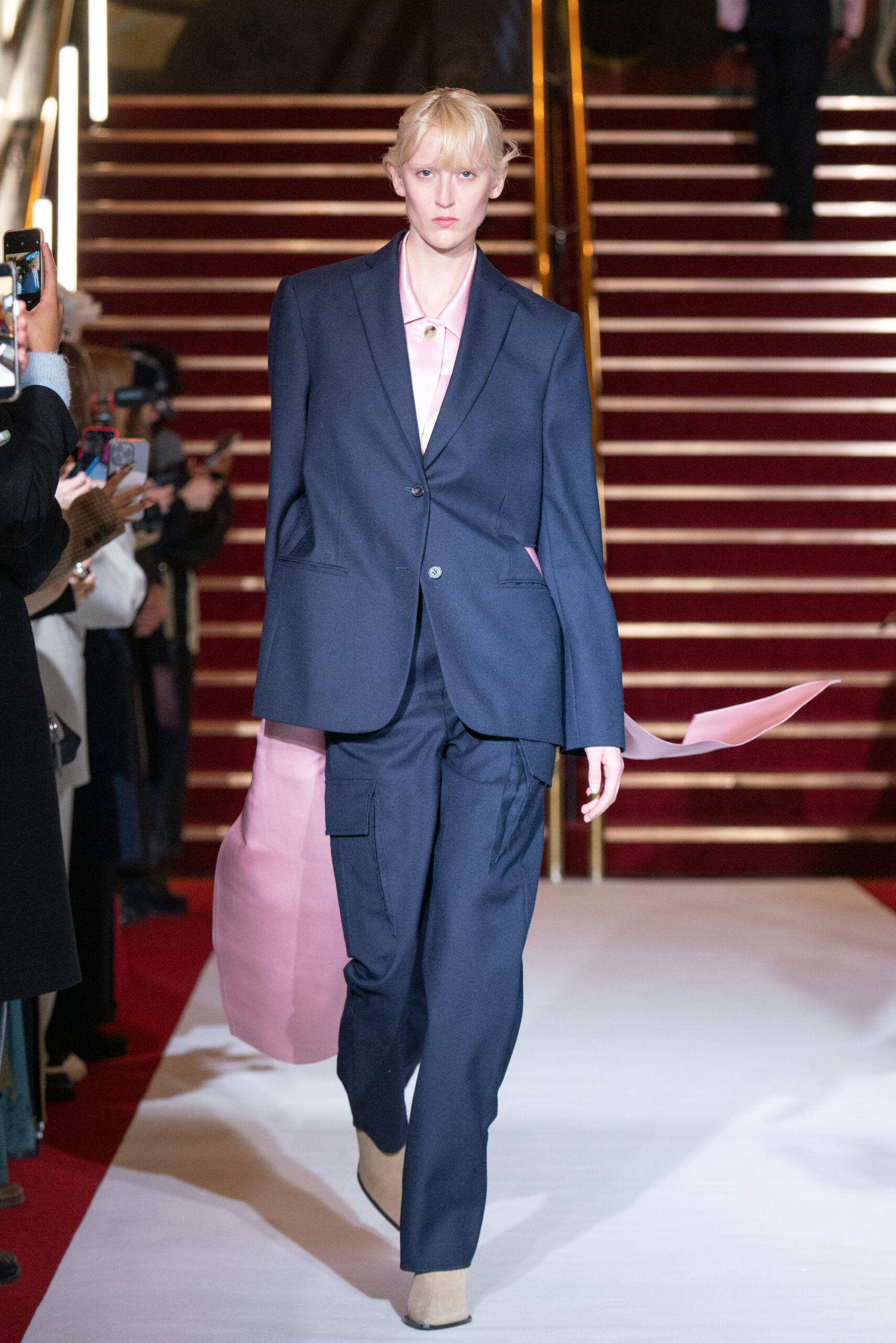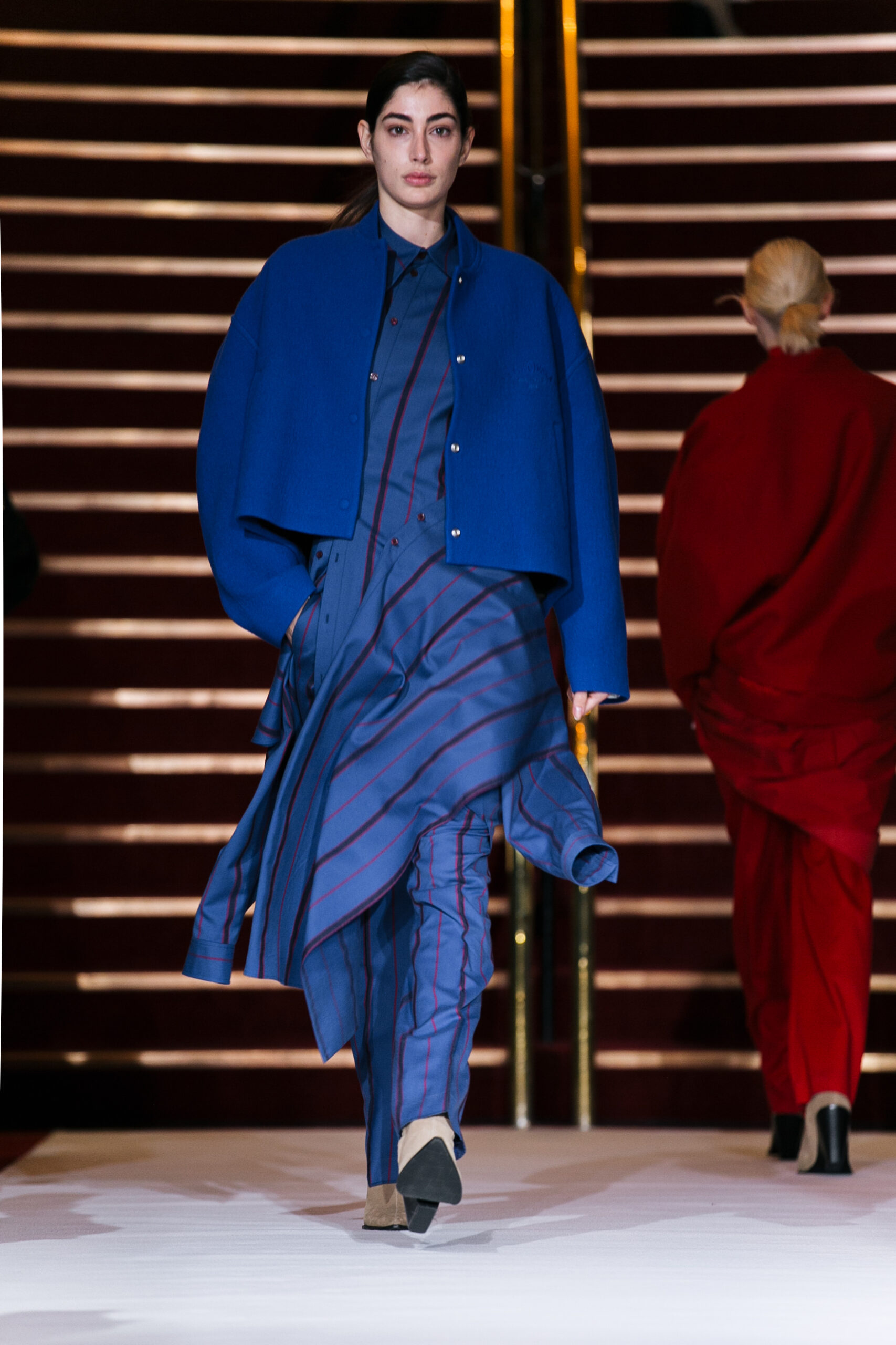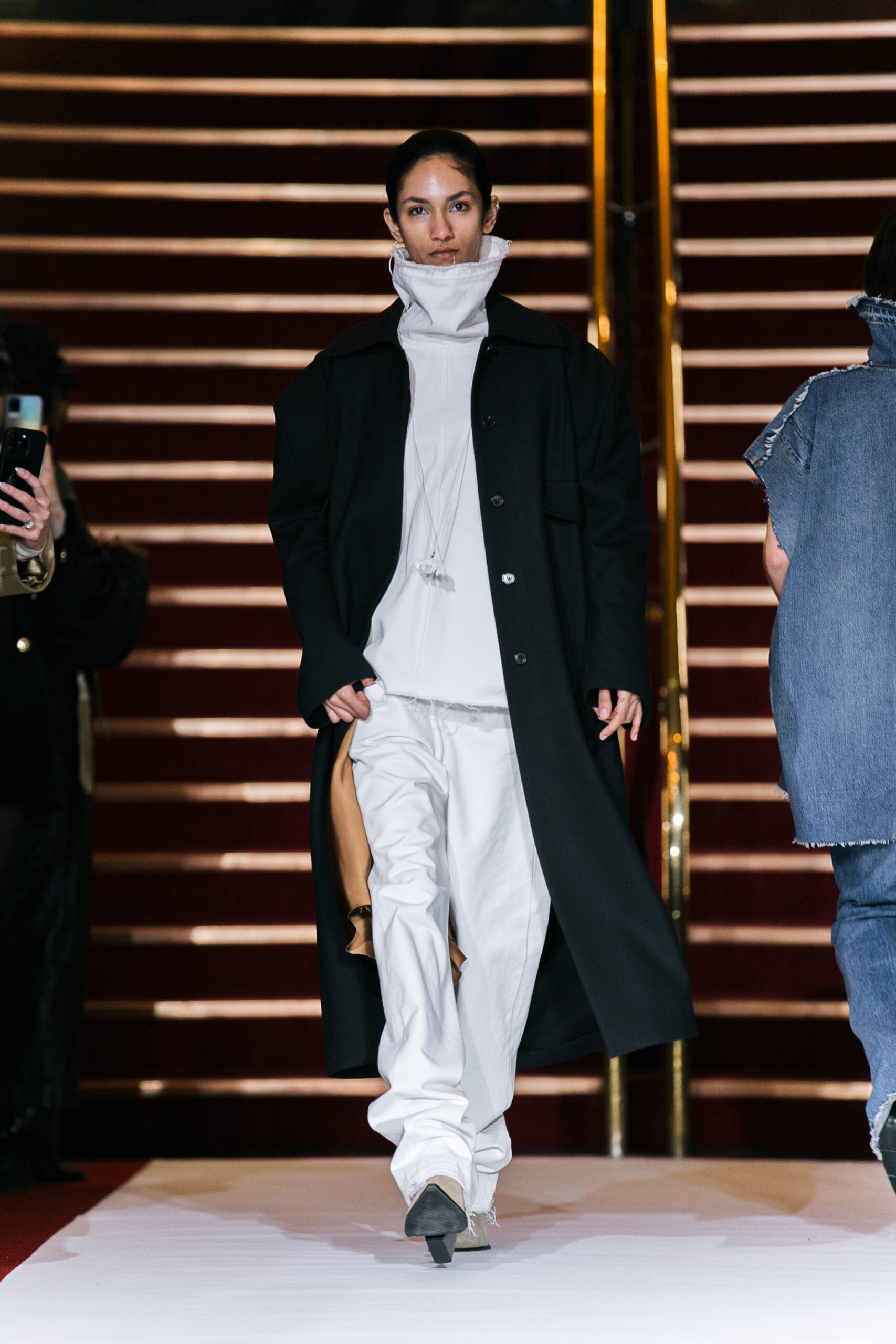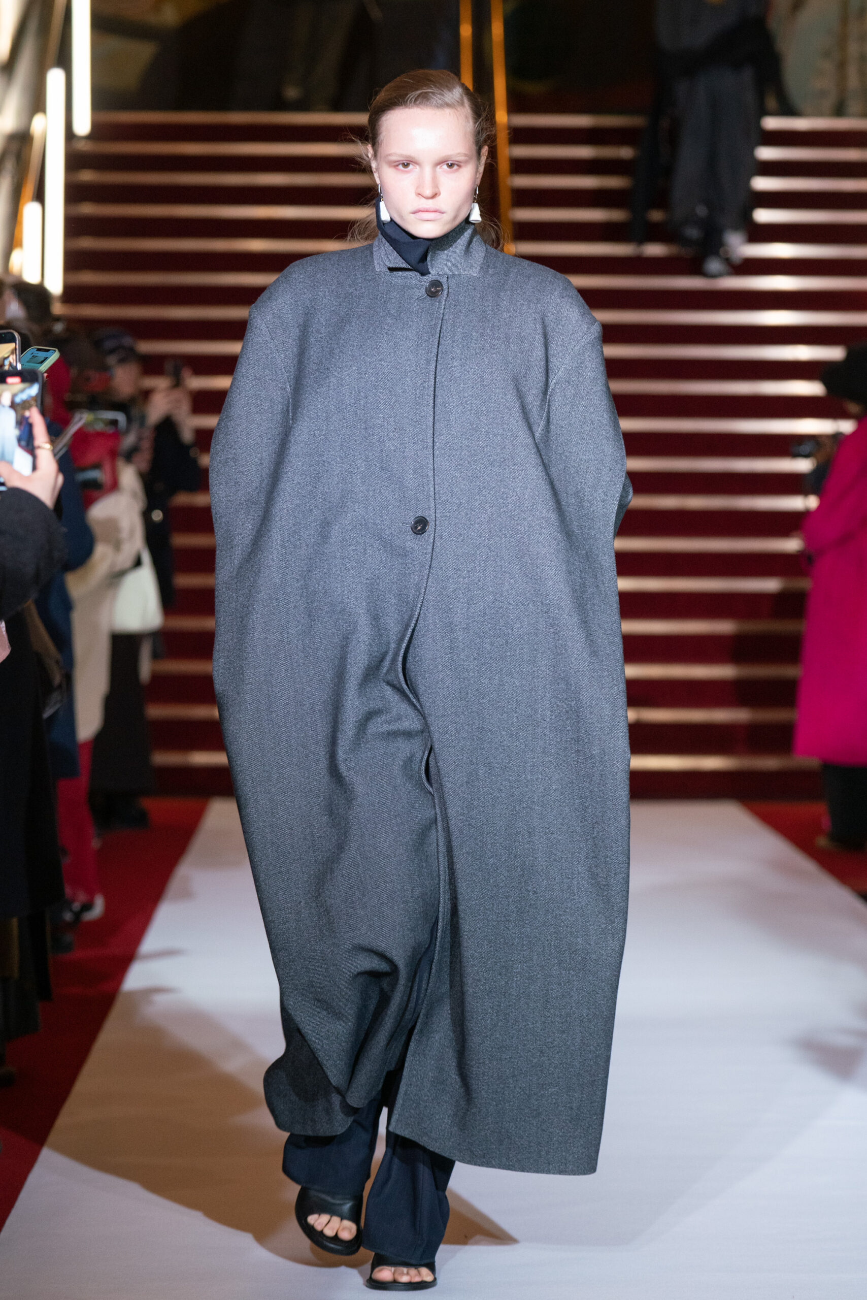 La collection a été présentée dans l’un des cinémas les plus célèbres du monde, où les caméras, les téléphones et les miroirs sont omniprésents, poussant souvent les gens à porter un masque lorsqu’ils se présentent devant le monde (des réseaux sociaux). Cependant, les Ukrainiens, qui font face à une guerre à grande échelle depuis un an, ne peuvent plus se permettre de porter ces masques. Au lieu de cela, ils se présentent tels quels, dans leur état brut. La designer Lilia Litkovska voit et honore la beauté des valeurs intérieures et de la force, de la vie quotidienne contre vents et marées. Elle établit un chic brut et touchant, presque un chic industriel, célébrant la personne pour ce qu’elle est vraiment lorsqu’elle porte et ressent les vêtements, et s’exprime dans sa forme la plus vraie.