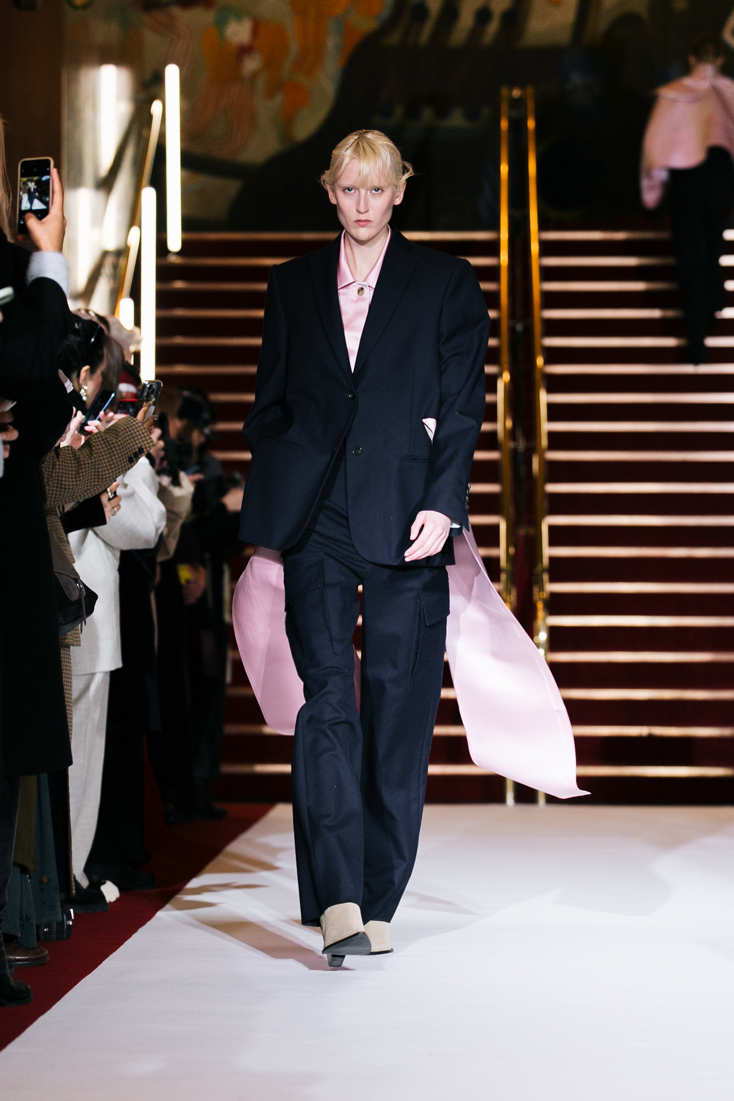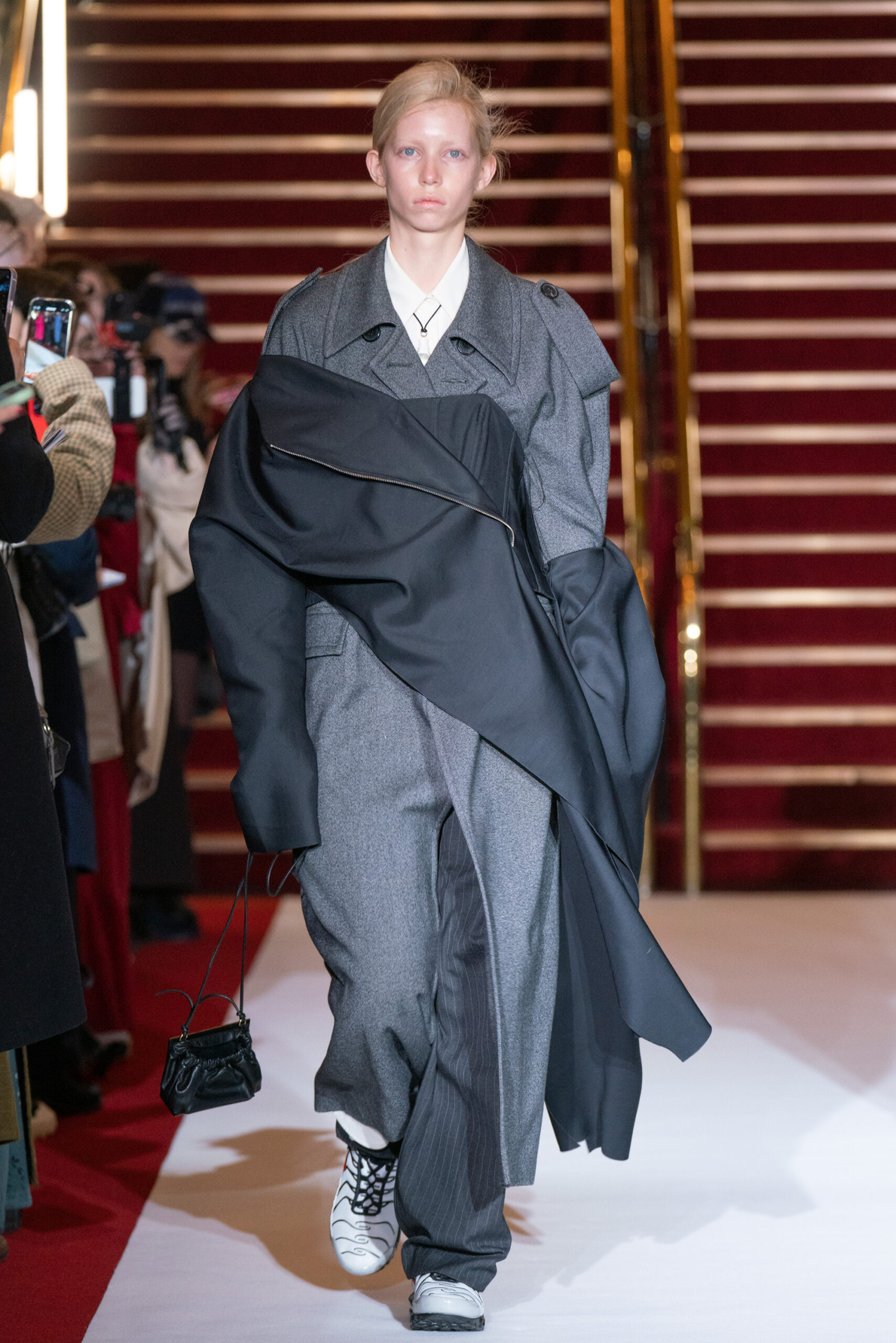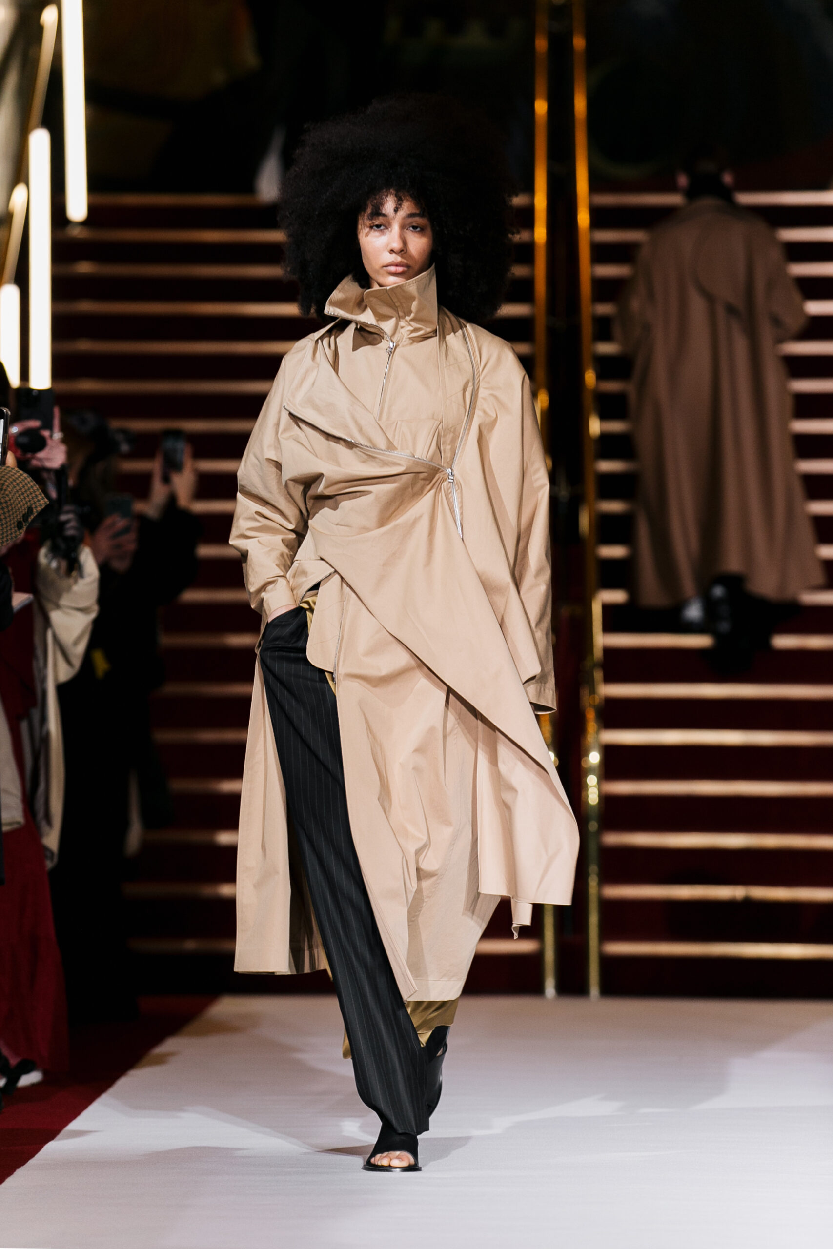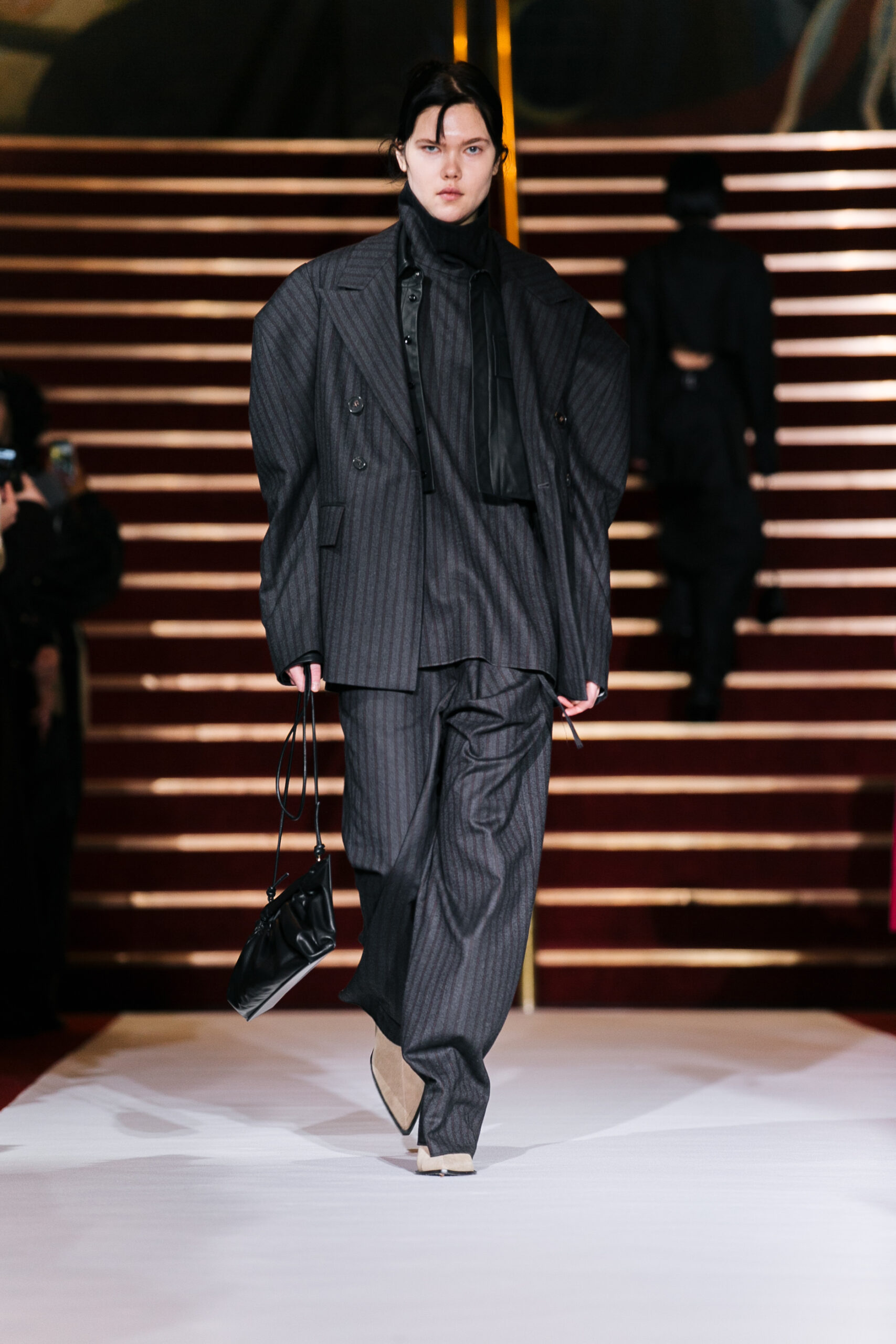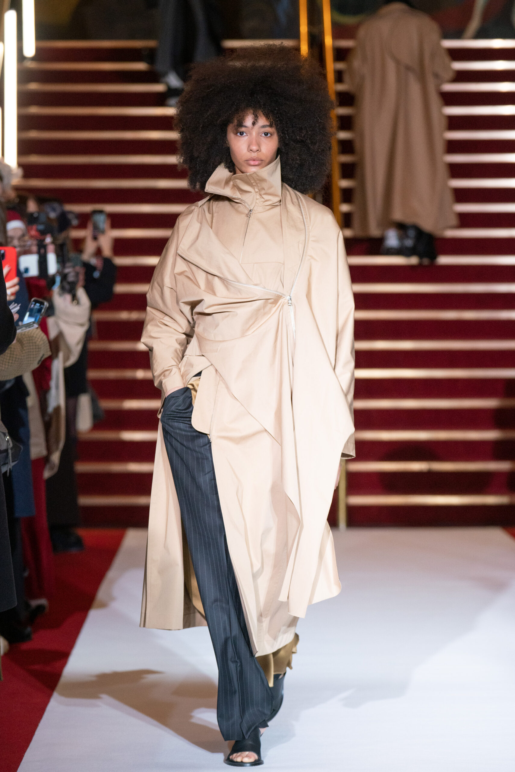 La collection a été présentée dans l’un des cinémas les plus célèbres du monde, où les caméras, les téléphones et les miroirs sont omniprésents, poussant souvent les gens à porter un masque lorsqu’ils se présentent devant le monde (des réseaux sociaux). Cependant, les Ukrainiens, qui font face à une guerre à grande échelle depuis un an, ne peuvent plus se permettre de porter ces masques. Au lieu de cela, ils se présentent tels quels, dans leur état brut. La designer Lilia Litkovska voit et honore la beauté des valeurs intérieures et de la force, de la vie quotidienne contre vents et marées. Elle établit un chic brut et touchant, presque un chic industriel, célébrant la personne pour ce qu’elle est vraiment lorsqu’elle porte et ressent les vêtements, et s’exprime dans sa forme la plus vraie.