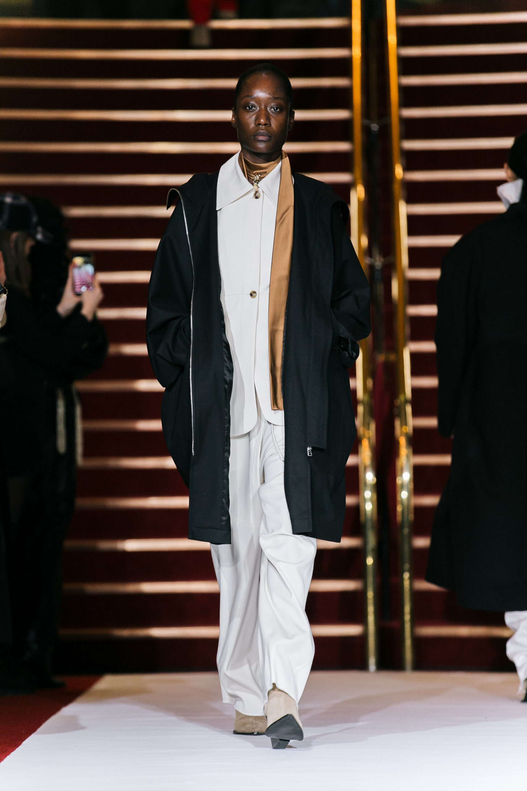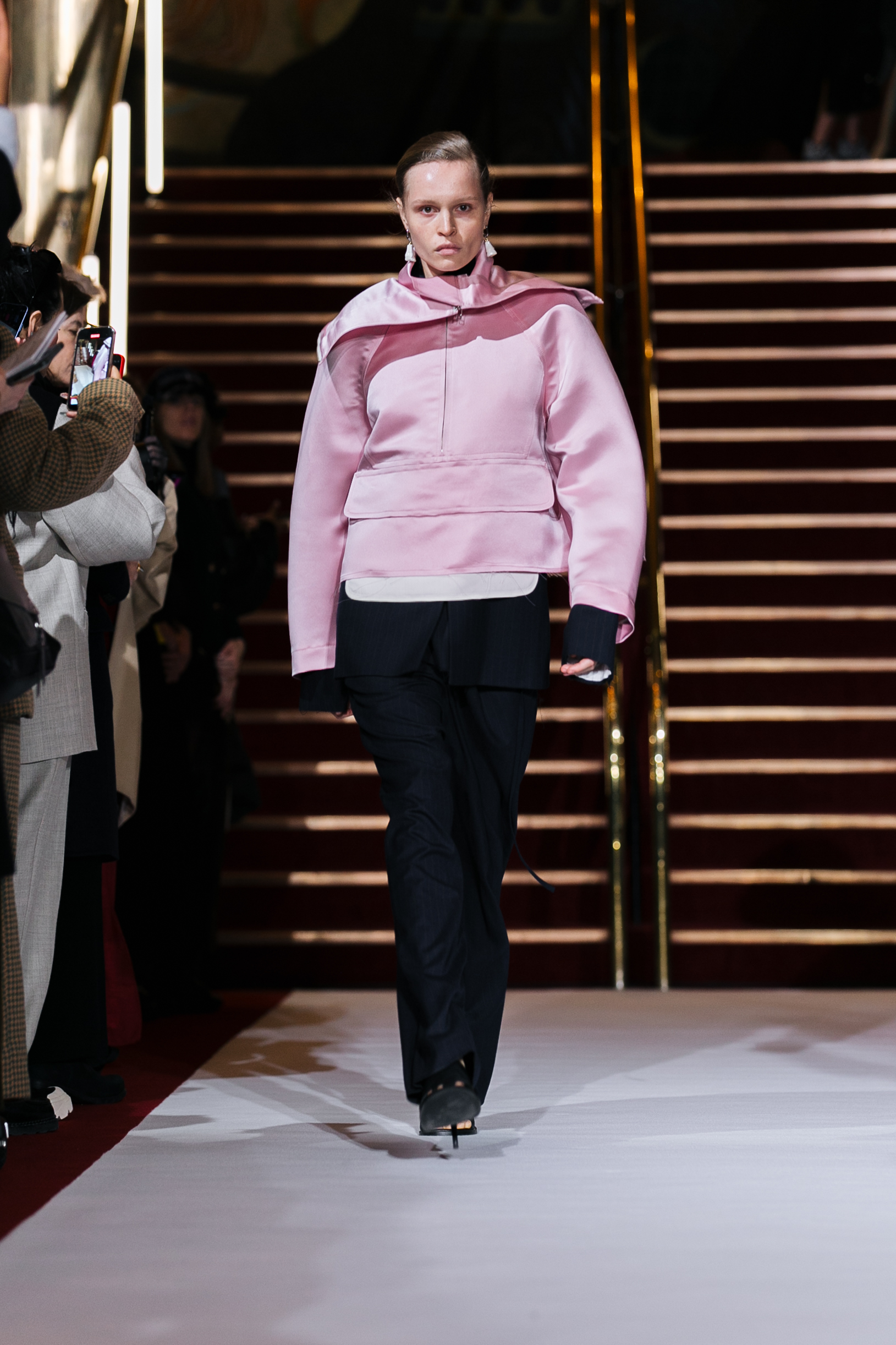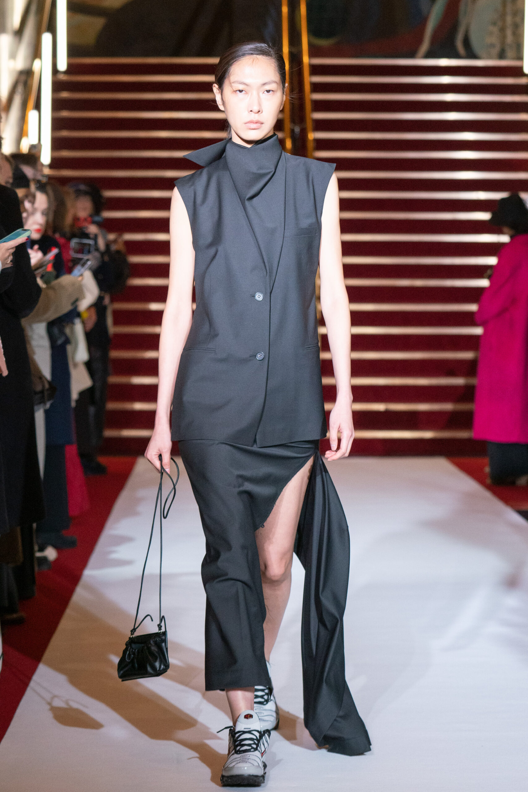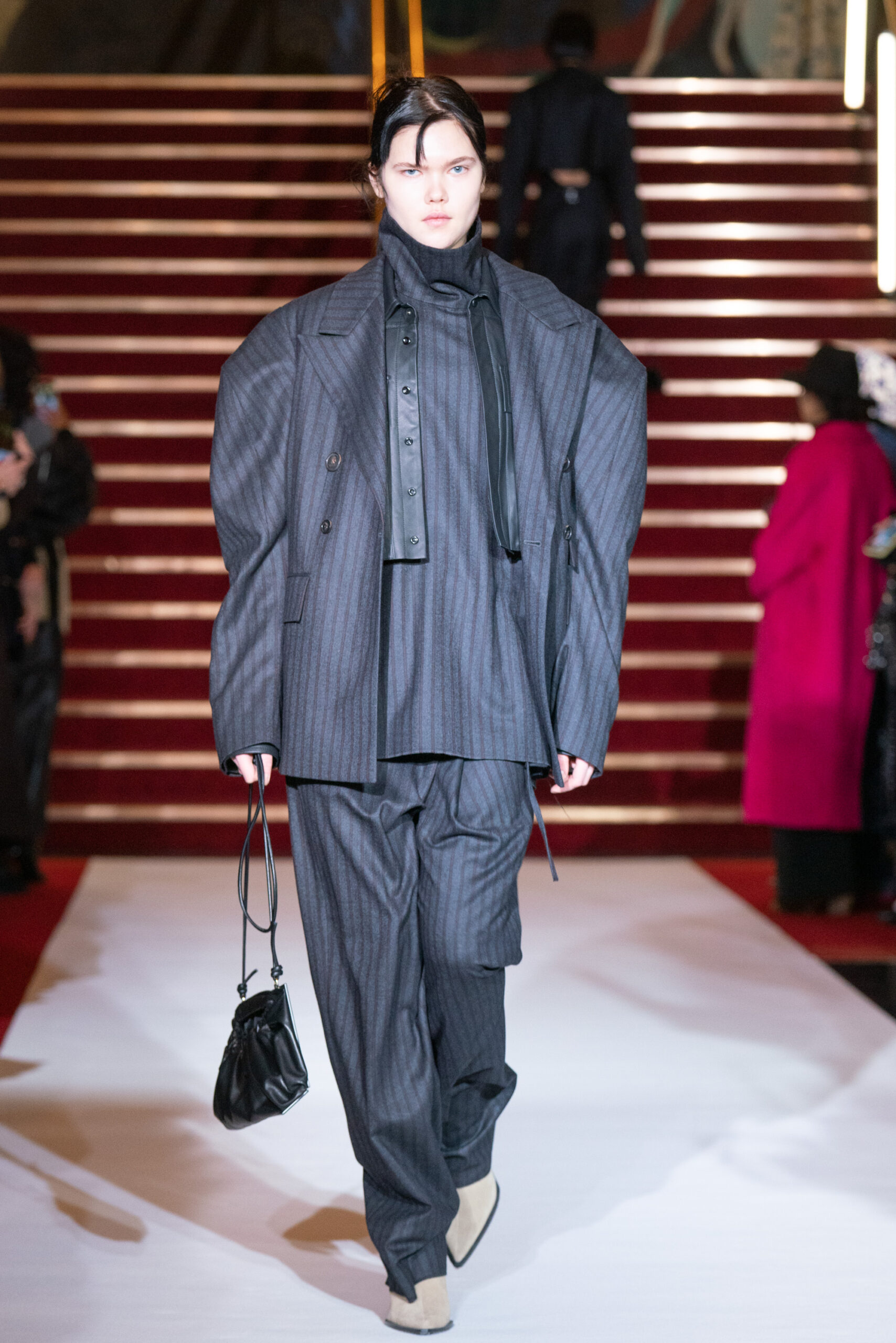 La collection a été présentée dans l’un des cinémas les plus célèbres du monde, où les caméras, les téléphones et les miroirs sont omniprésents, poussant souvent les gens à porter un masque lorsqu’ils se présentent devant le monde (des réseaux sociaux). Cependant, les Ukrainiens, qui font face à une guerre à grande échelle depuis un an, ne peuvent plus se permettre de porter ces masques. Au lieu de cela, ils se présentent tels quels, dans leur état brut. La designer Lilia Litkovska voit et honore la beauté des valeurs intérieures et de la force, de la vie quotidienne contre vents et marées. Elle établit un chic brut et touchant, presque un chic industriel, célébrant la personne pour ce qu’elle est vraiment lorsqu’elle porte et ressent les vêtements, et s’exprime dans sa forme la plus vraie.
