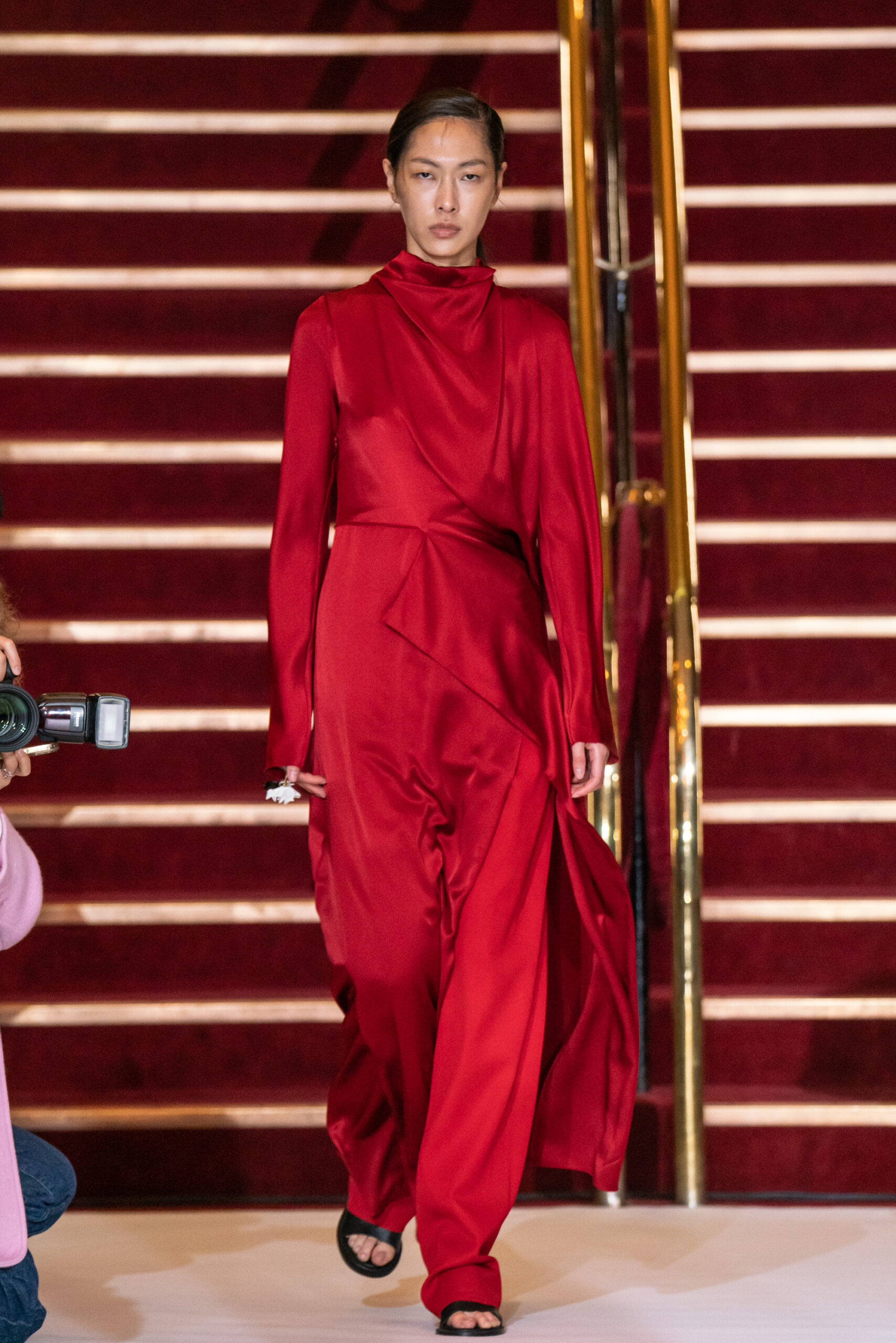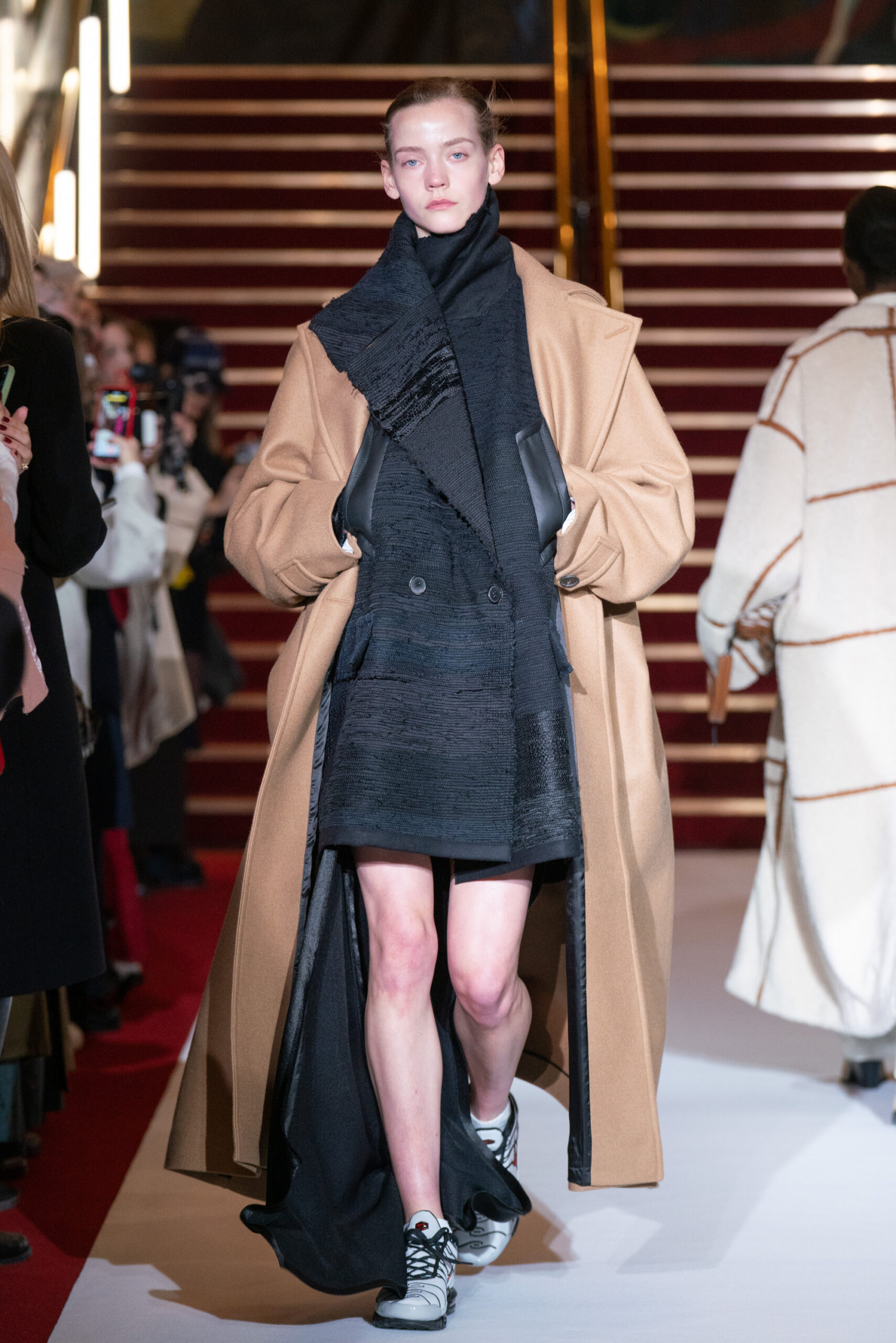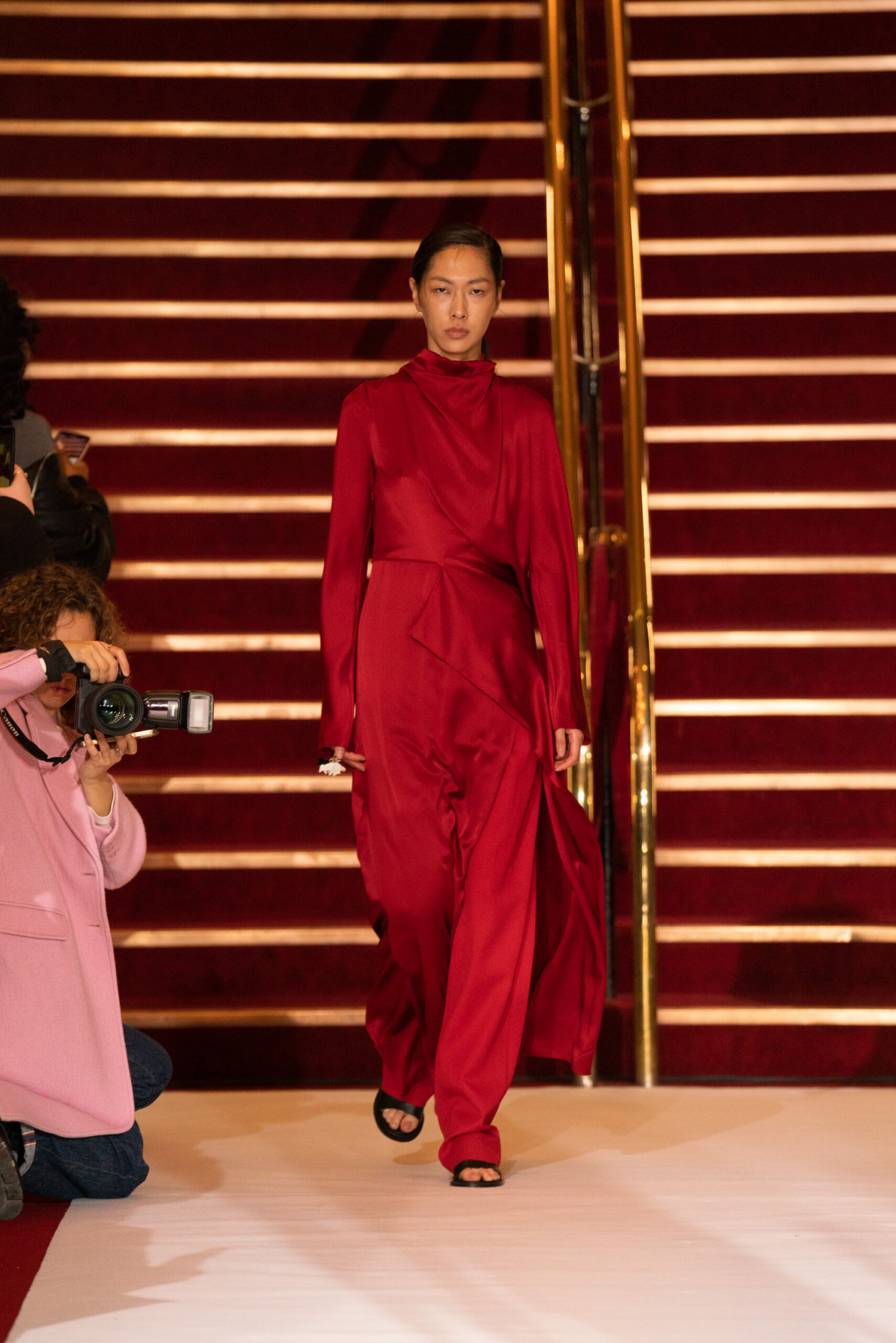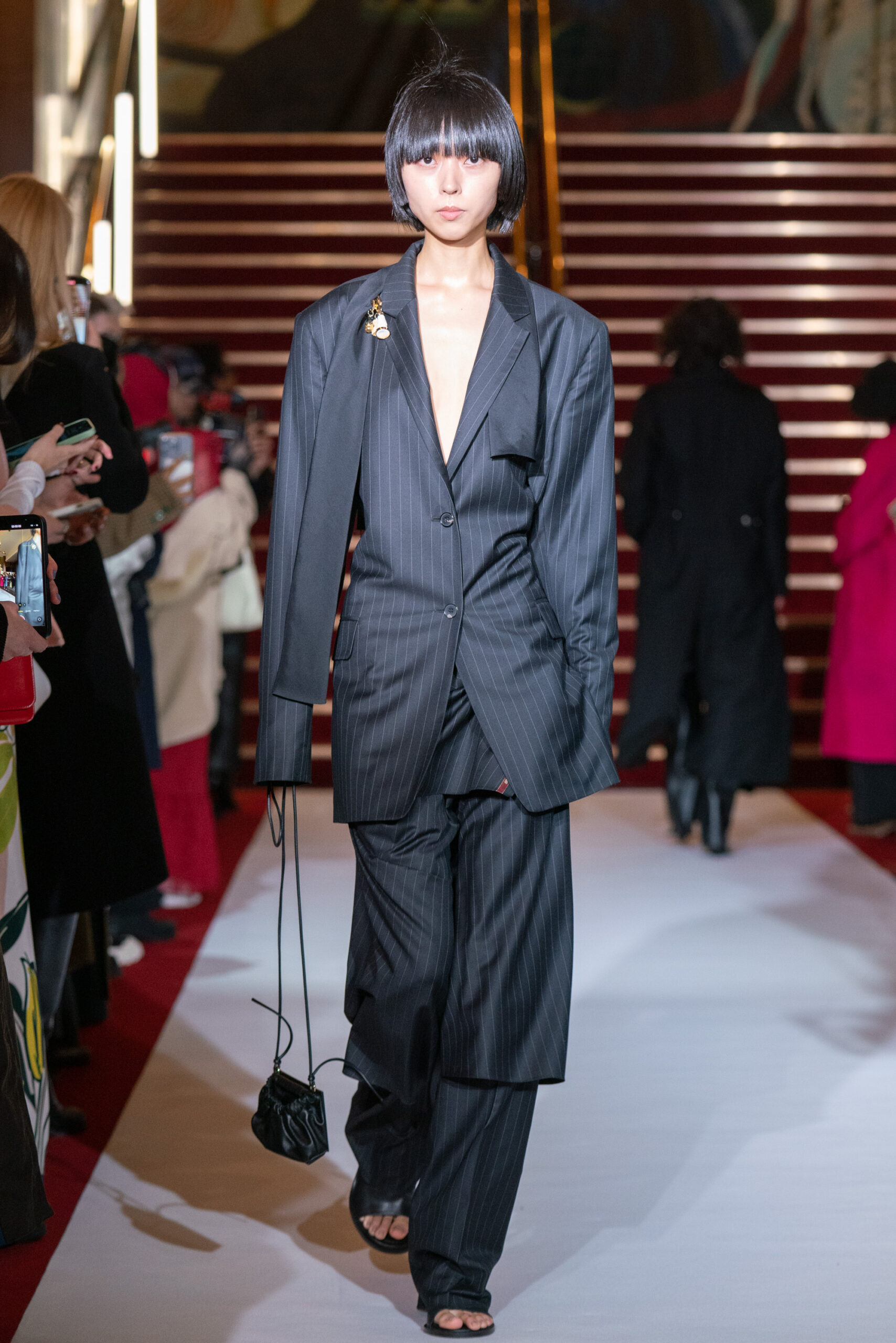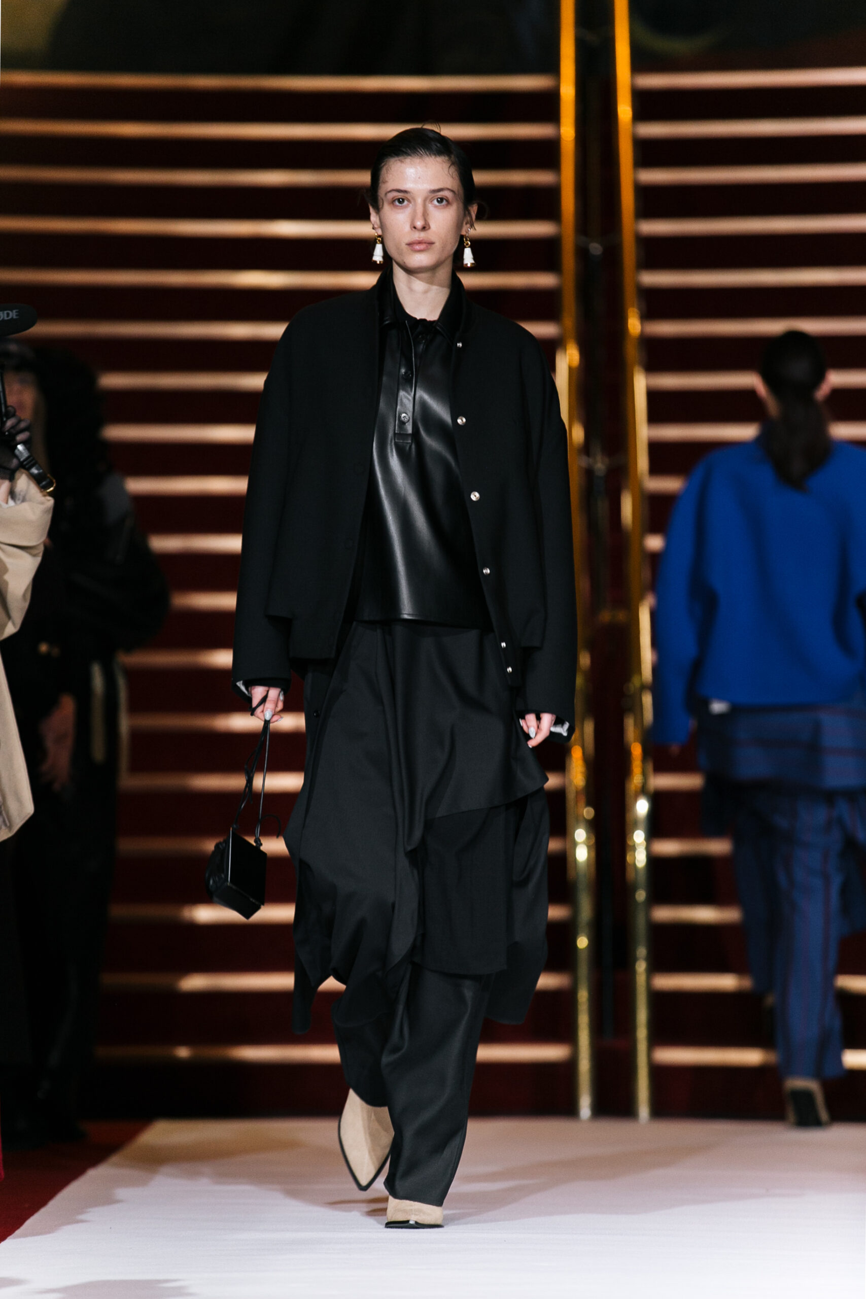 La collection a été présentée dans l’un des cinémas les plus célèbres du monde, où les caméras, les téléphones et les miroirs sont omniprésents, poussant souvent les gens à porter un masque lorsqu’ils se présentent devant le monde (des réseaux sociaux). Cependant, les Ukrainiens, qui font face à une guerre à grande échelle depuis un an, ne peuvent plus se permettre de porter ces masques. Au lieu de cela, ils se présentent tels quels, dans leur état brut. La designer Lilia Litkovska voit et honore la beauté des valeurs intérieures et de la force, de la vie quotidienne contre vents et marées. Elle établit un chic brut et touchant, presque un chic industriel, célébrant la personne pour ce qu’elle est vraiment lorsqu’elle porte et ressent les vêtements, et s’exprime dans sa forme la plus vraie.