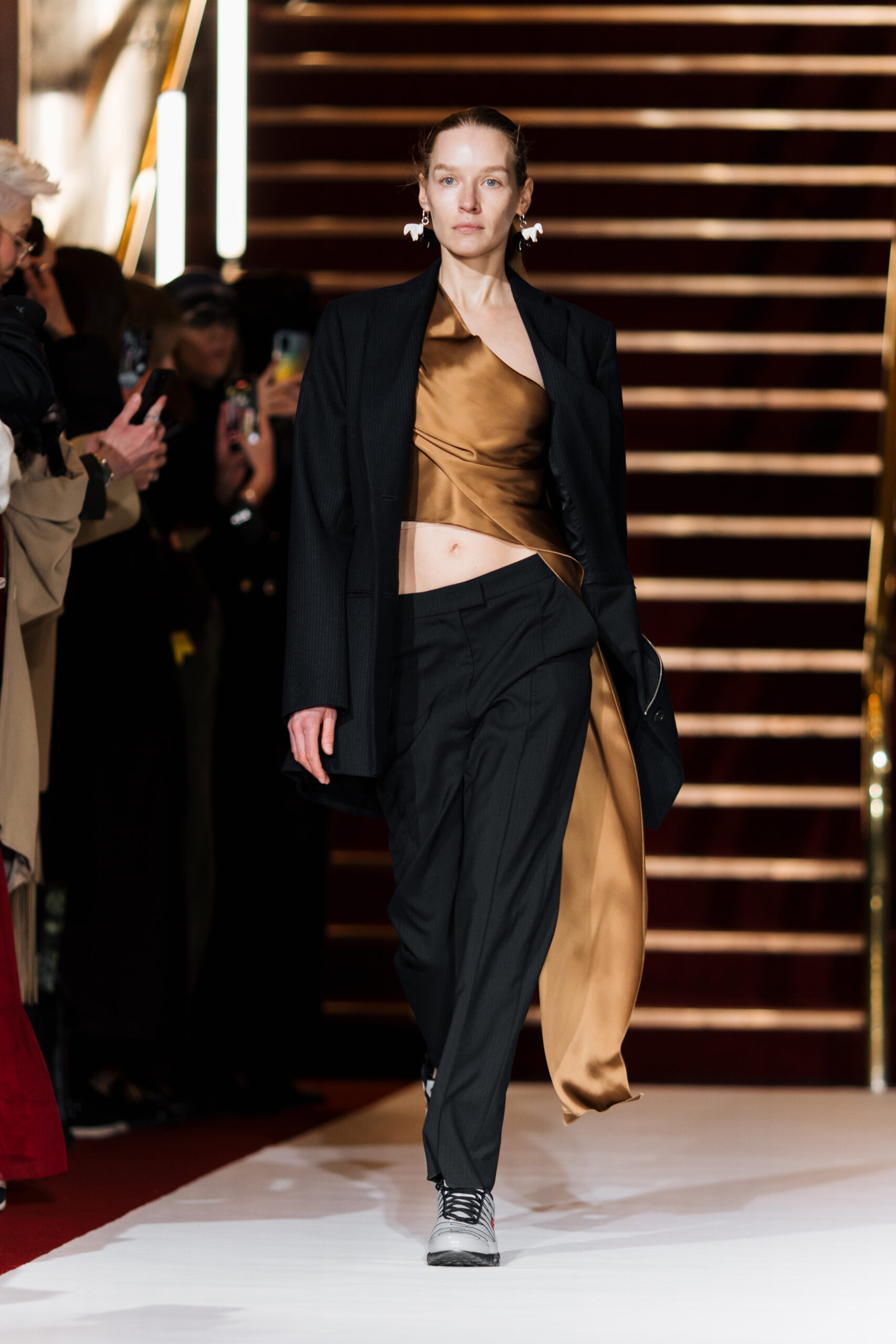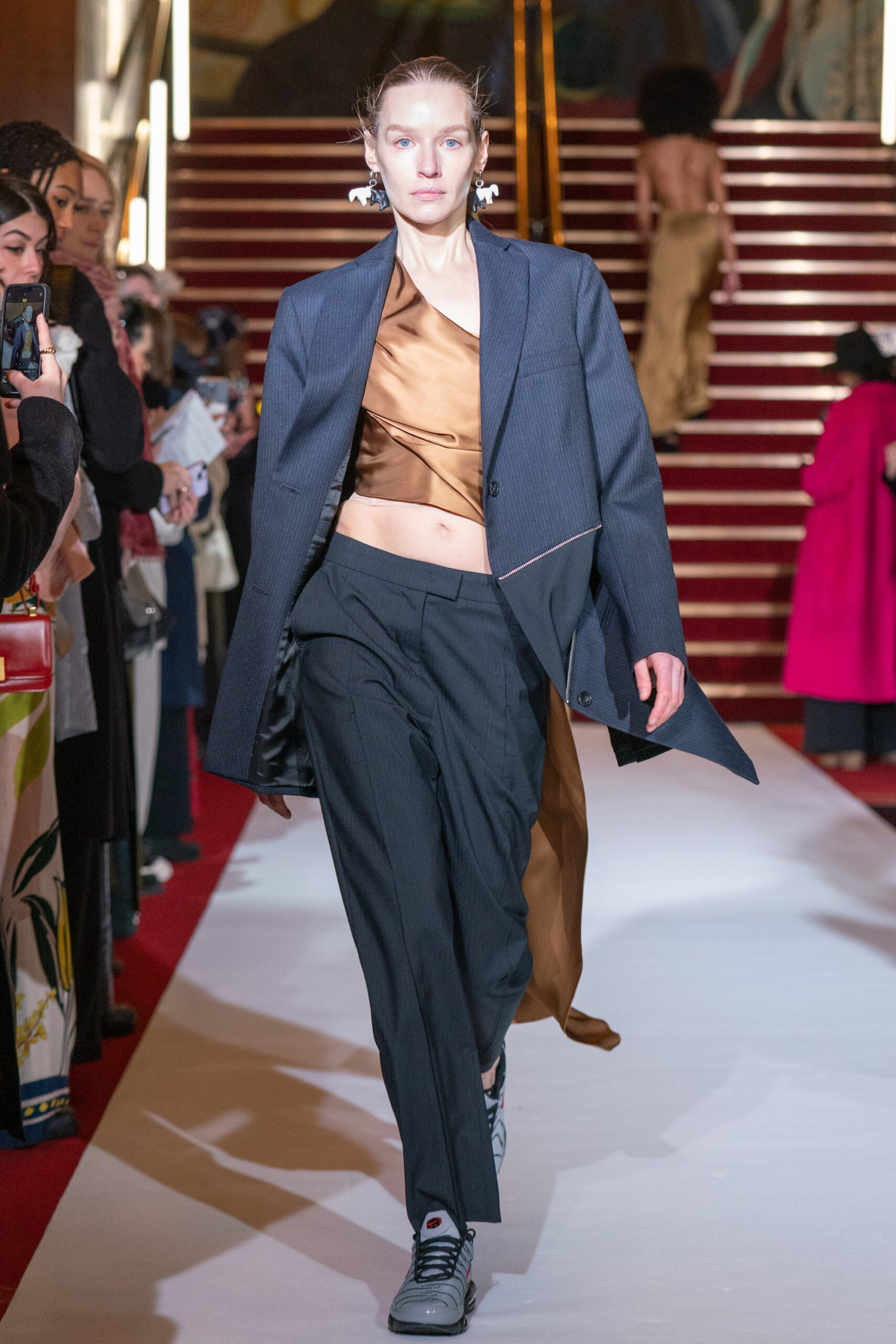 La collection On Air est complétée par des accessoires et des bijoux délicats en forme de chevaux, un clin d’œil aux bergers des montagnes des Carpates et à leur tradition de sculpter de petits chevaux en fromage en guise de cadeaux spéciaux pour les enfants et de talismans pour leurs proches. Symbolisant la communauté, l’artisanat et la protection, Lilia Litkovska étend ces bénédictions au public, à l’industrie de la mode et aux porteurs de ses pièces.