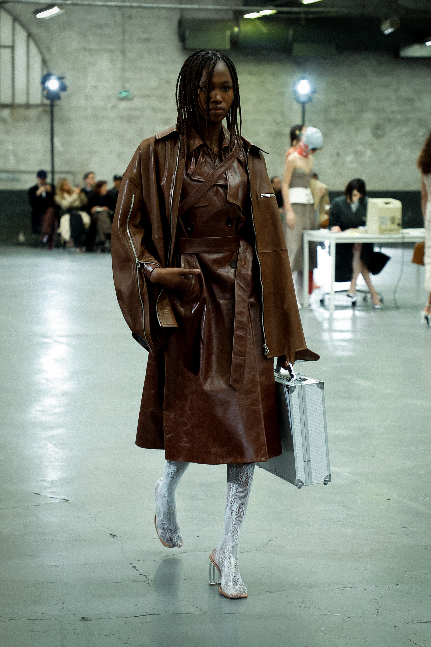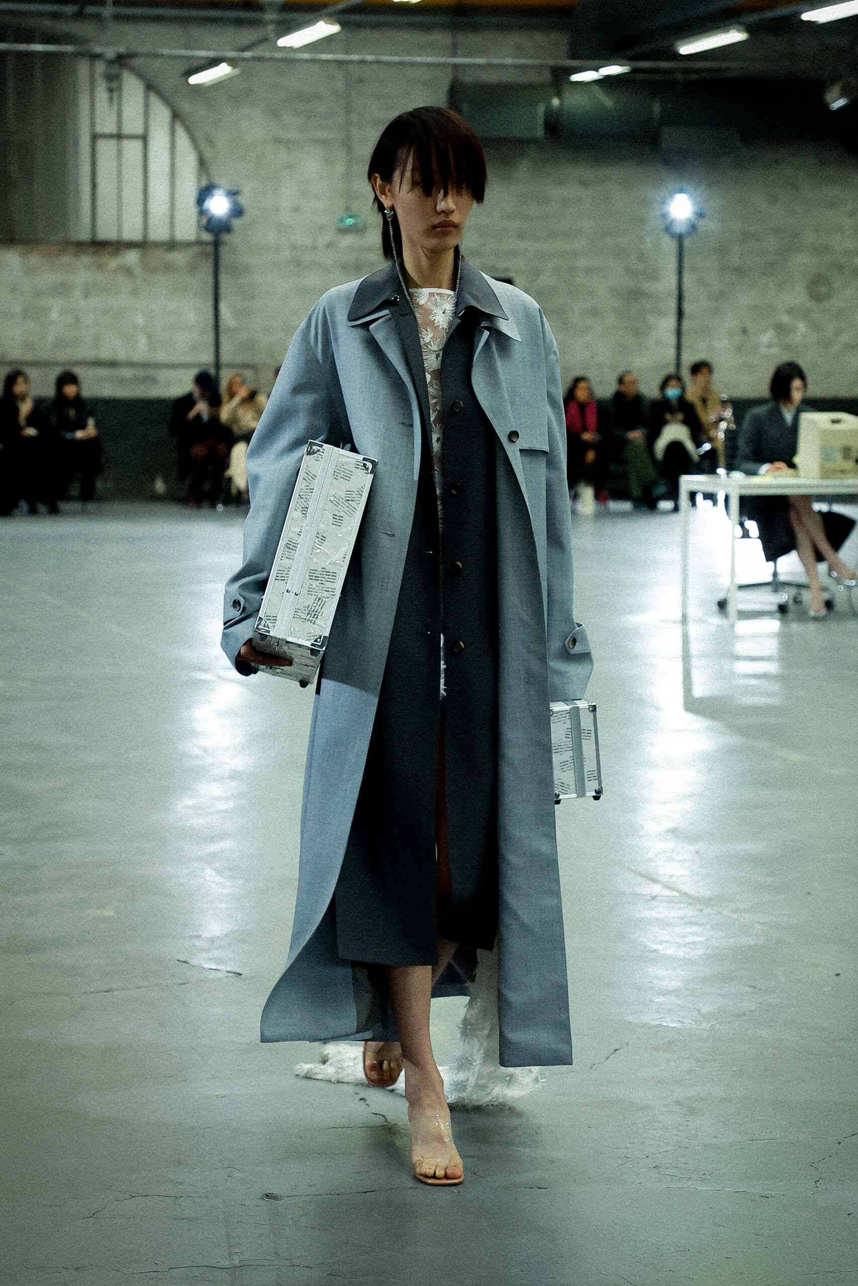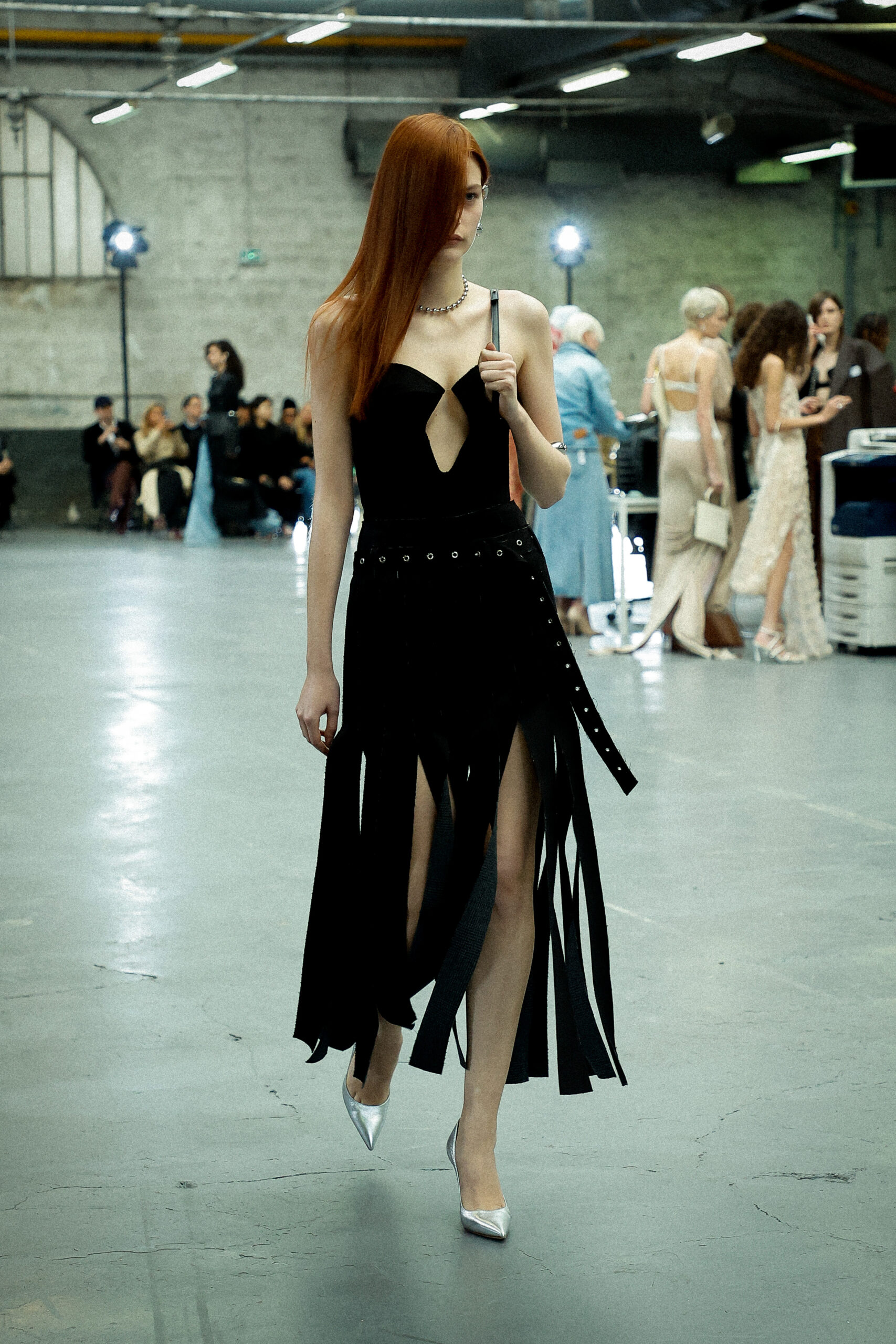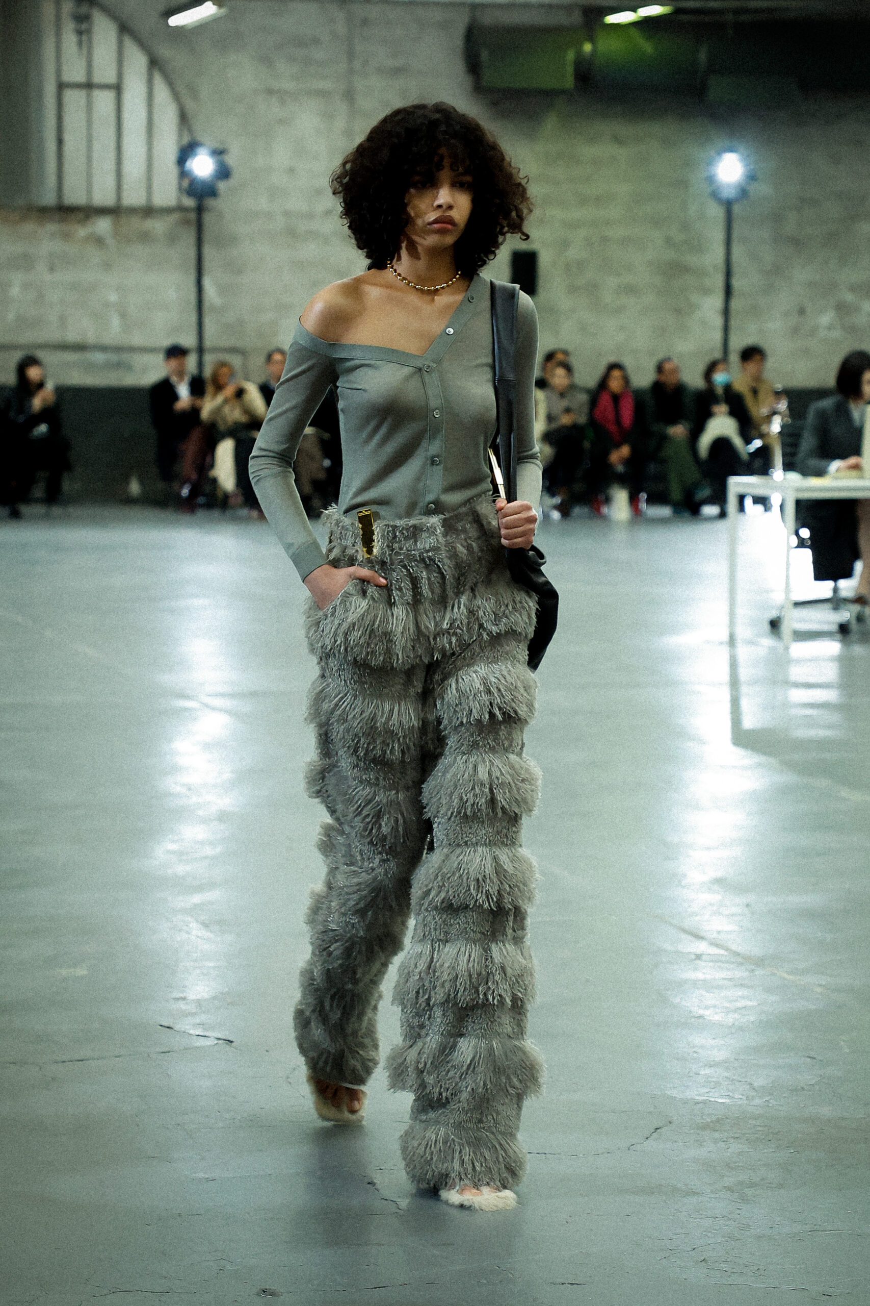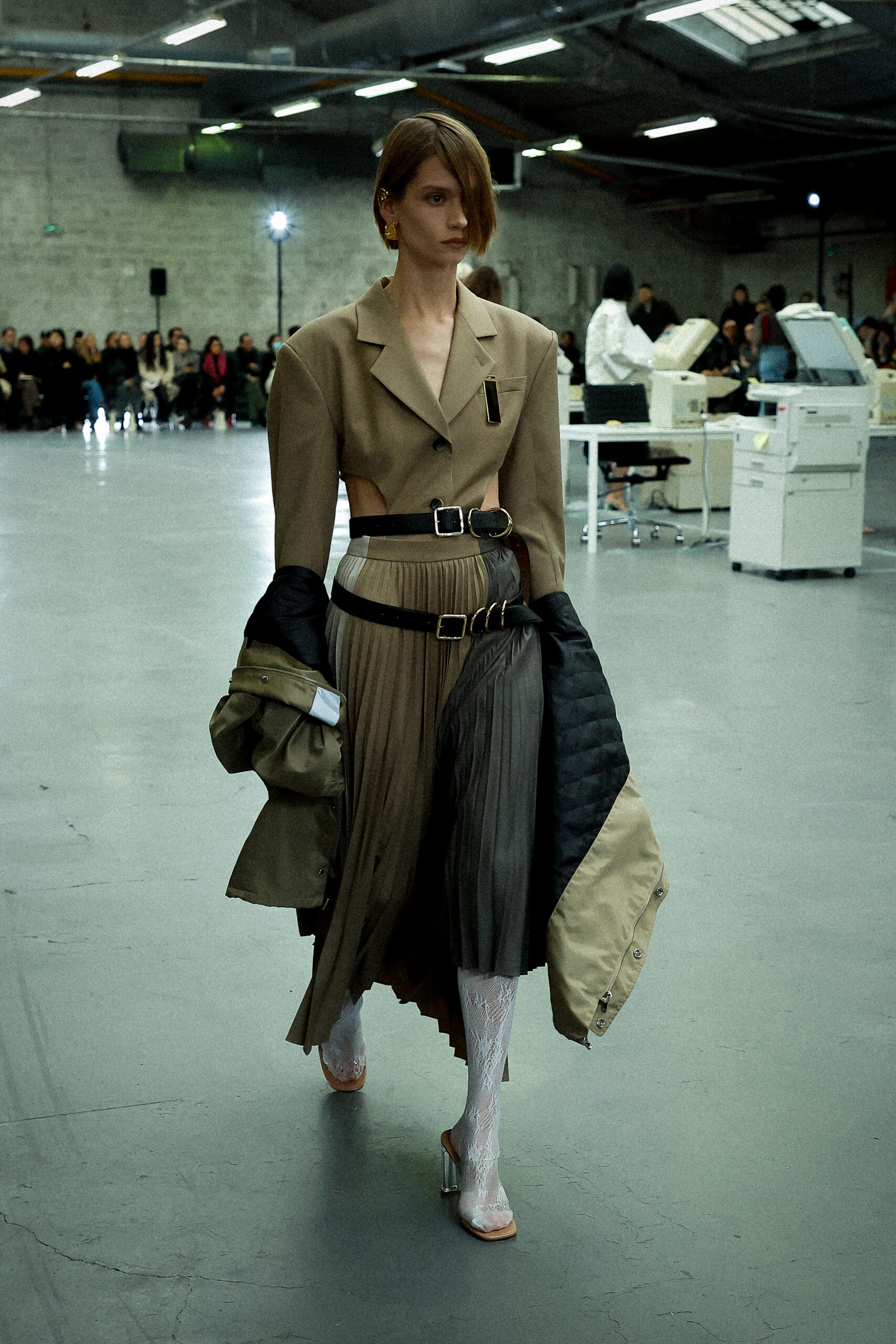 Les corsets taillés en laine vierge fine donnent le ton avec leur attrait décisif et sensuel. Construits à l’aide de techniques de couture méticuleuses, ces corsets présentent des pinces bien placées, des coutures verticales et des structures internes qui accentuent la taille. Pendant ce temps, le denim lavé intensément est affûté à l’aide de techniques de construction utilitaire traditionnelles et d’accents dynamiques de mélange de lavage en pierre et de lavage au sable.