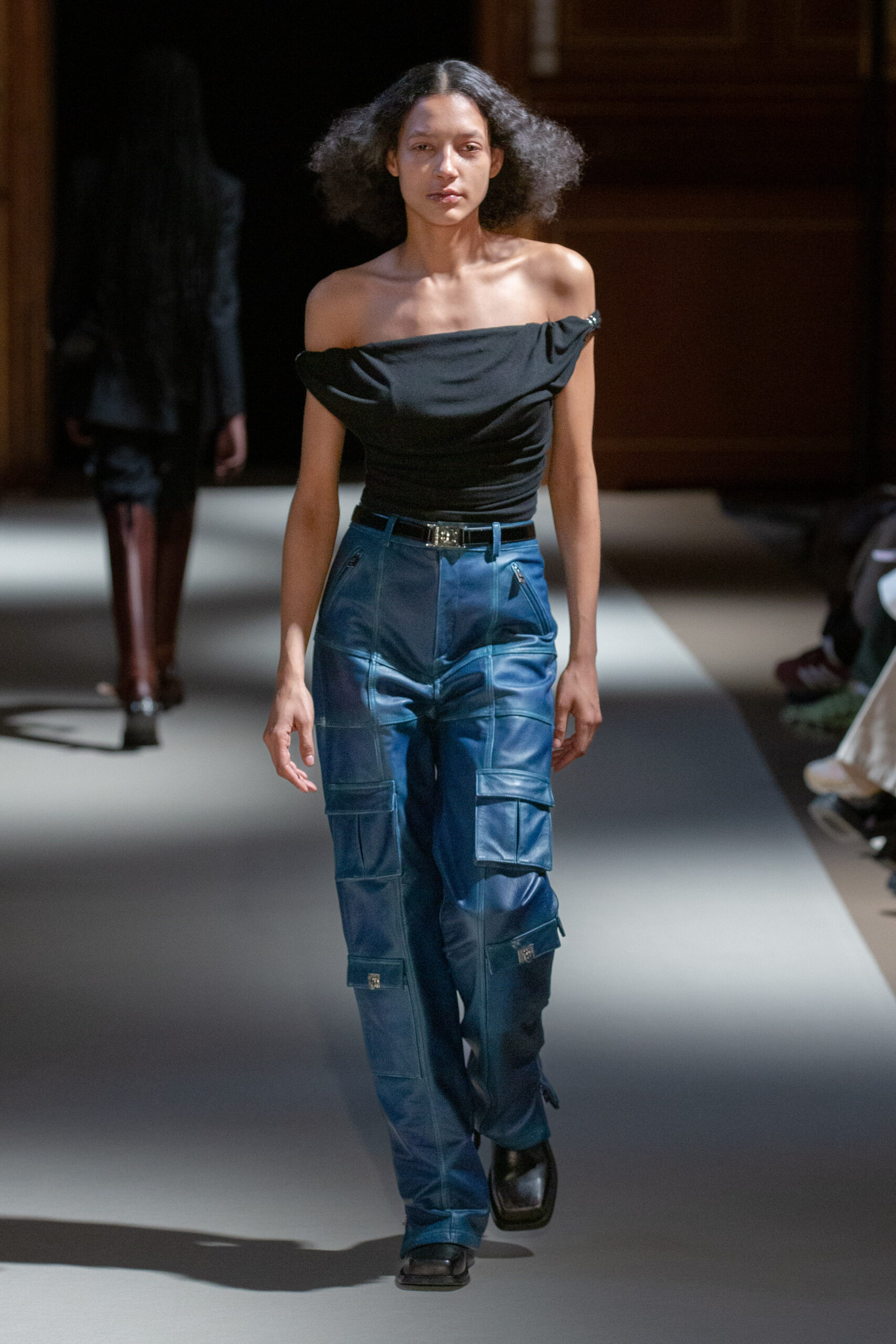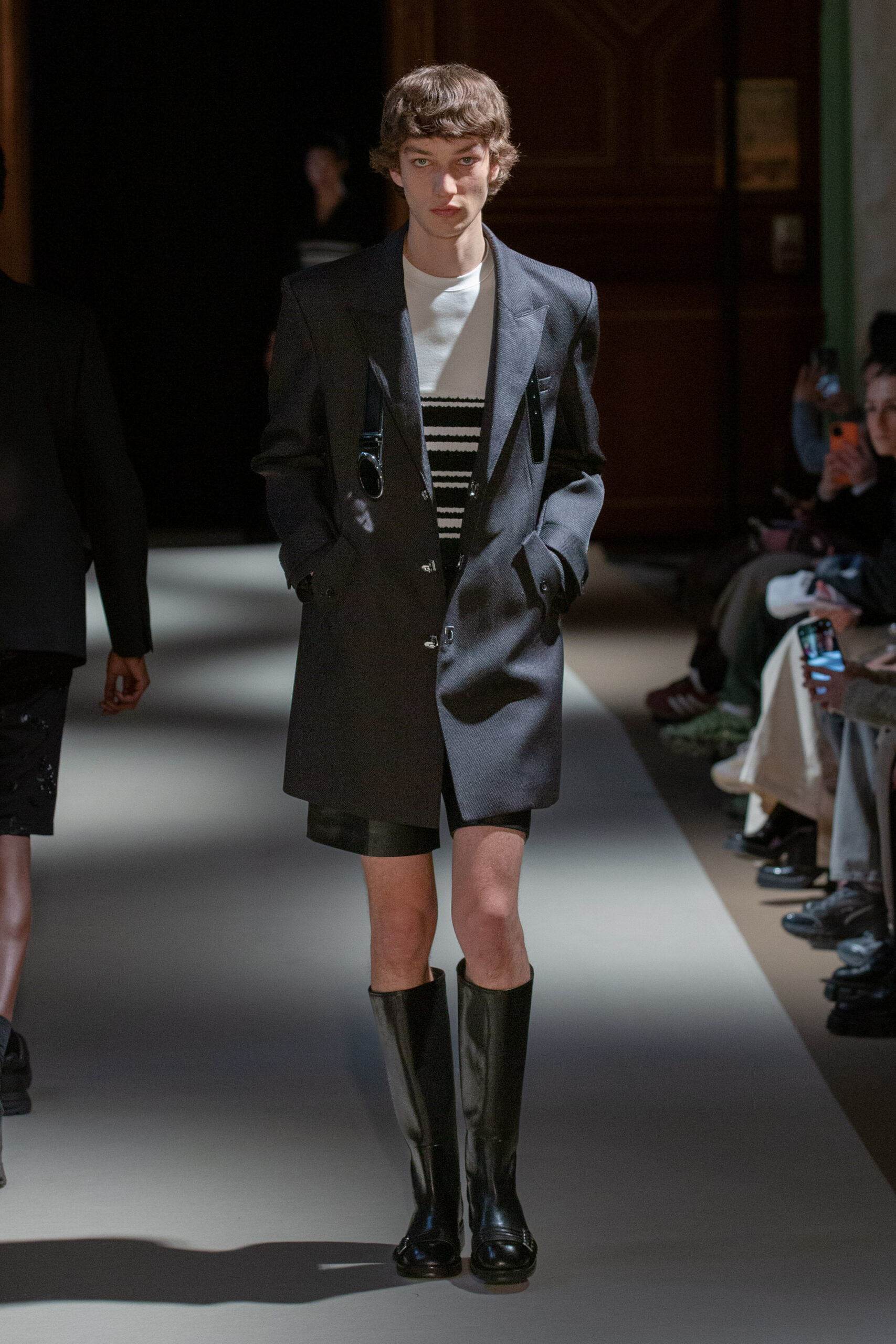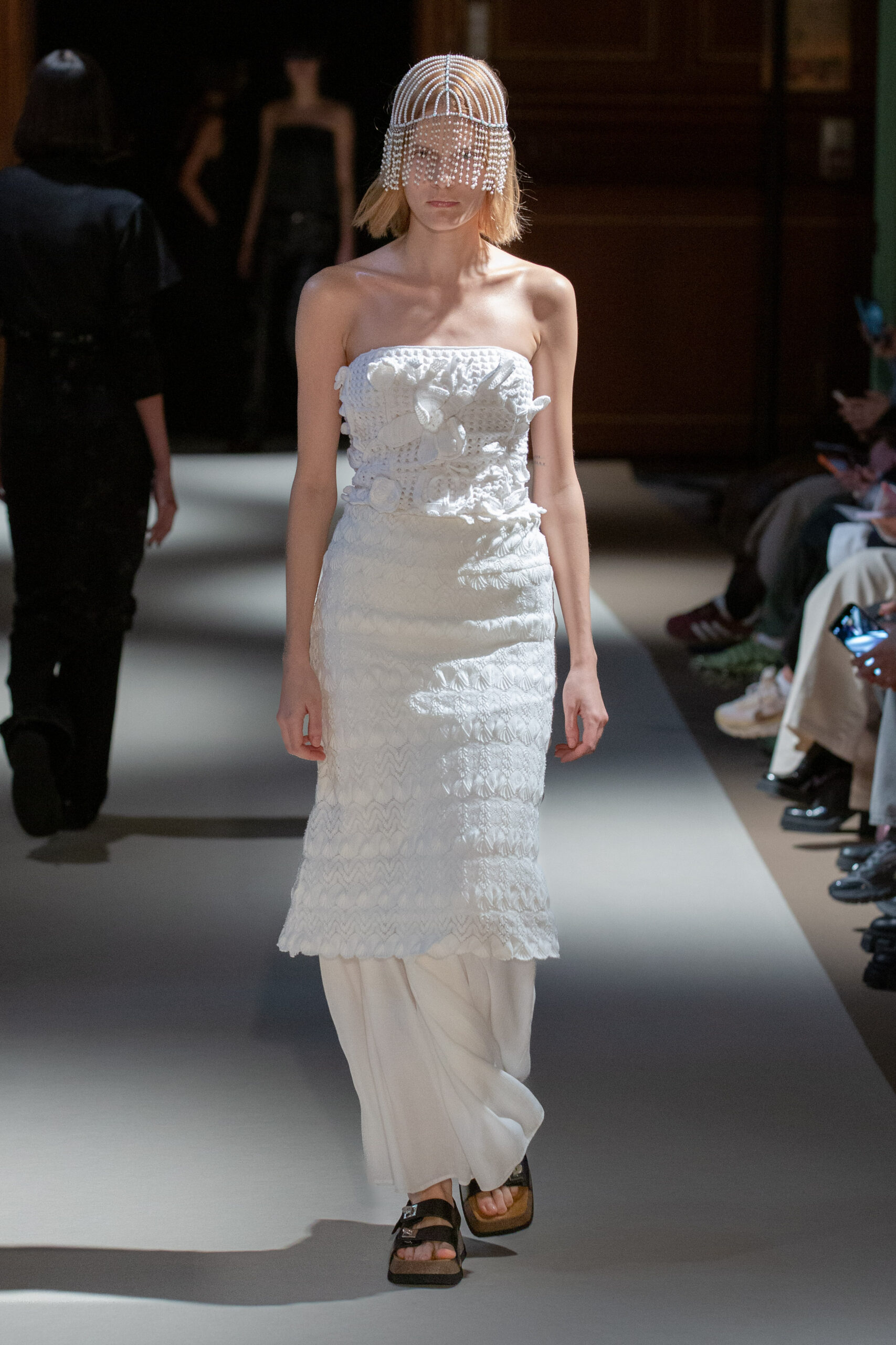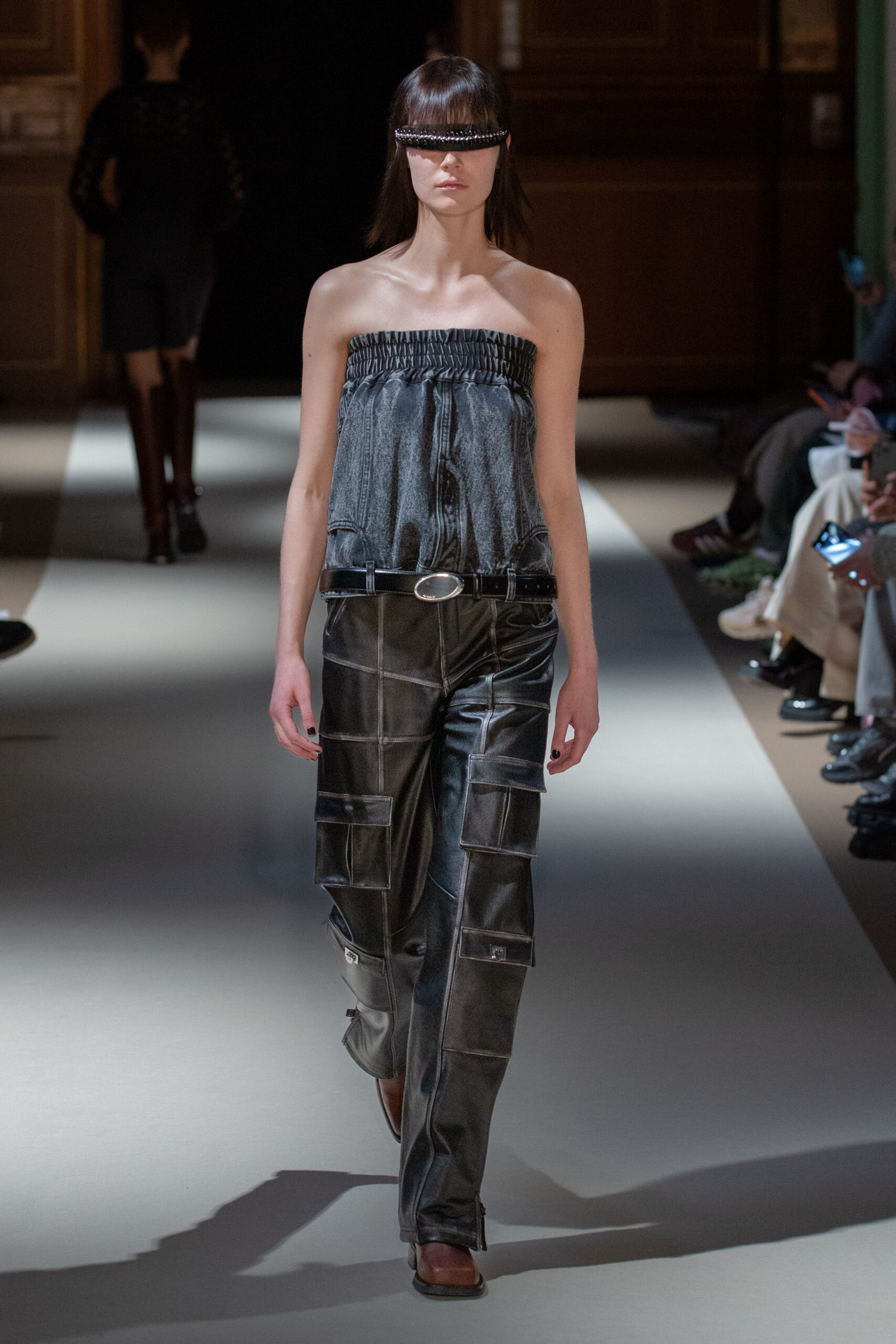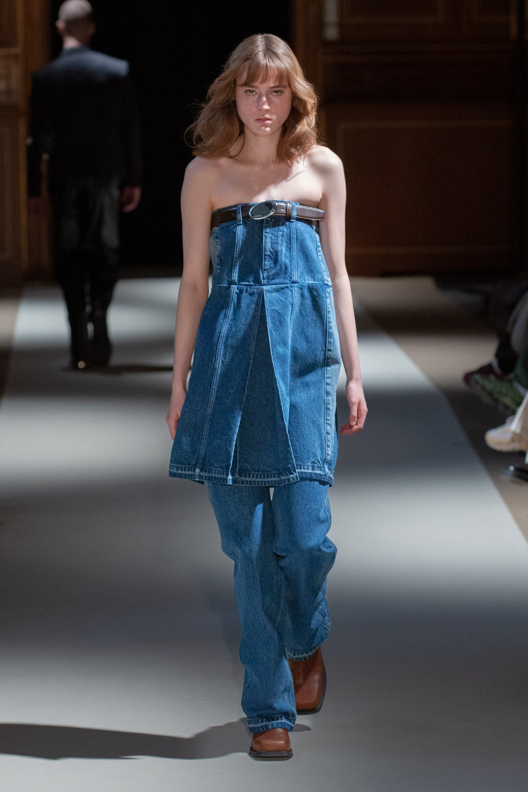 La collection se compose de pièces féminines et délicates, comme des plis fluides en mousseline de soie, des tricots aux épaules renforcées de ressorts métalliques, et des costumes noirs classiques agrémentés de plis en taffetas. La collection met également en avant des éléments novateurs comme des ceintures multi-niveaux, des lanières et des rayures pour rafraîchir les coupes et les basiques.