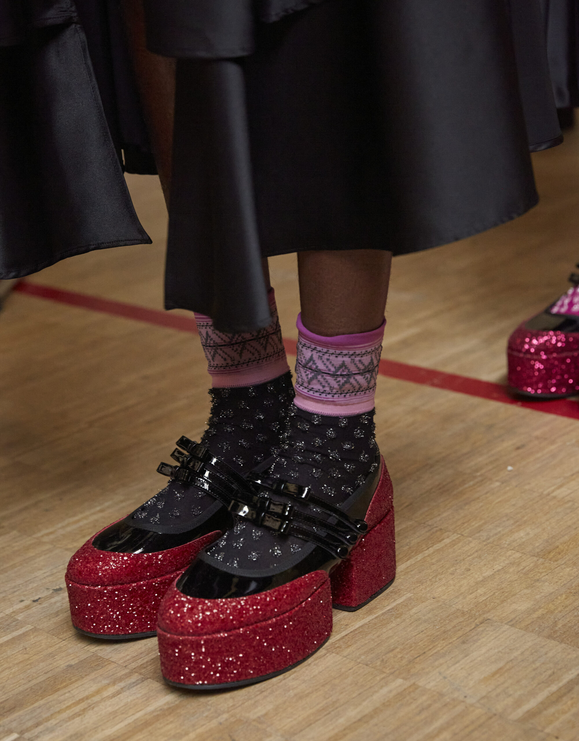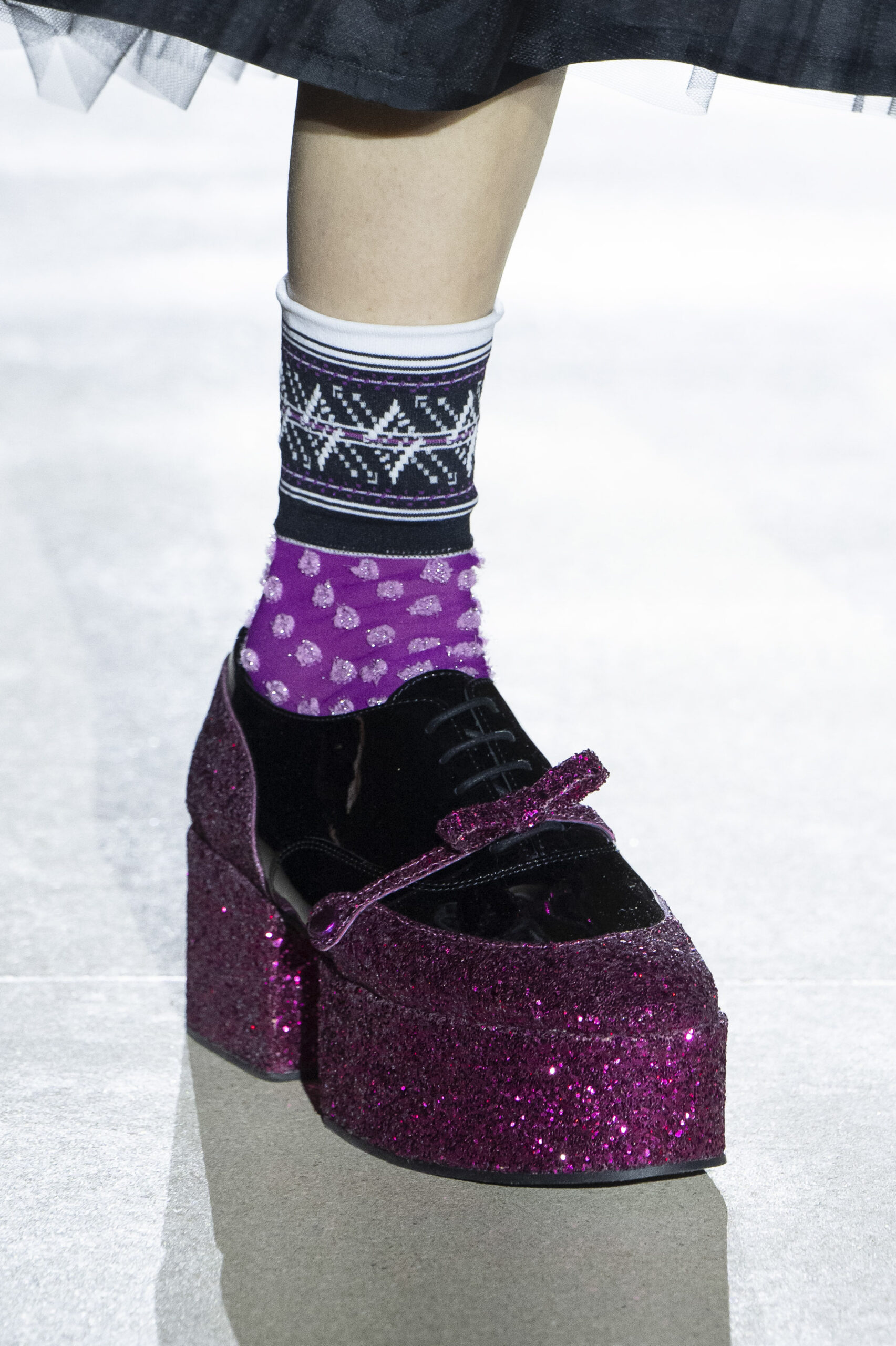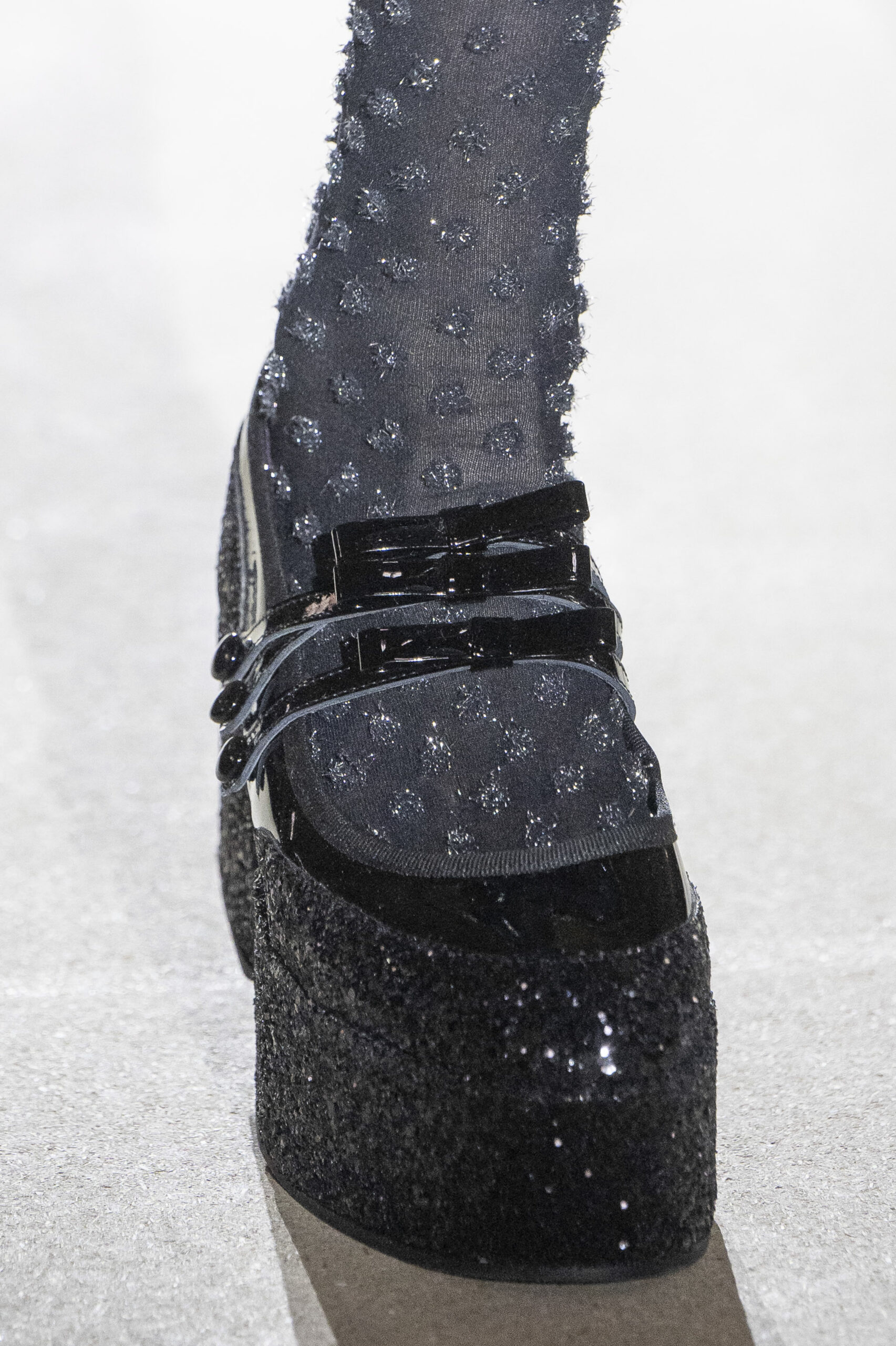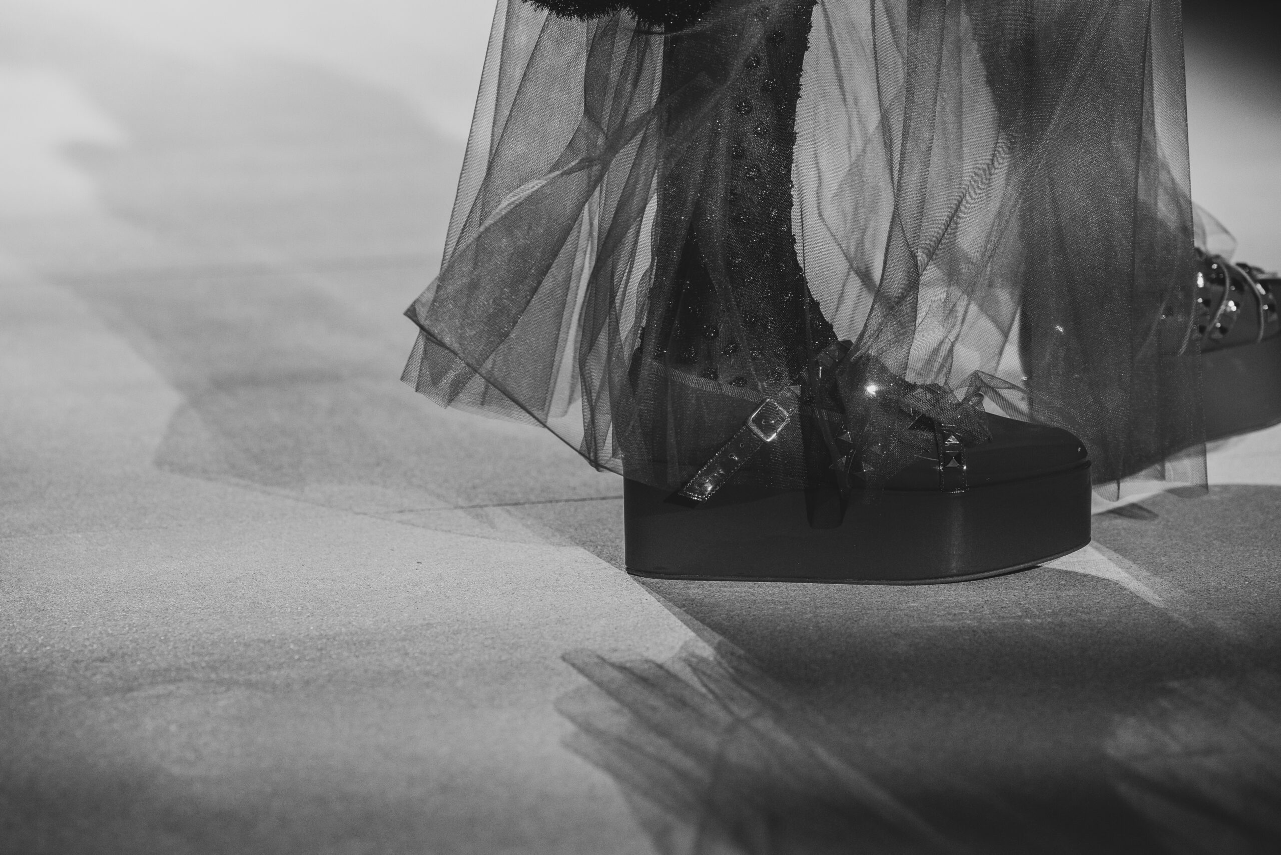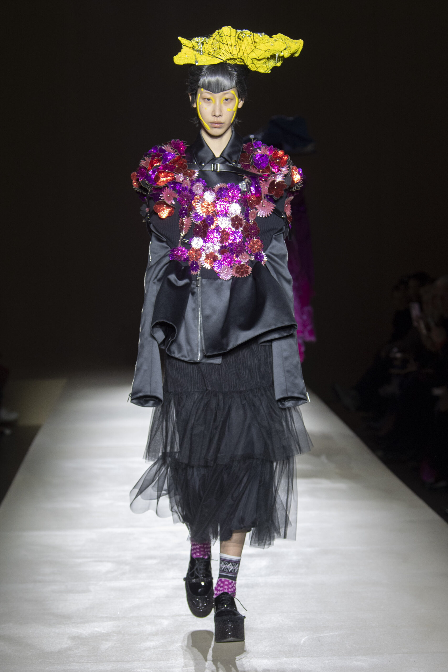 Pour la collection AH 23/24, Noir Kei Ninomiya nous emmène dans une nouvelle dimension baptisée Noir in Bloom. Pour cette collection, une collaboration avec la Maison Repetto voit le jour. Une déclinaison de 4 modèles a été présentée lors du show de ce week-end.