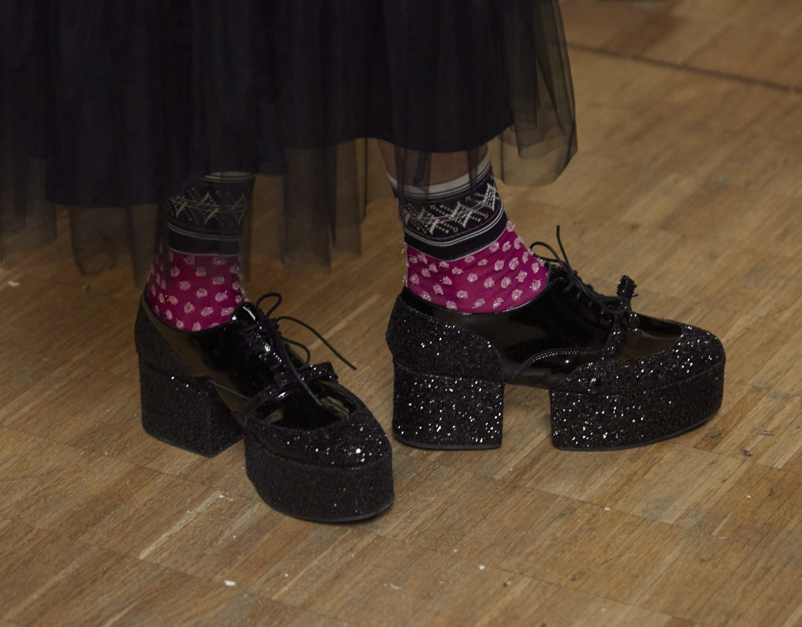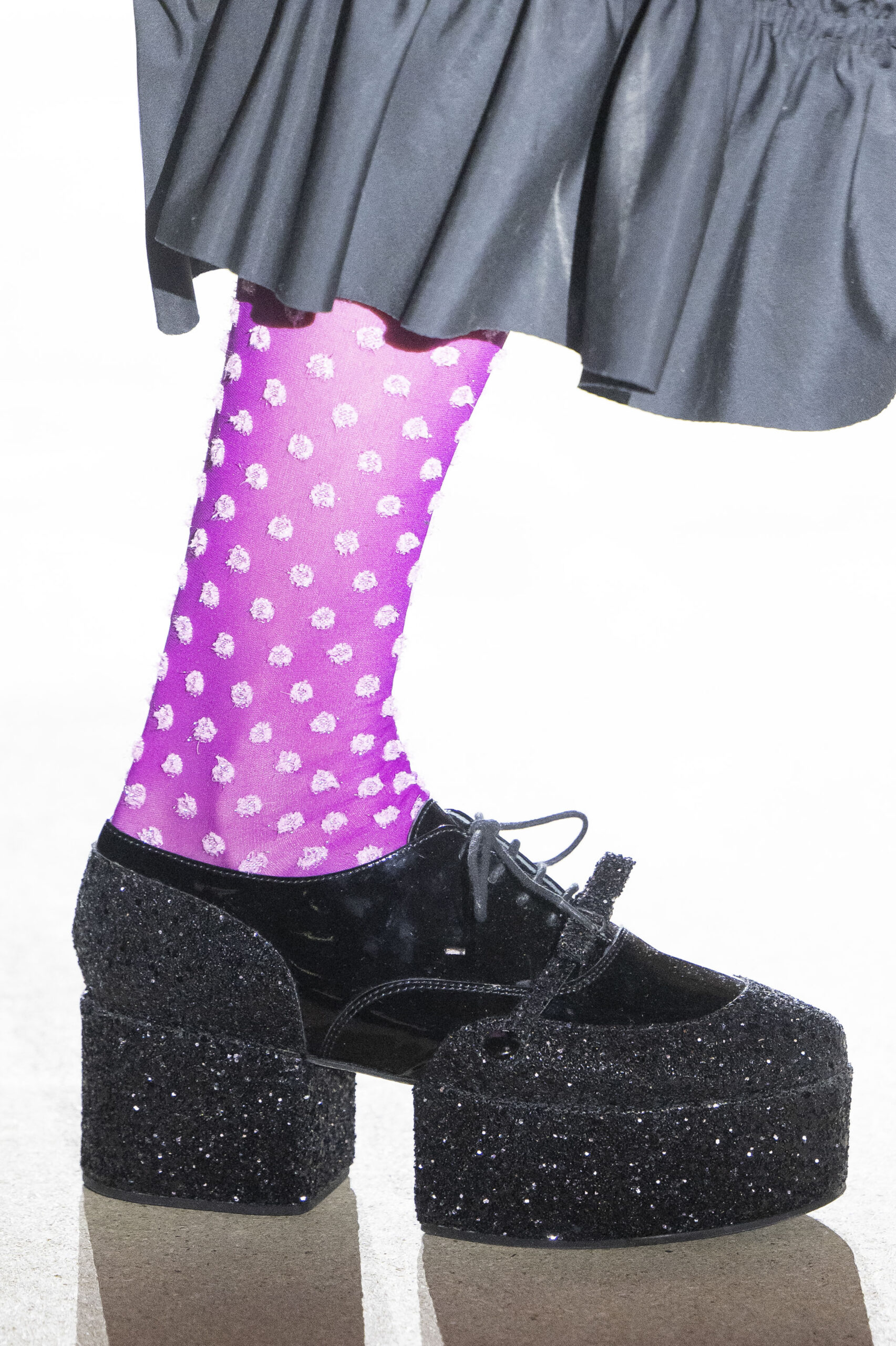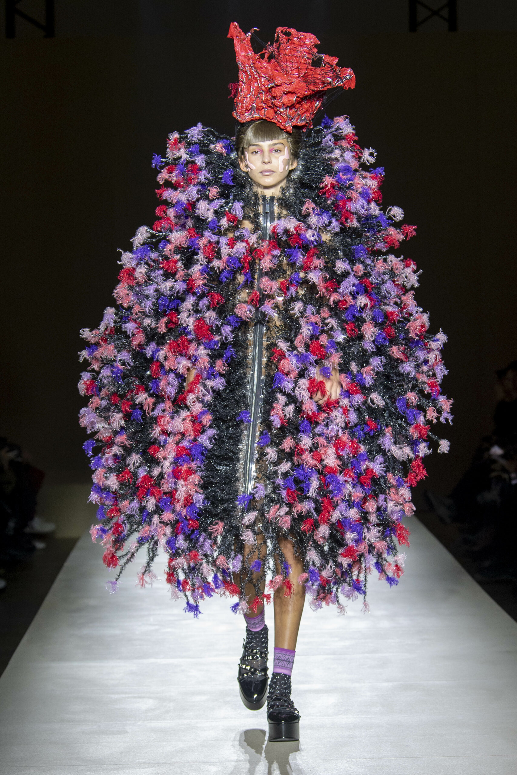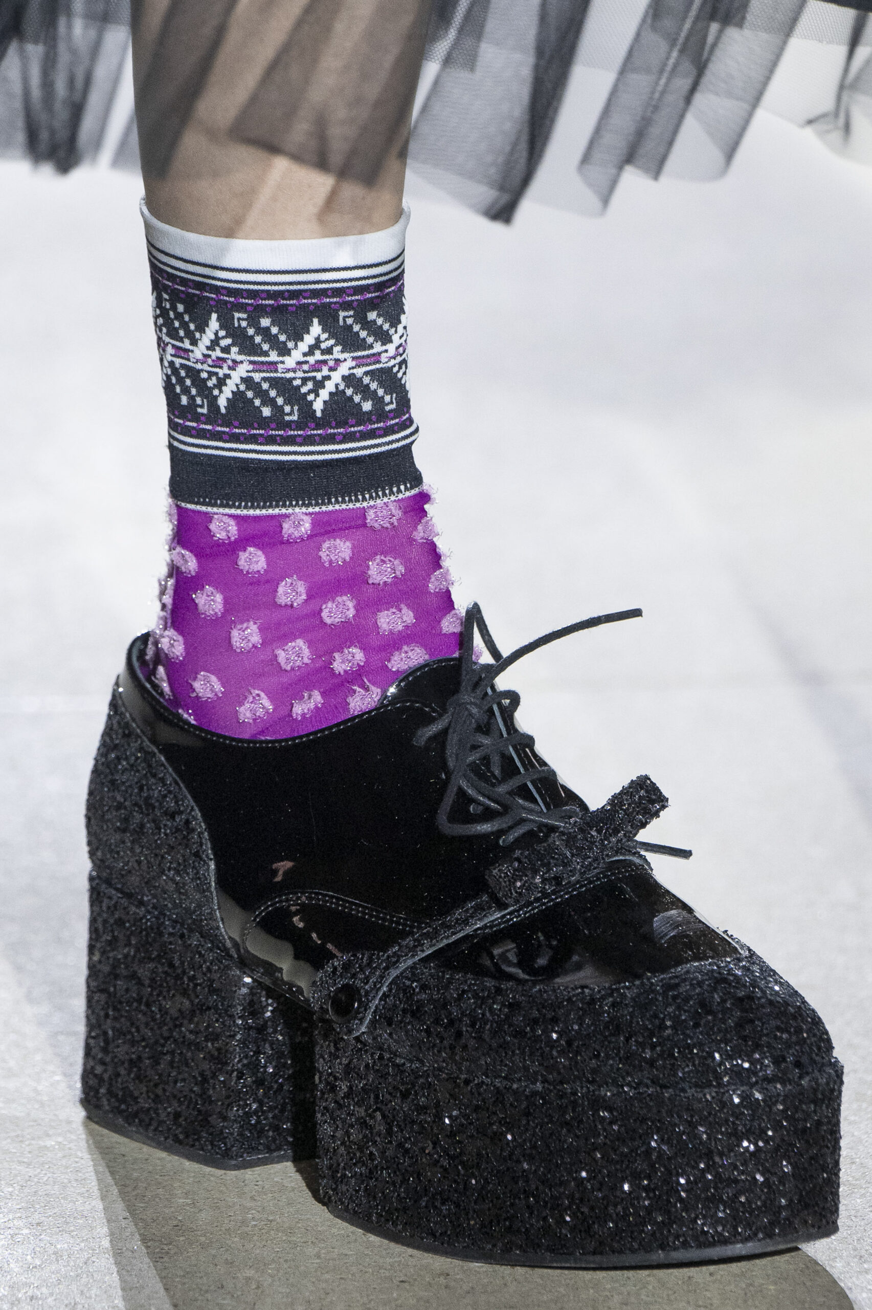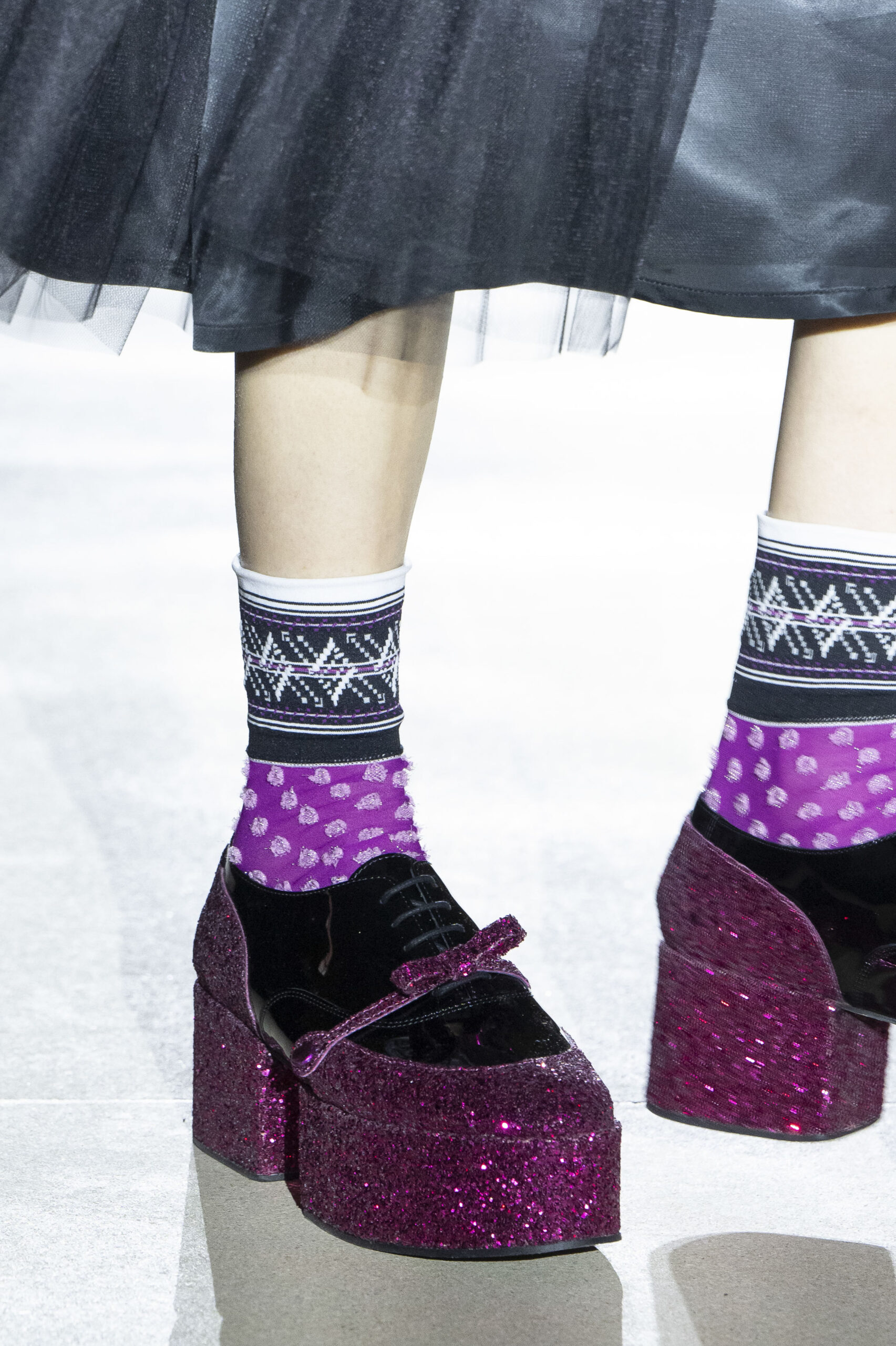 Pour la collection AH 23/24, Noir Kei Ninomiya nous emmène dans une nouvelle dimension baptisée Noir in Bloom. Pour cette collection, une collaboration avec la Maison Repetto voit le jour. Une déclinaison de 4 modèles a été présentée lors du show de ce week-end.
