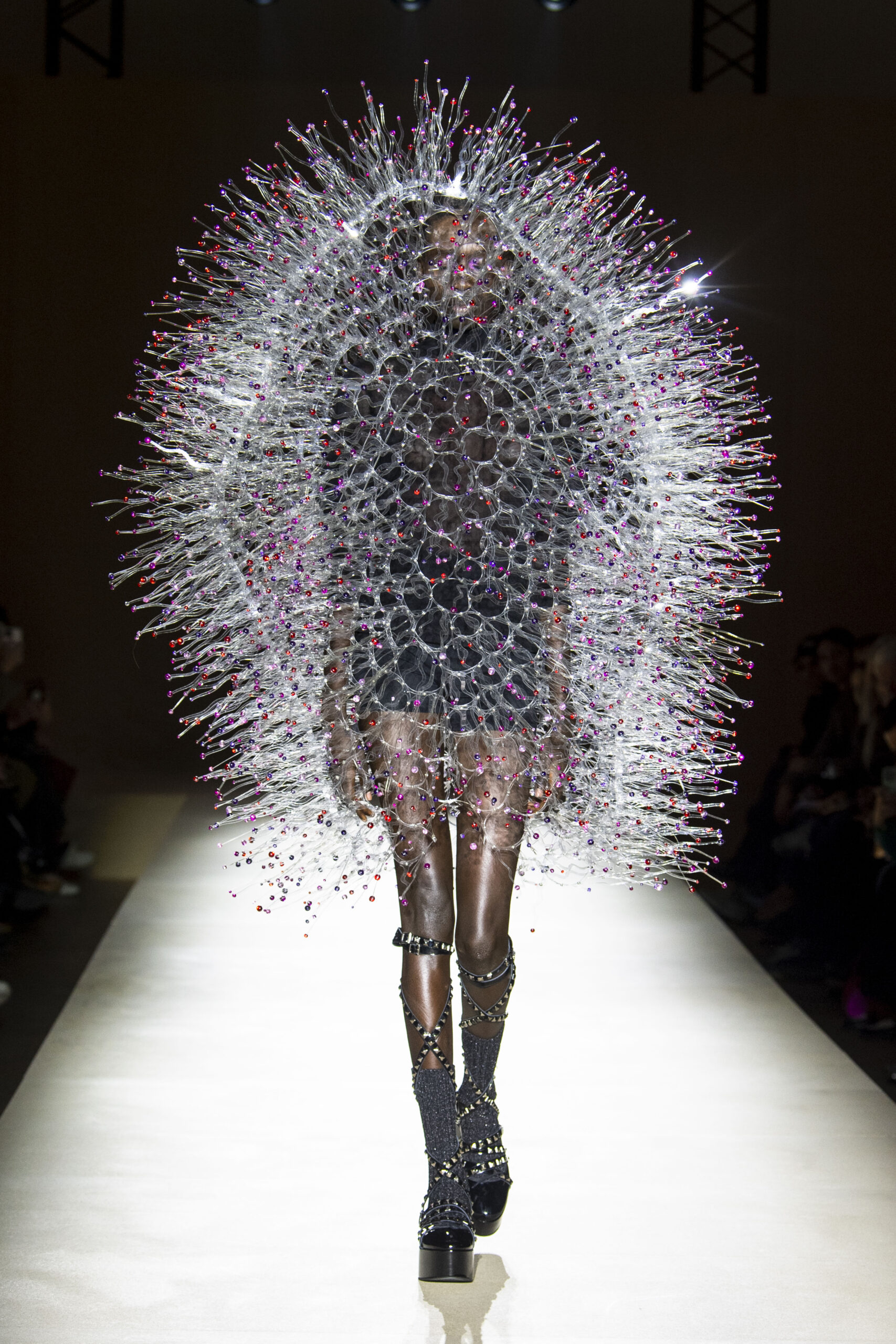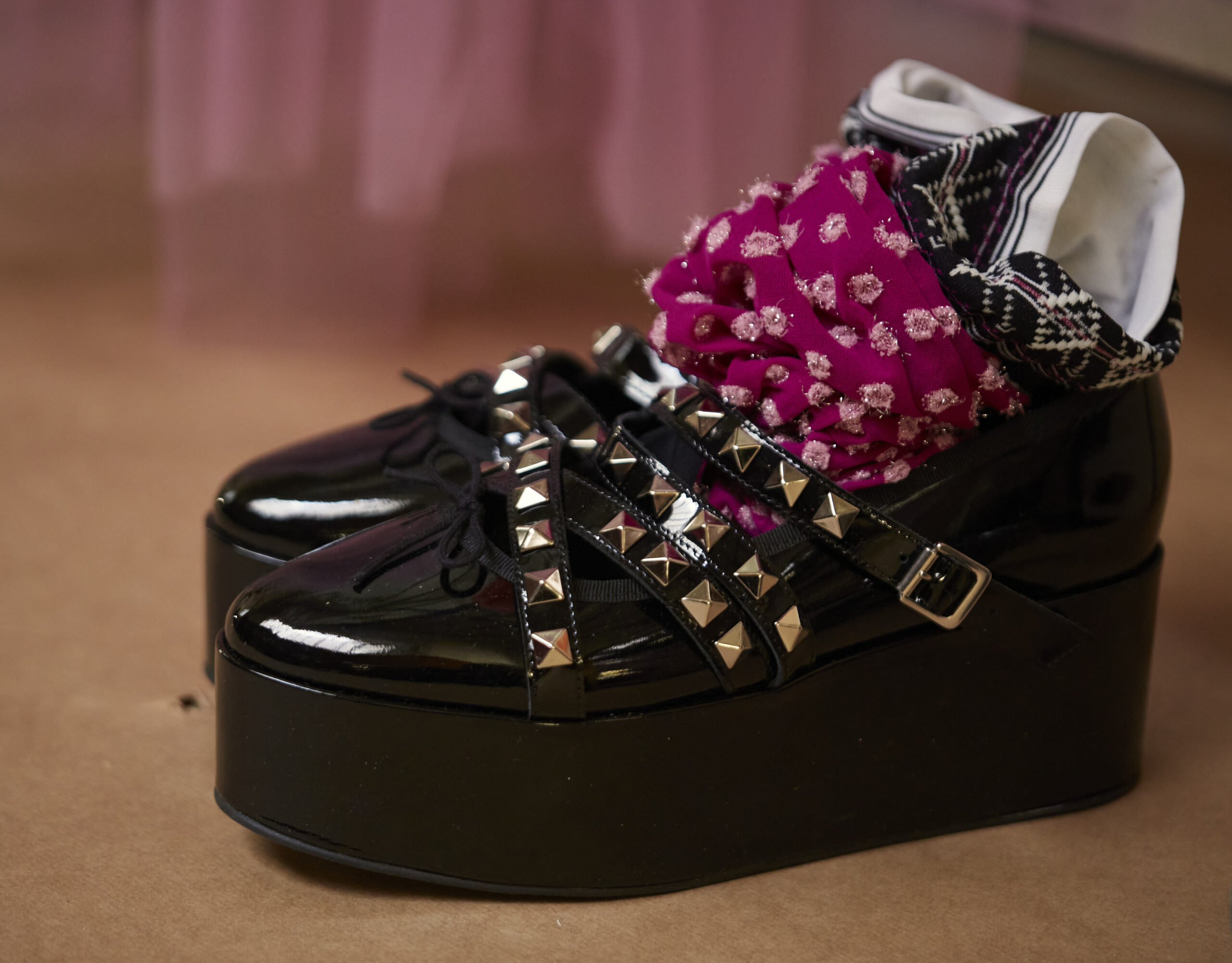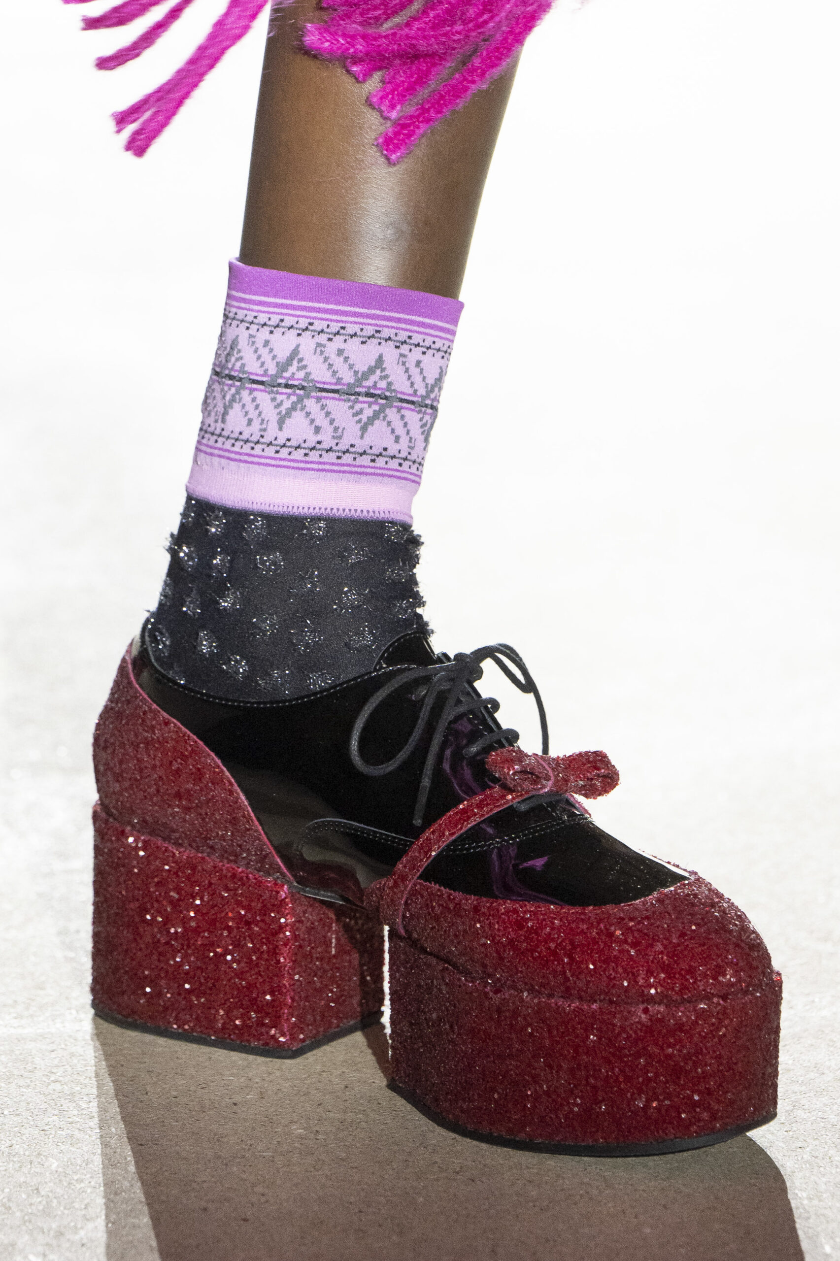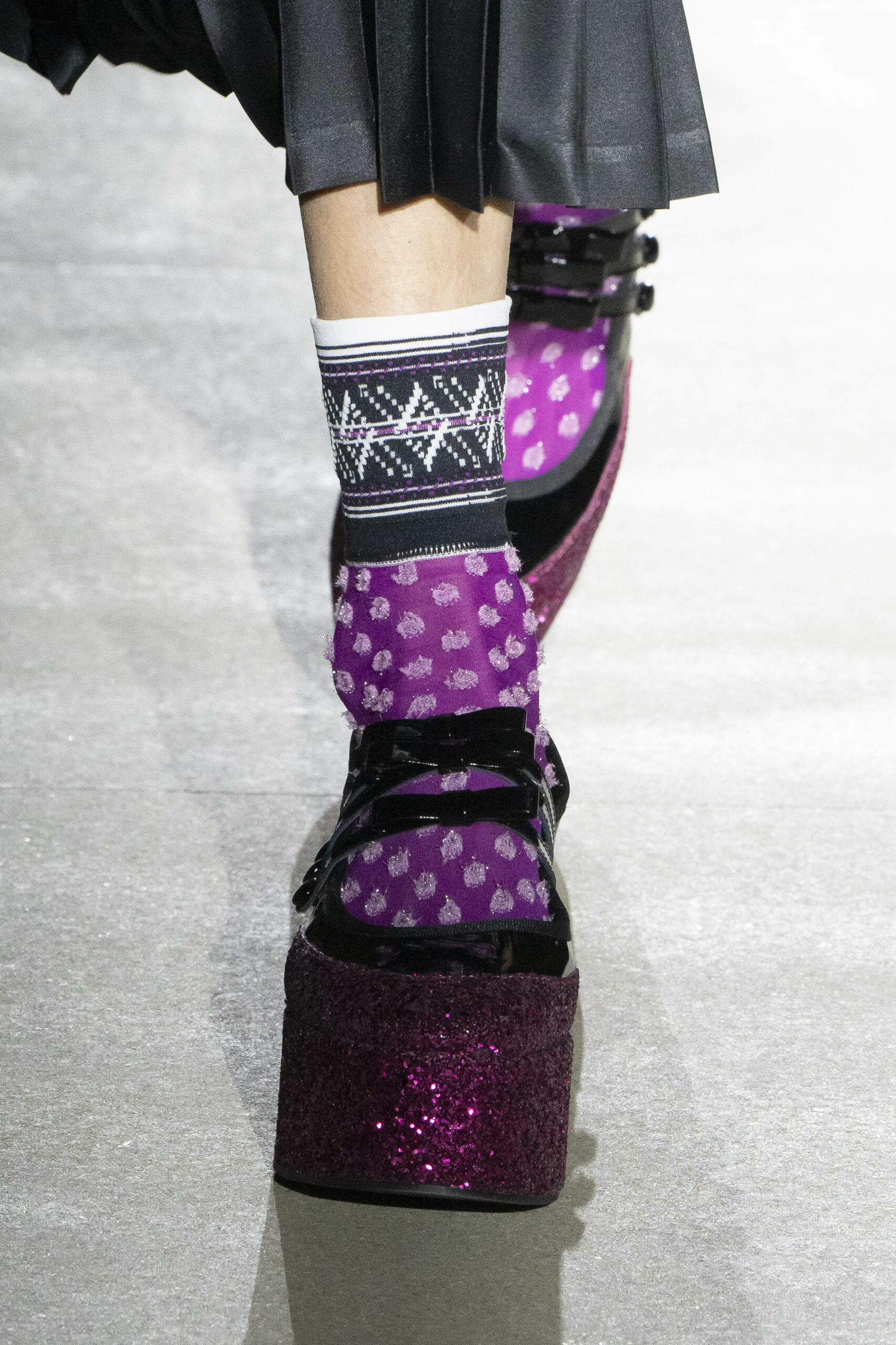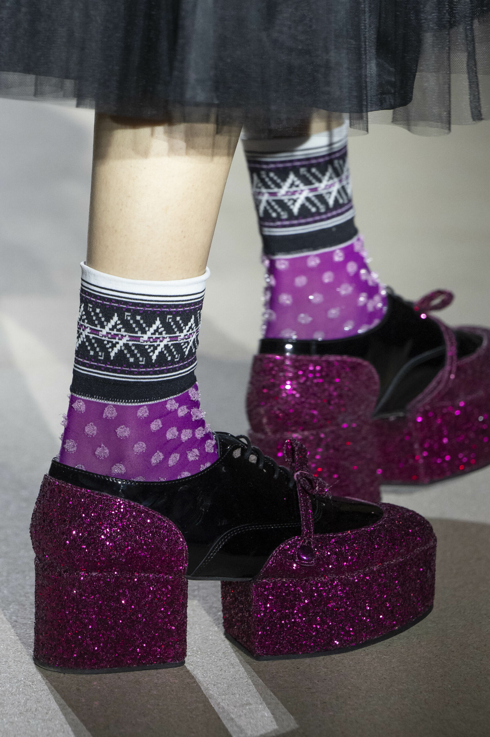Pour la collection AH 23/24, Noir Kei Ninomiya nous emmène dans une nouvelle dimension baptisée Noir in Bloom. Pour cette collection, une collaboration avec la Maison Repetto voit le jour. Une déclinaison de 4 modèles a été présentée lors du show de ce week-end.