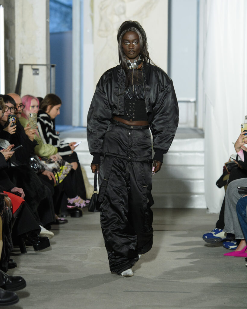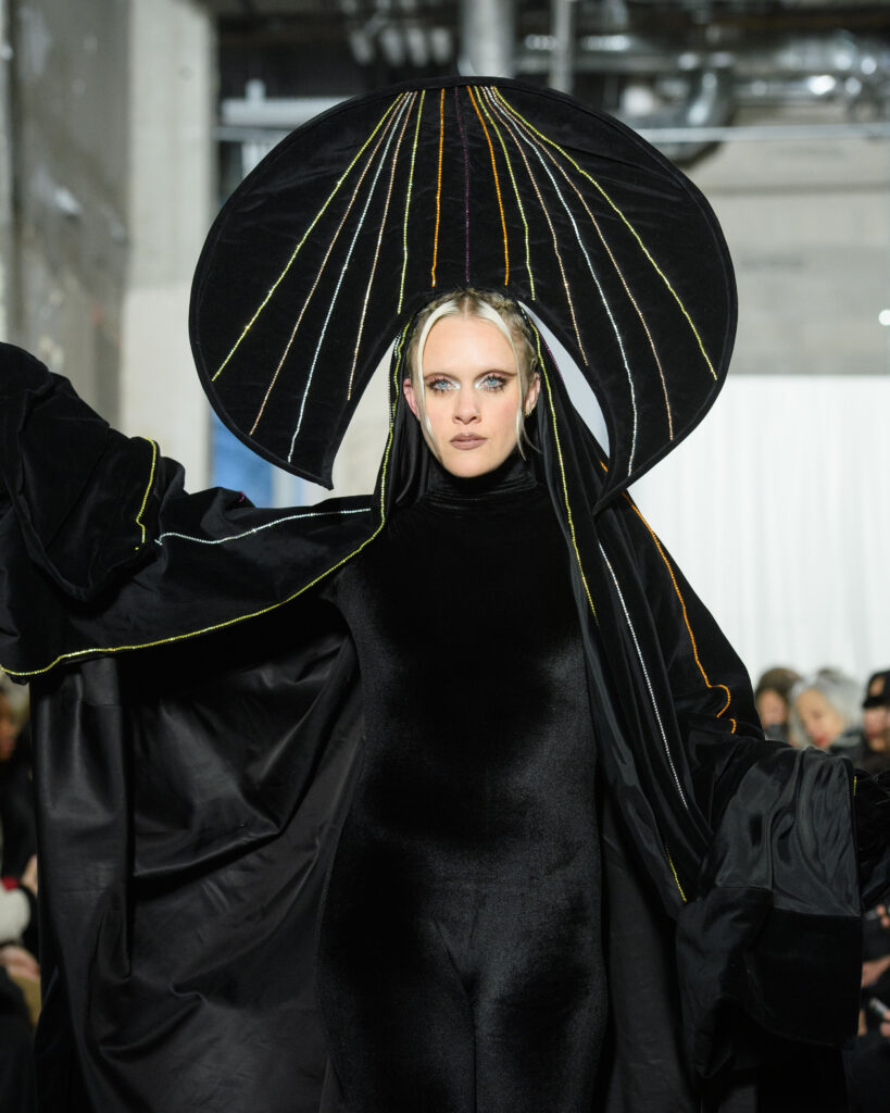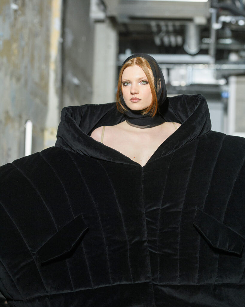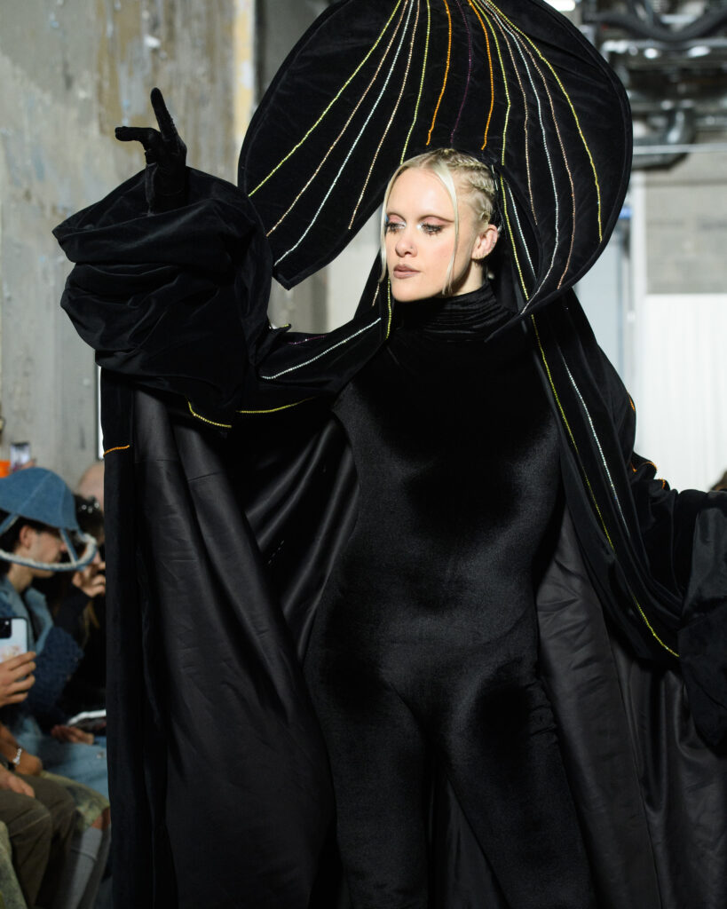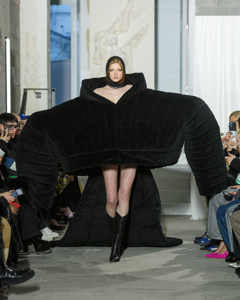 La collection Weinsanto pour l’automne-hiver présente une gamme de vêtements allant des classiques de jour et des vêtements de travail aux extravagances de couture d’évasion. L’approche sans limites de la collection voit des silhouettes moulantes, à la Samantha, aux styles surdimensionnés Badgal RiRi.