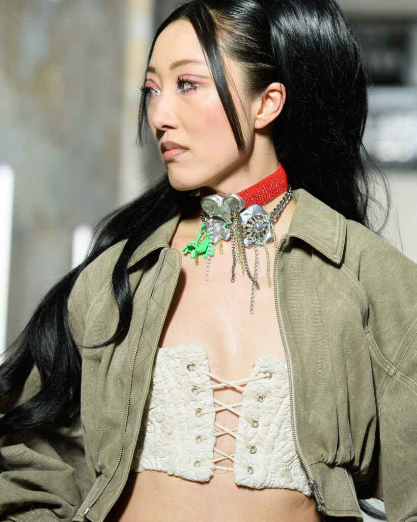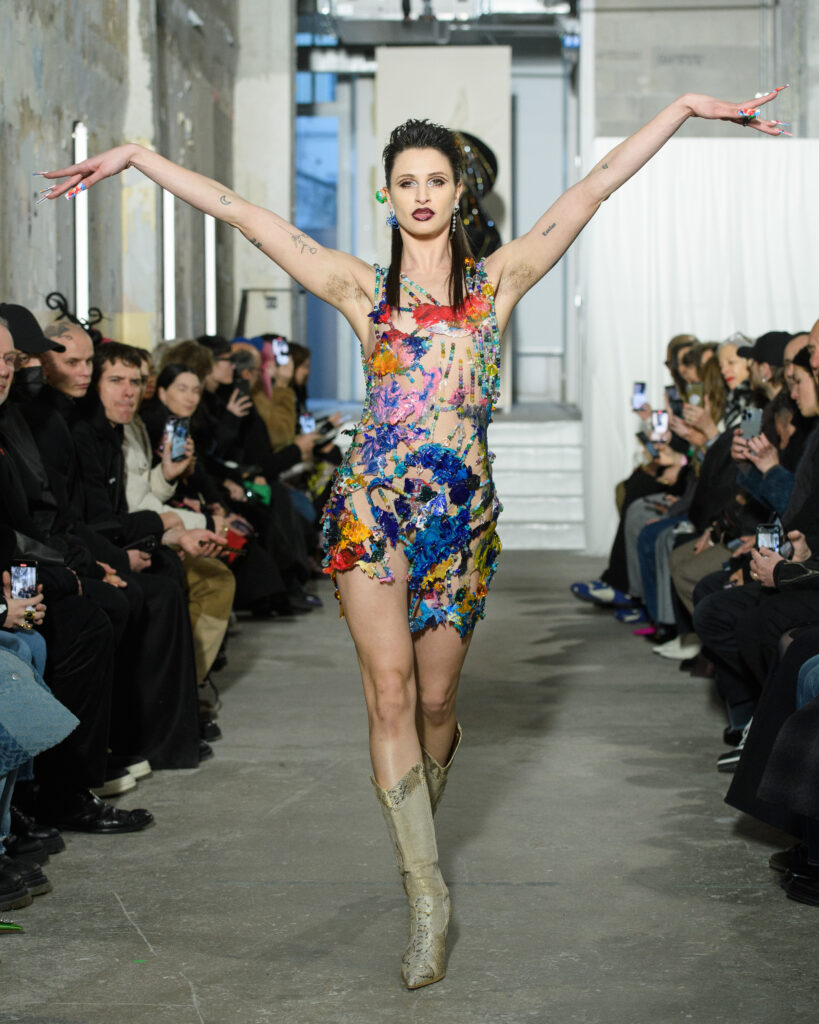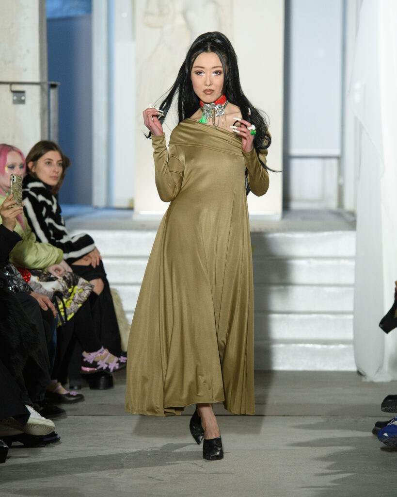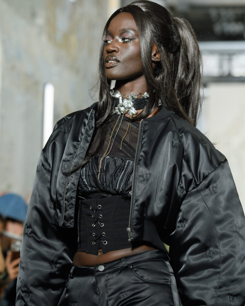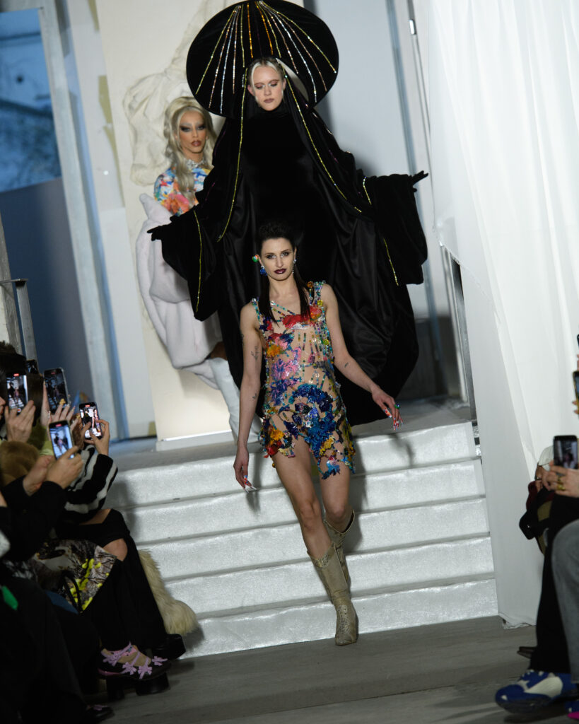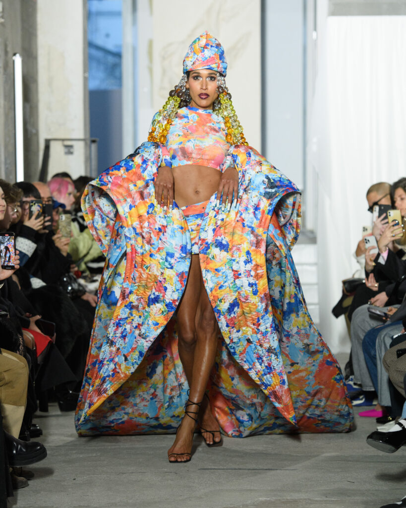 La collection Weinsanto pour l’automne-hiver présente une gamme de vêtements allant des classiques de jour et des vêtements de travail aux extravagances de couture d’évasion. L’approche sans limites de la collection voit des silhouettes moulantes, à la Samantha, aux styles surdimensionnés Badgal RiRi.