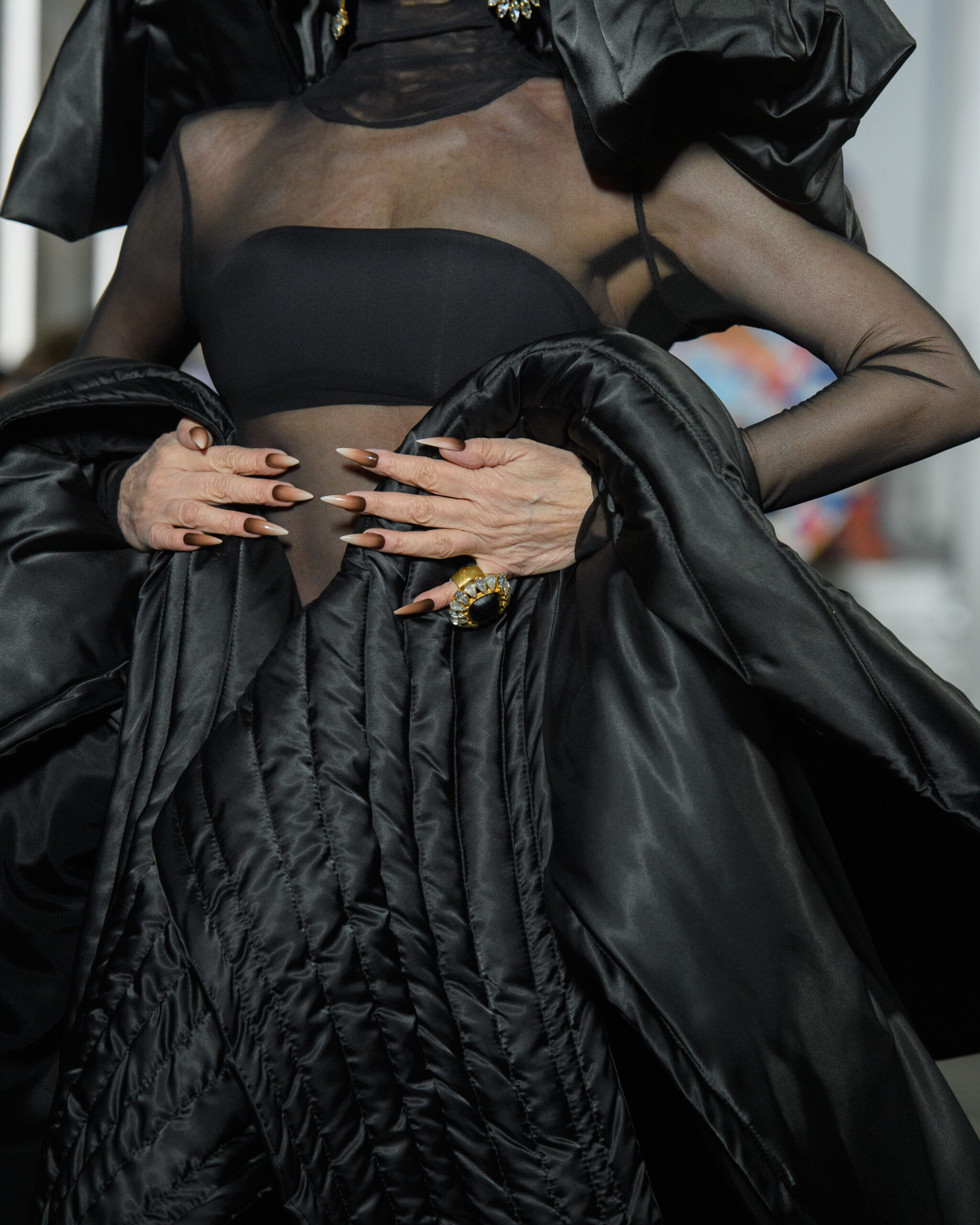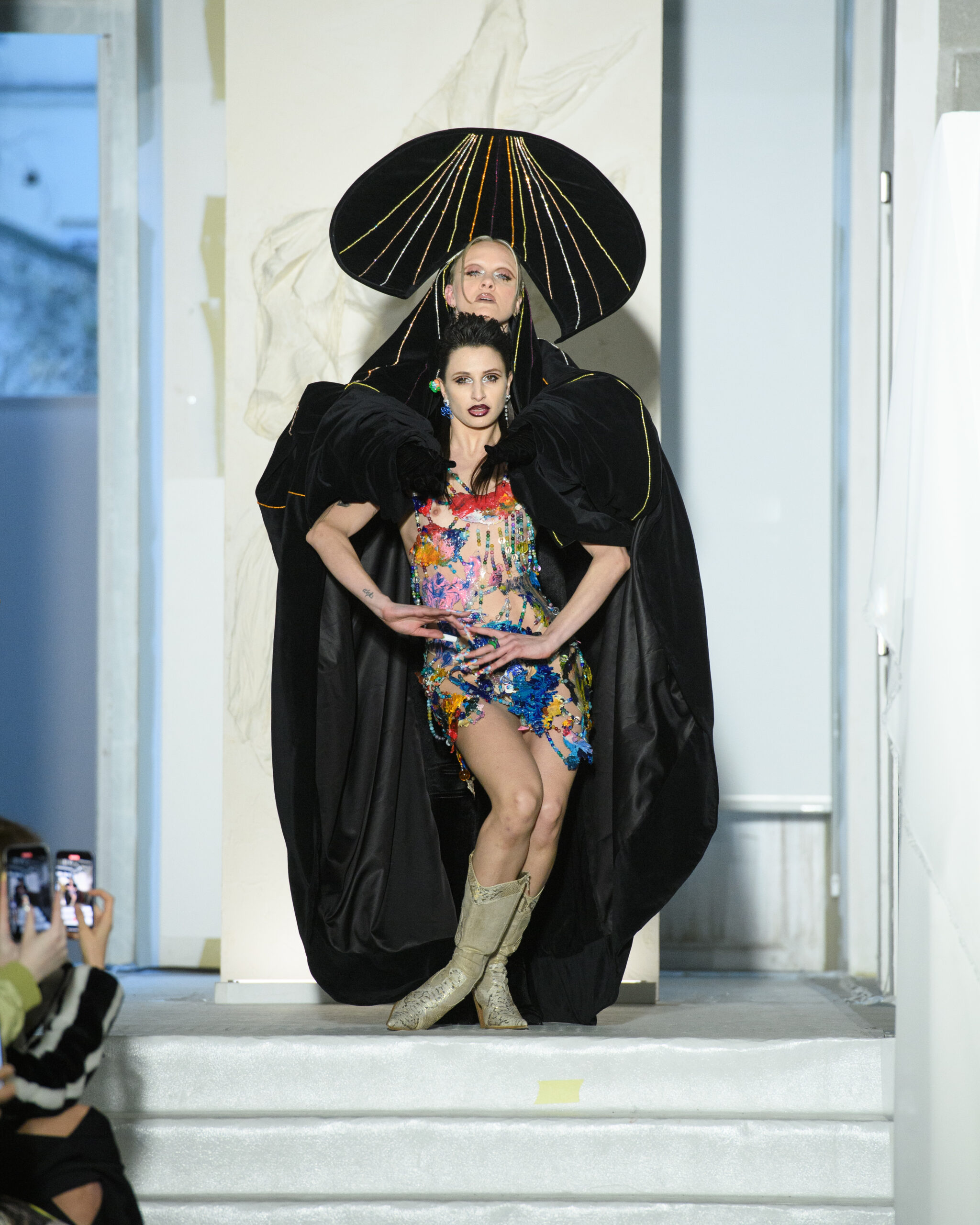 Weinsanto crée également des accessoires qui ajoutent une touche de sophistication et de glamour à la collection. Les chapeaux, conçus avec les compétences de la haute couture, ajoutent une touche de drame, ainsi qu’une collection de bijoux digne d’un collectionneur de magpies.