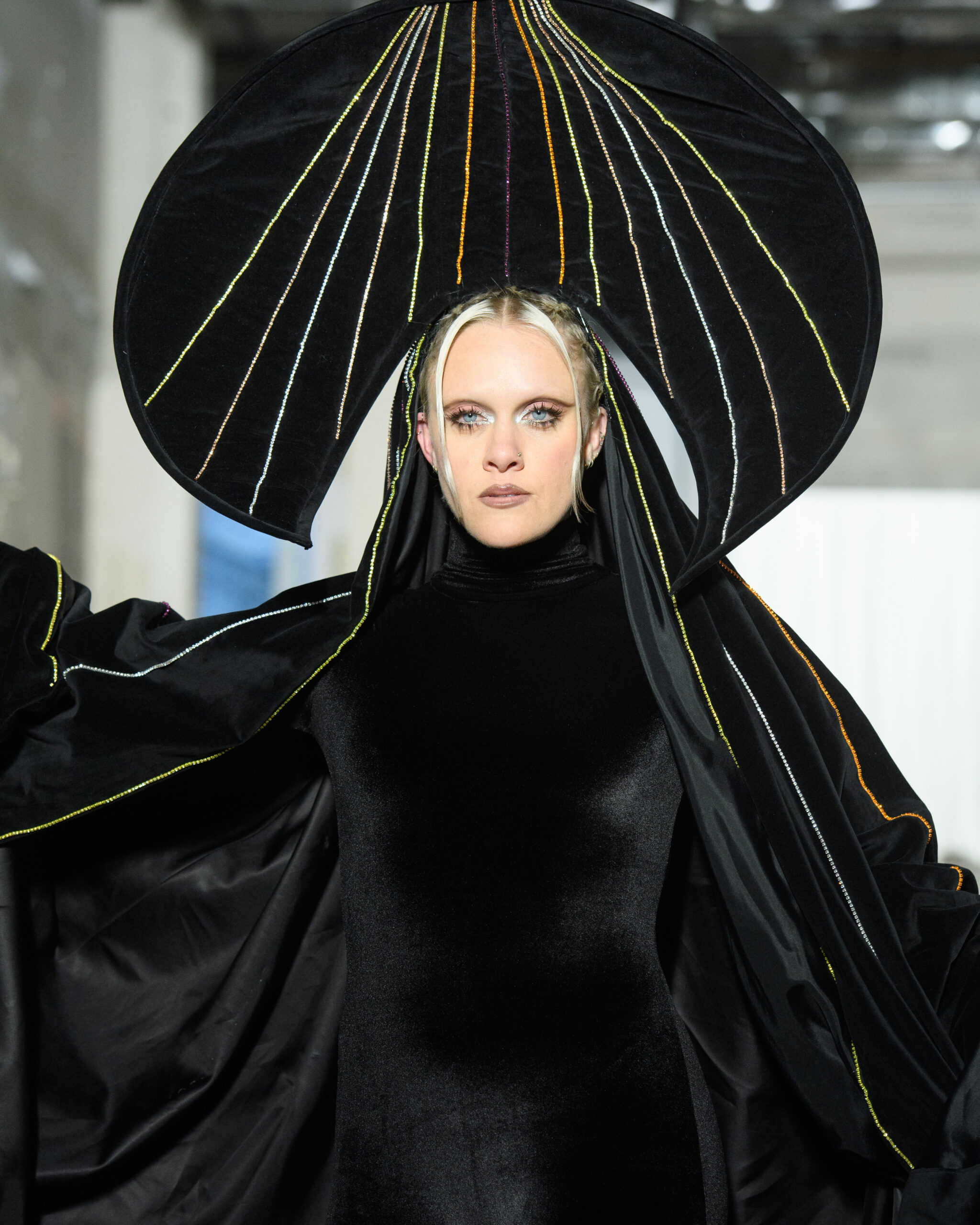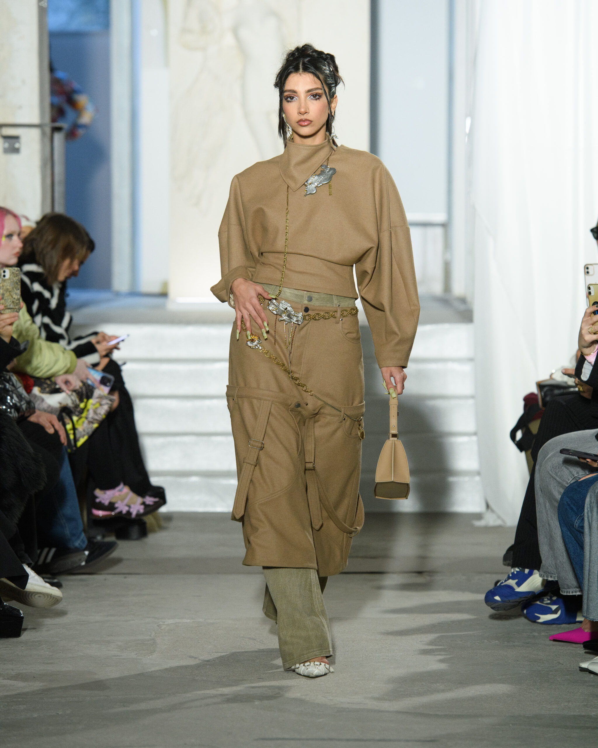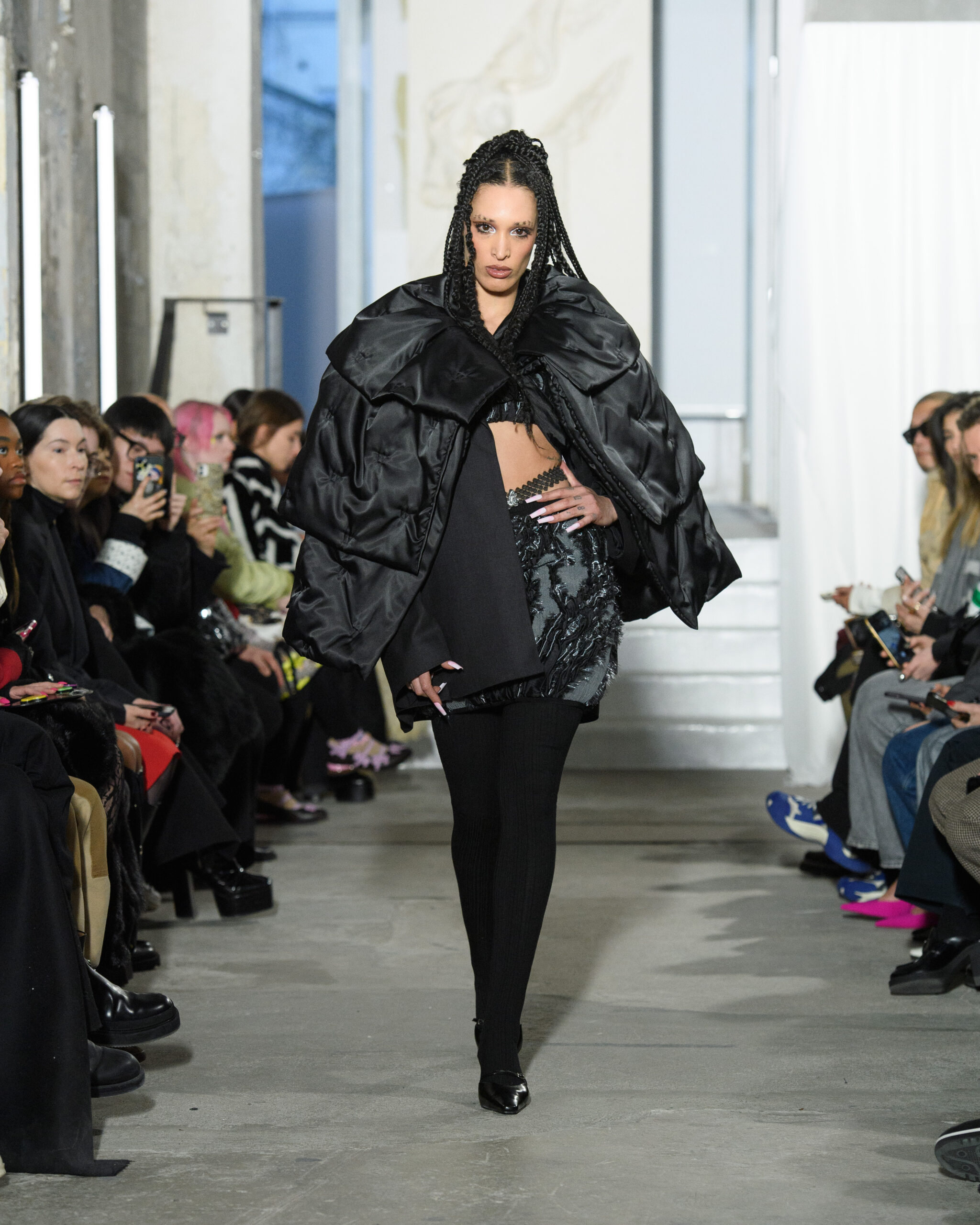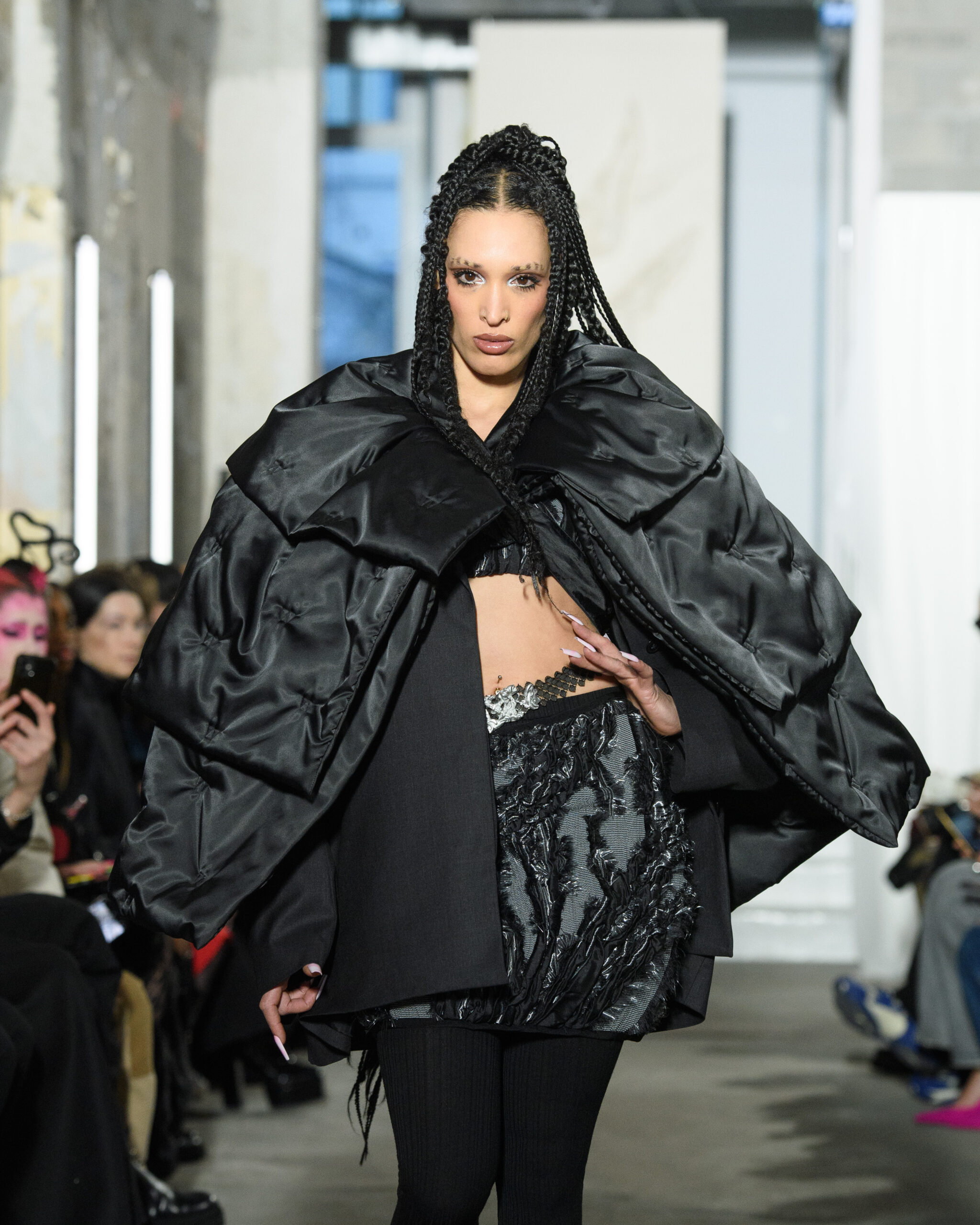 La collection Weinsanto pour l’automne-hiver présente une gamme de vêtements allant des classiques de jour et des vêtements de travail aux extravagances de couture d’évasion. L’approche sans limites de la collection voit des silhouettes moulantes, à la Samantha, aux styles surdimensionnés Badgal RiRi.