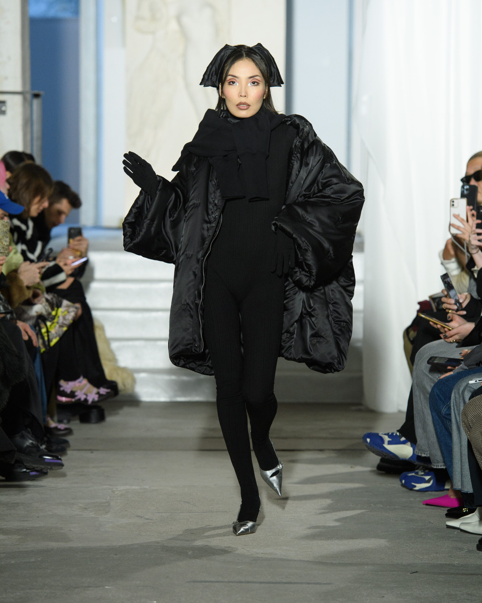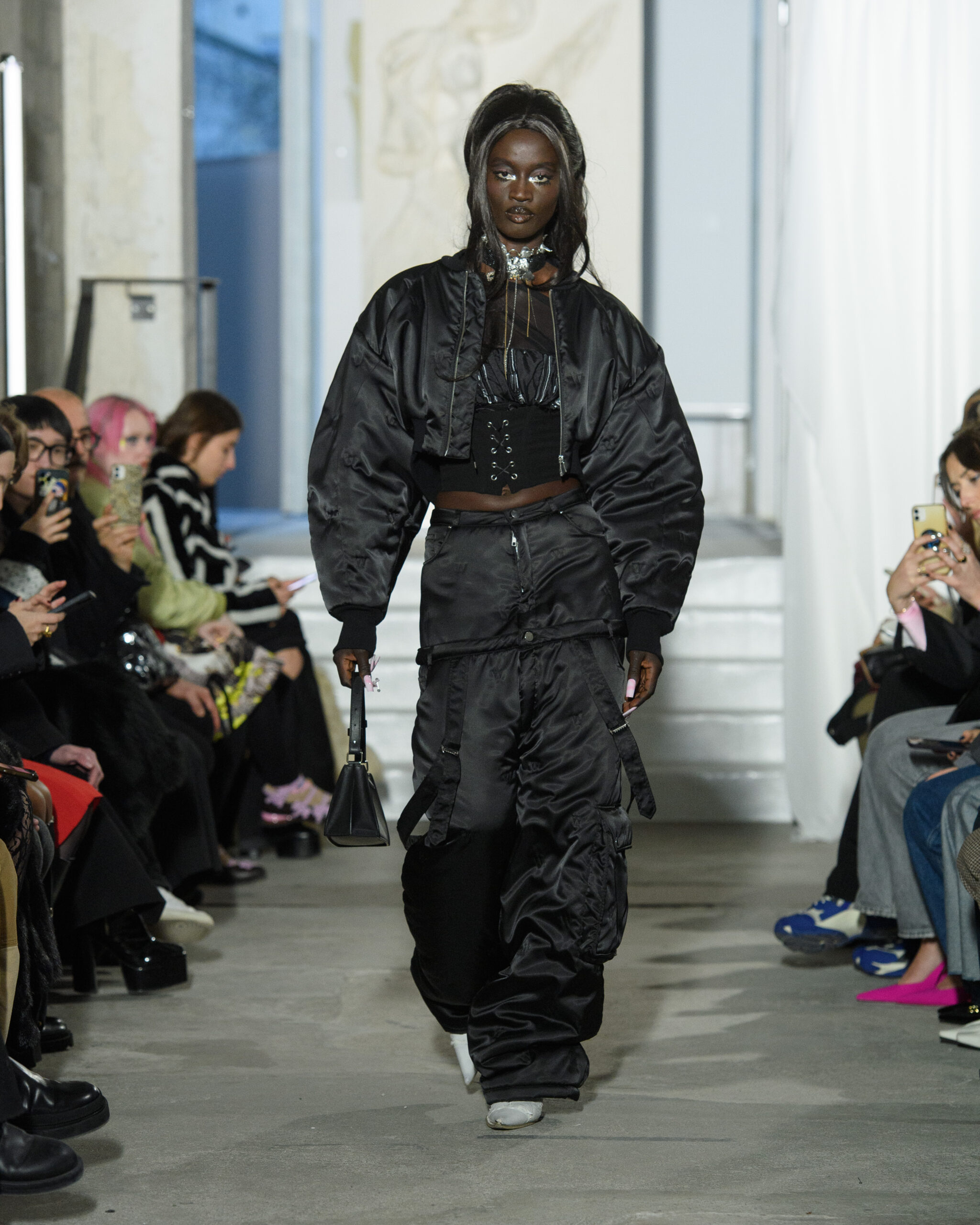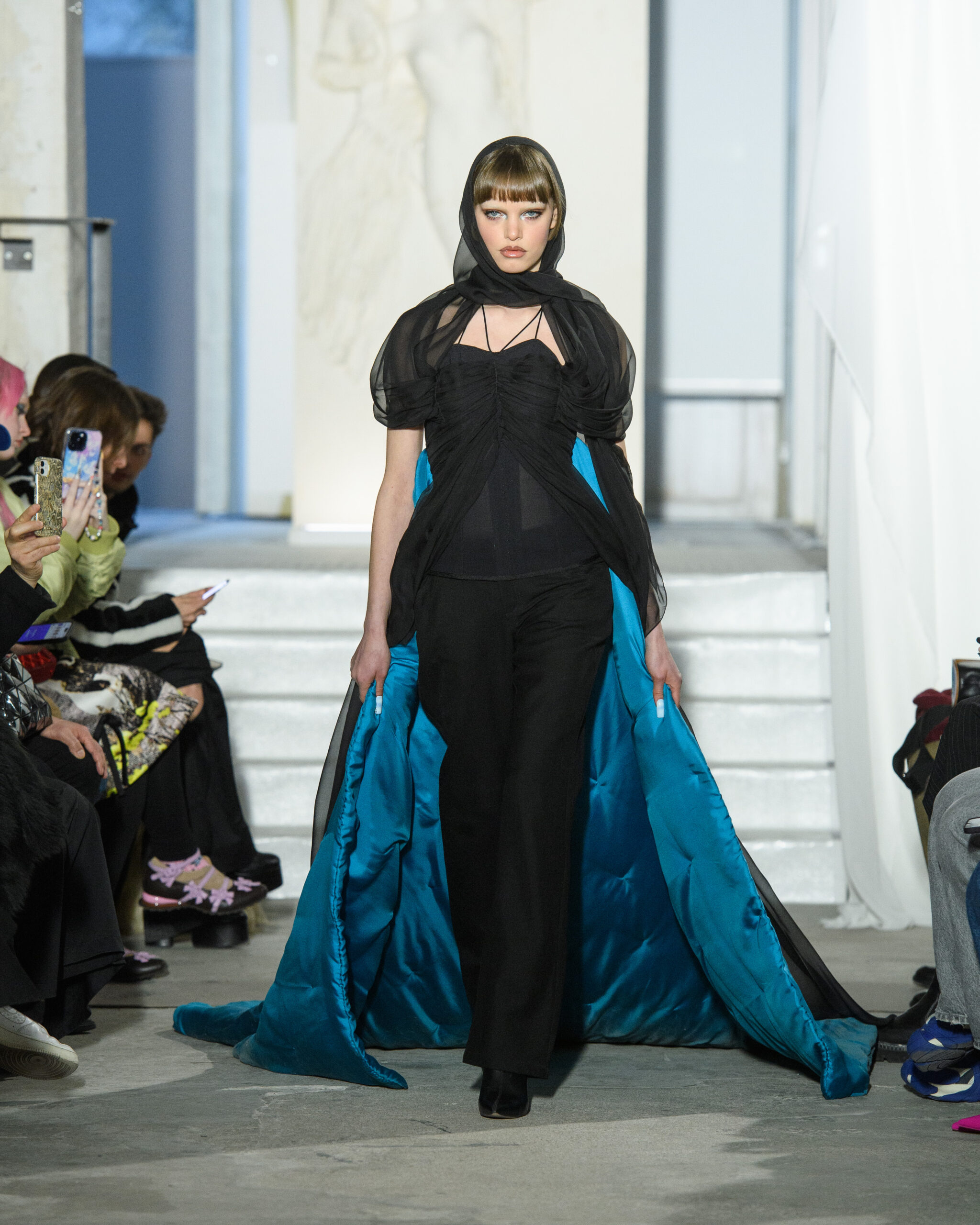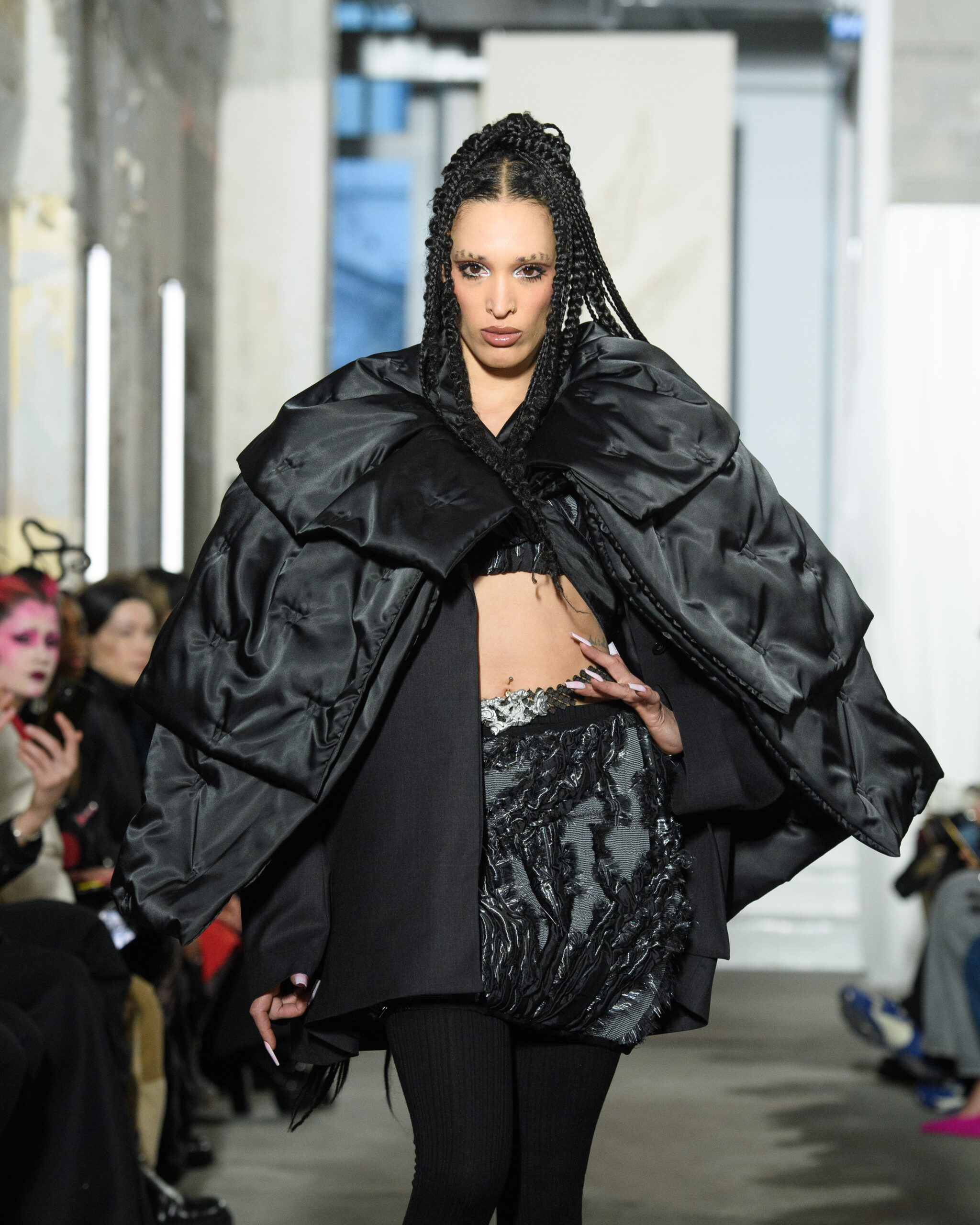 La collection Weinsanto pour l’automne-hiver présente une gamme de vêtements allant des classiques de jour et des vêtements de travail aux extravagances de couture d’évasion. L’approche sans limites de la collection voit des silhouettes moulantes, à la Samantha, aux styles surdimensionnés Badgal RiRi.