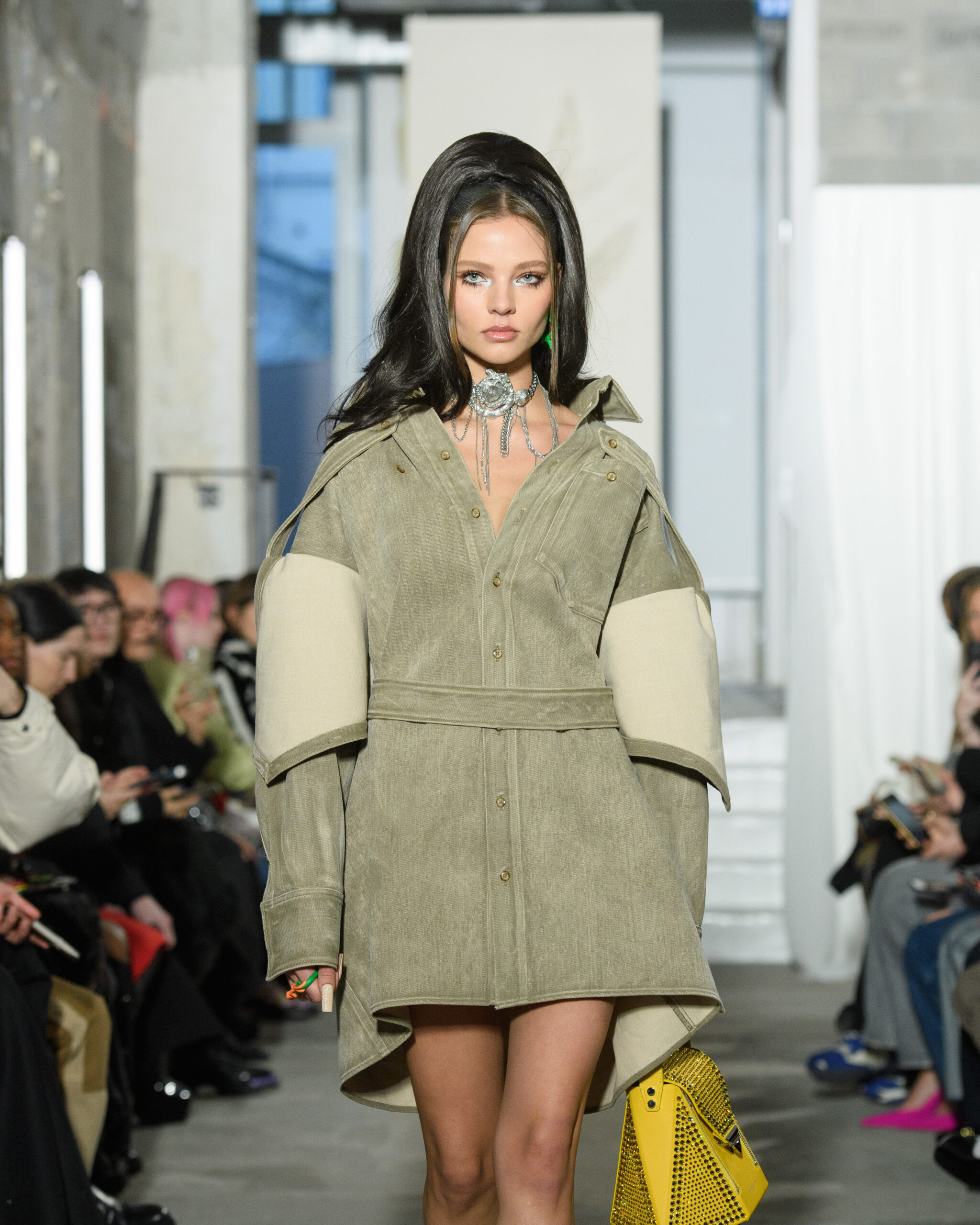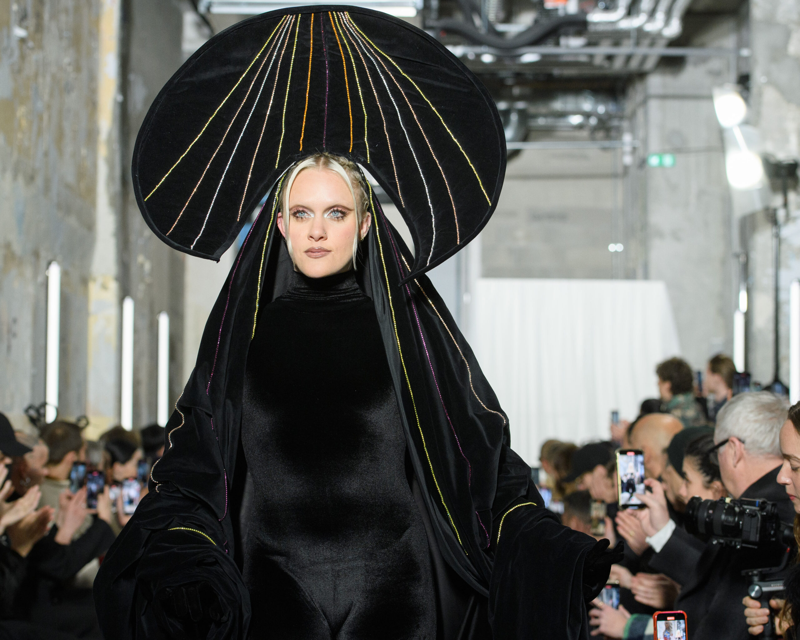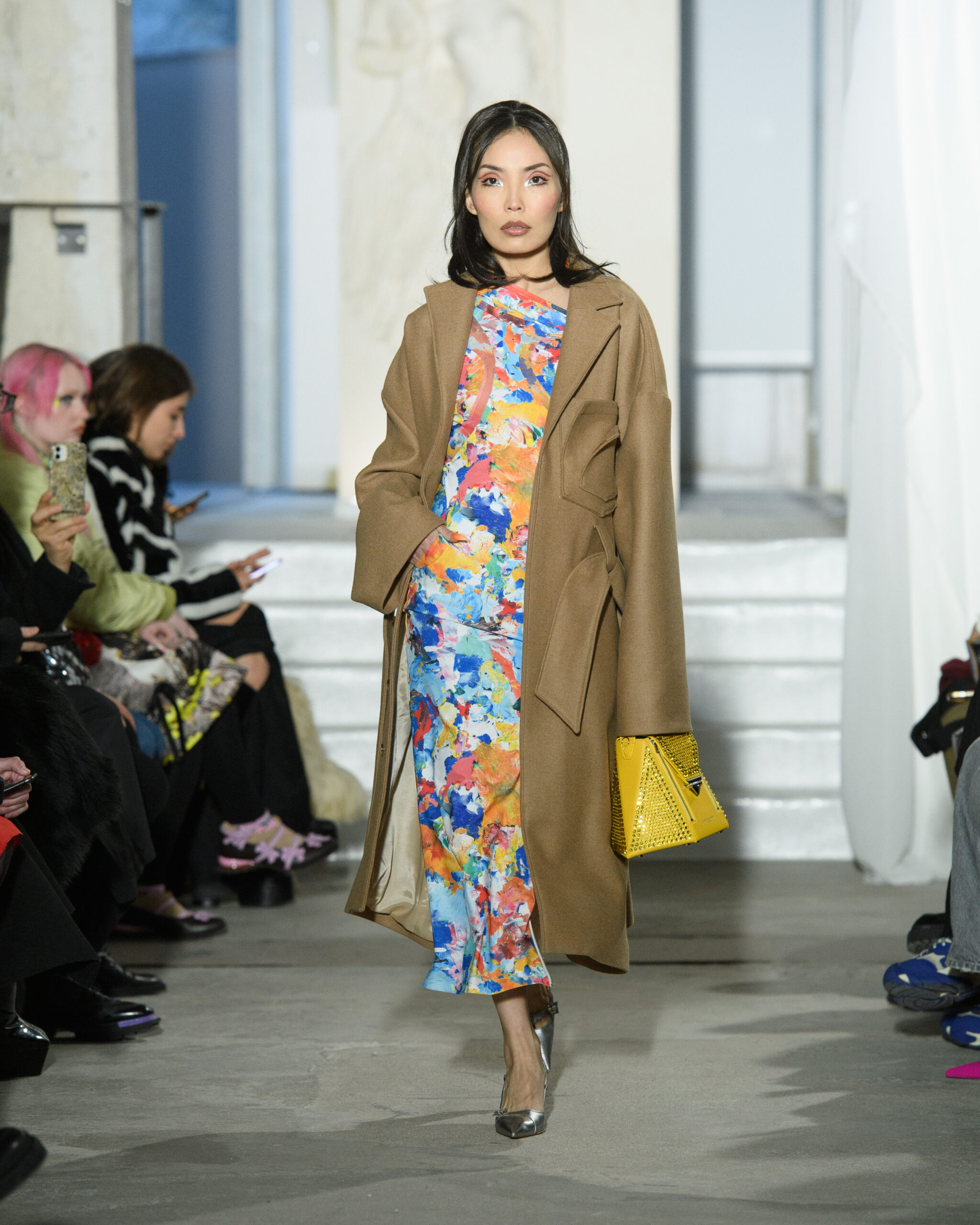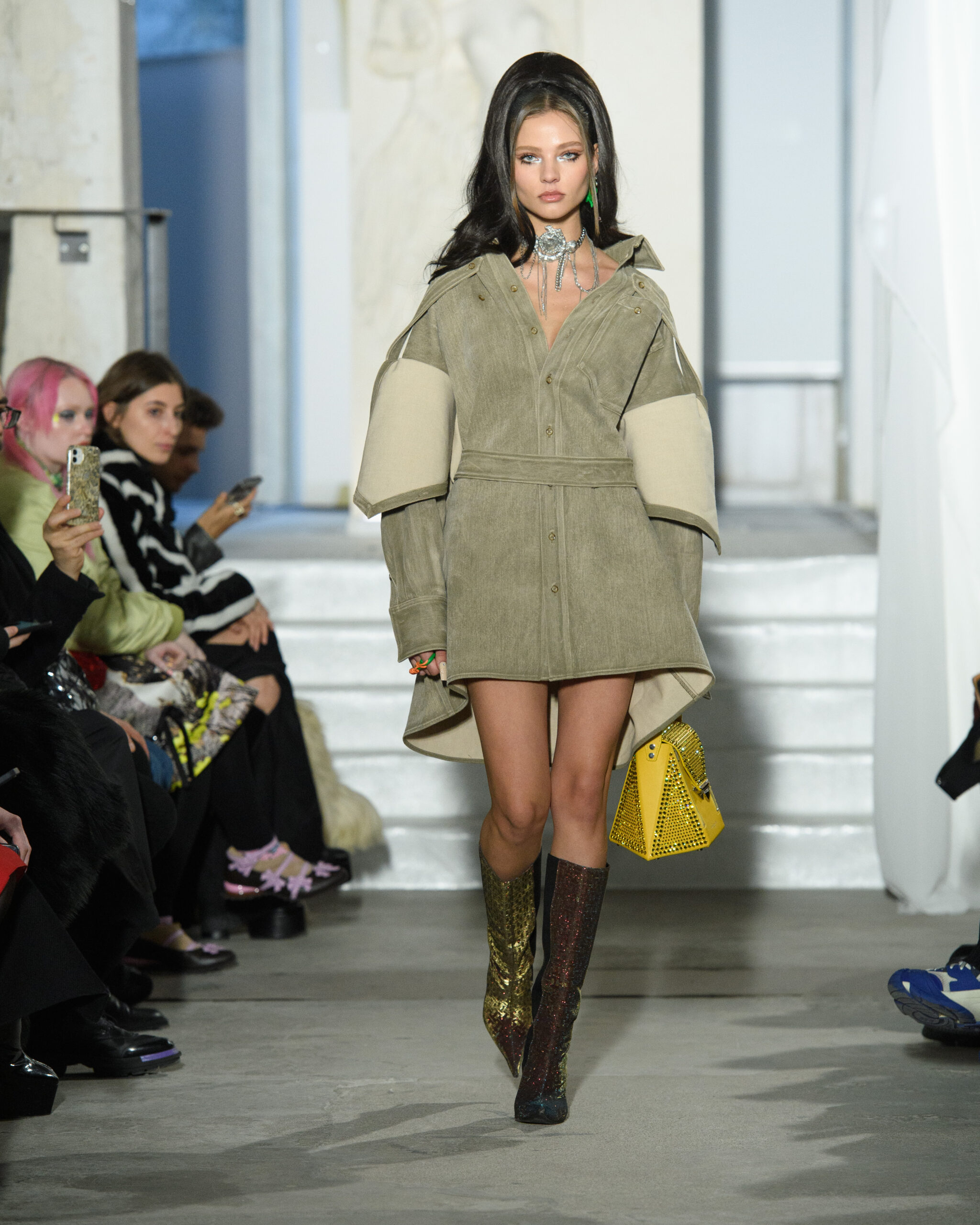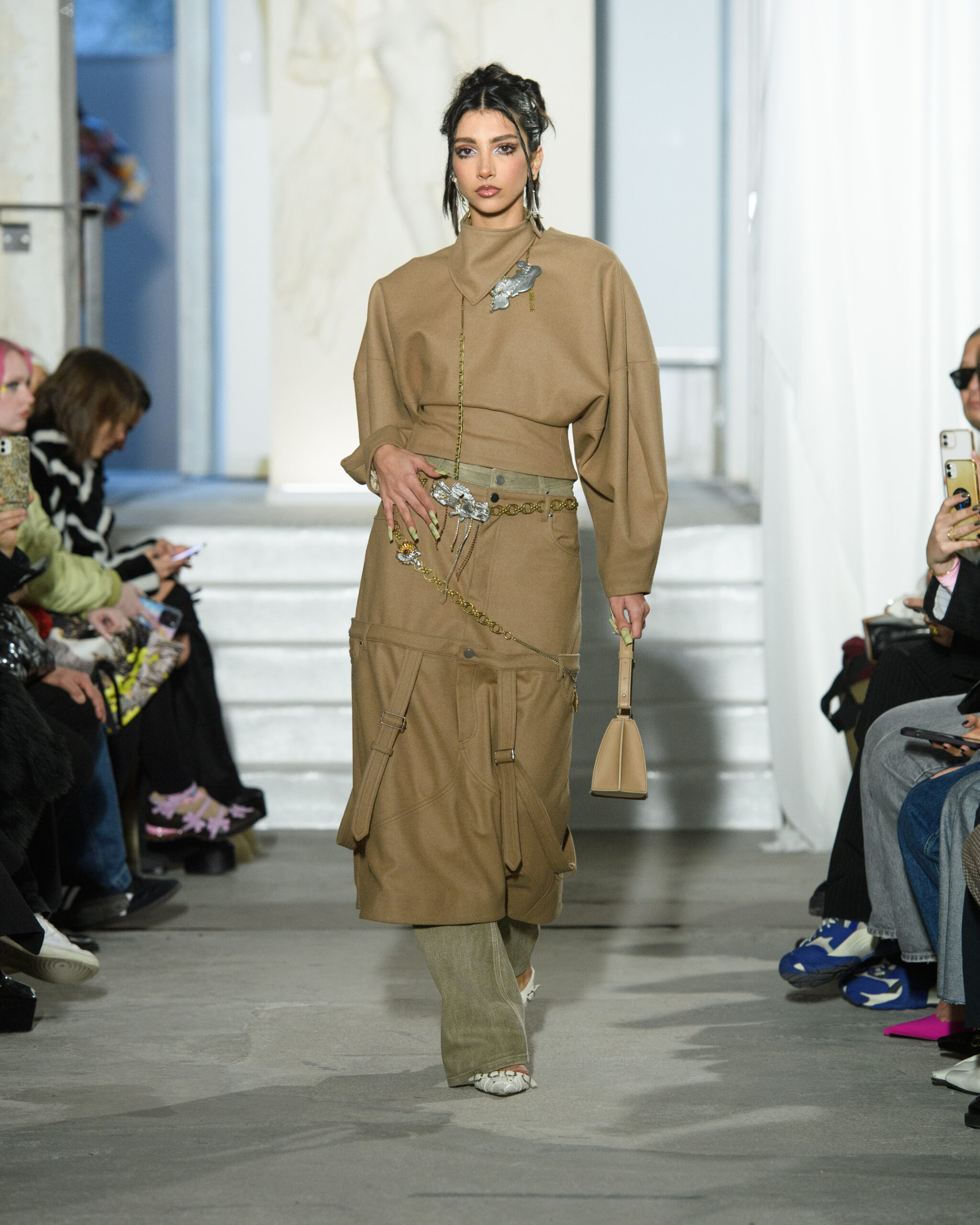 La collection Weinsanto pour l’automne-hiver présente une gamme de vêtements allant des classiques de jour et des vêtements de travail aux extravagances de couture d’évasion. L’approche sans limites de la collection voit des silhouettes moulantes, à la Samantha, aux styles surdimensionnés Badgal RiRi.