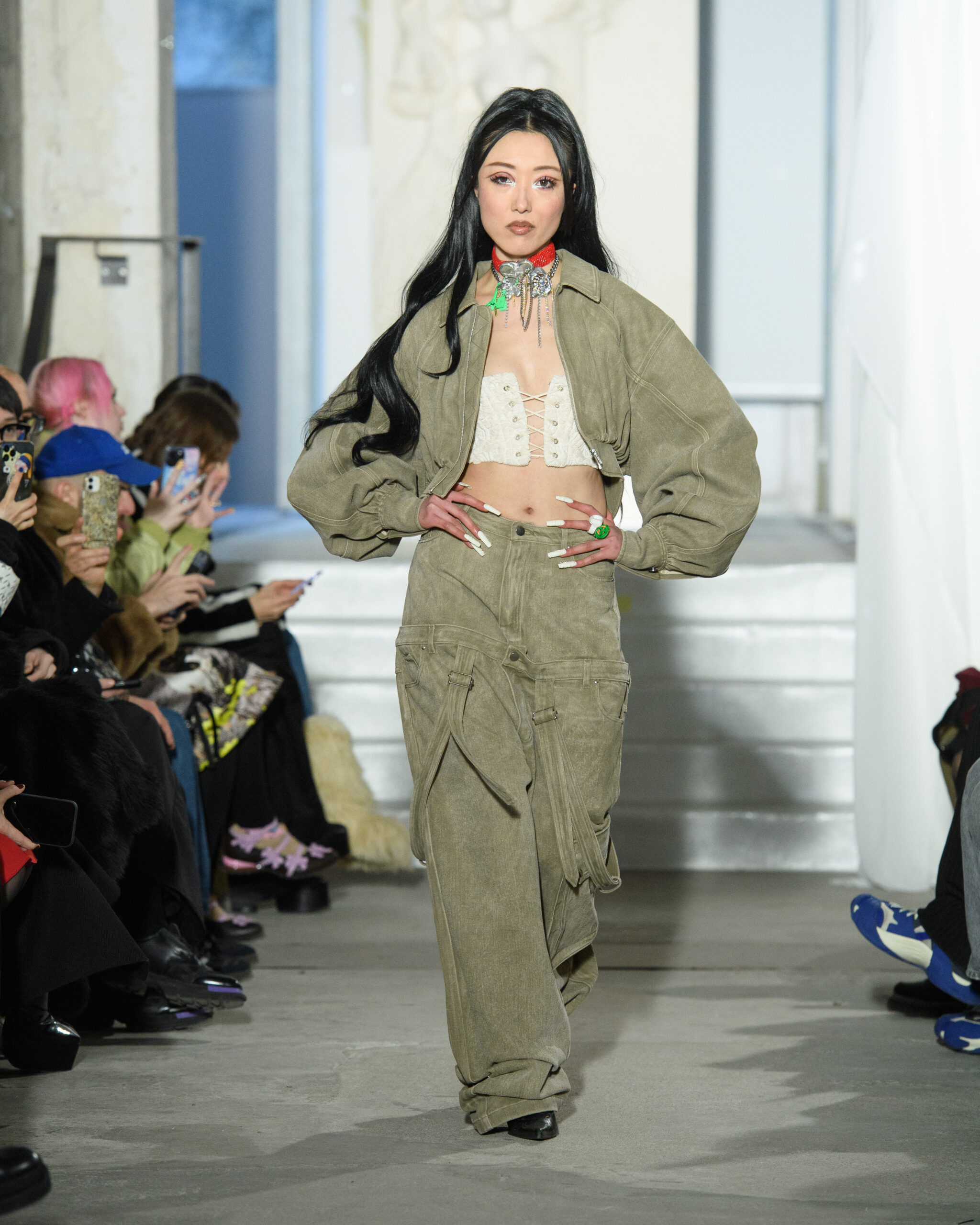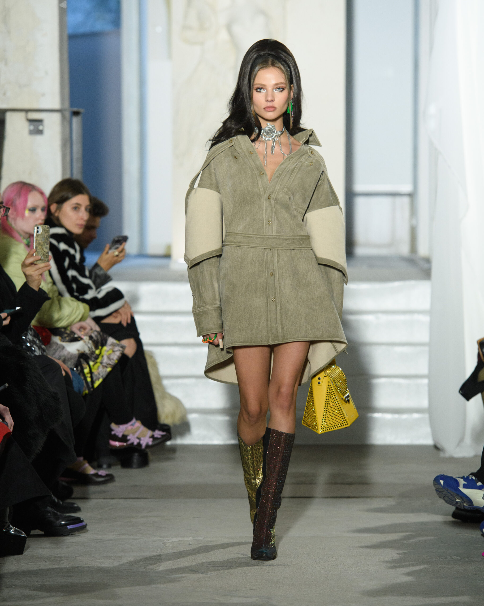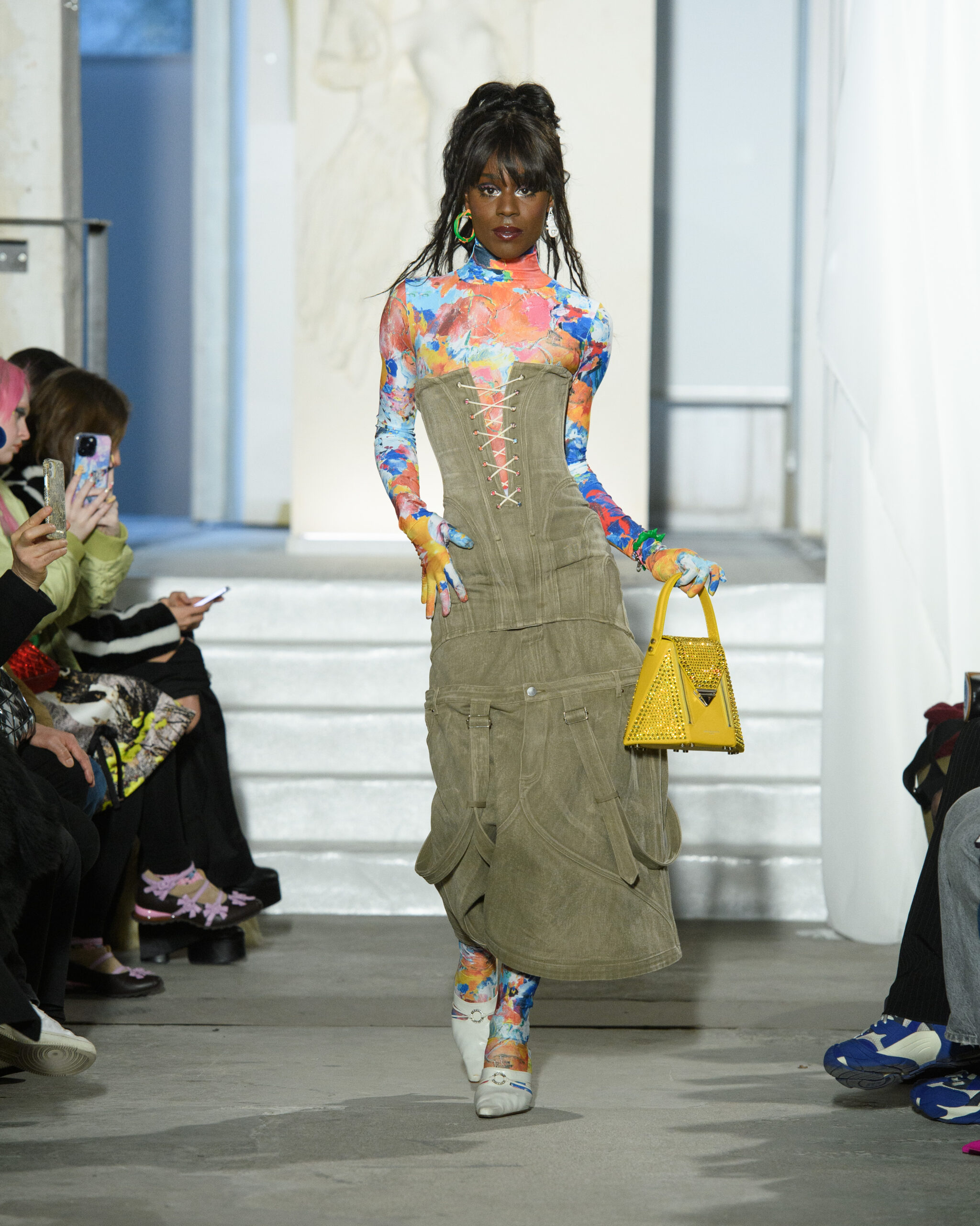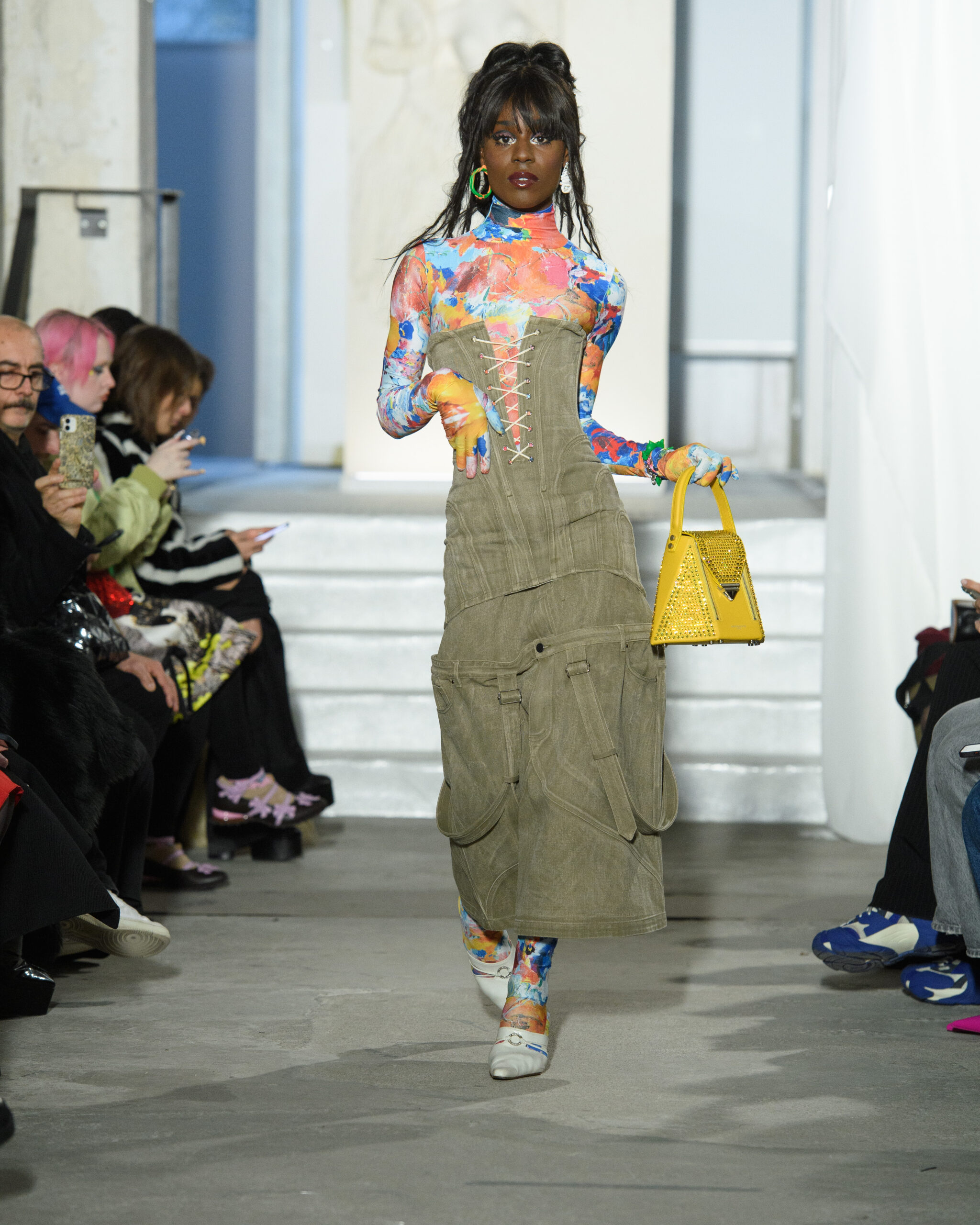 La collection Weinsanto pour l’automne-hiver présente une gamme de vêtements allant des classiques de jour et des vêtements de travail aux extravagances de couture d’évasion. L’approche sans limites de la collection voit des silhouettes moulantes, à la Samantha, aux styles surdimensionnés Badgal RiRi.