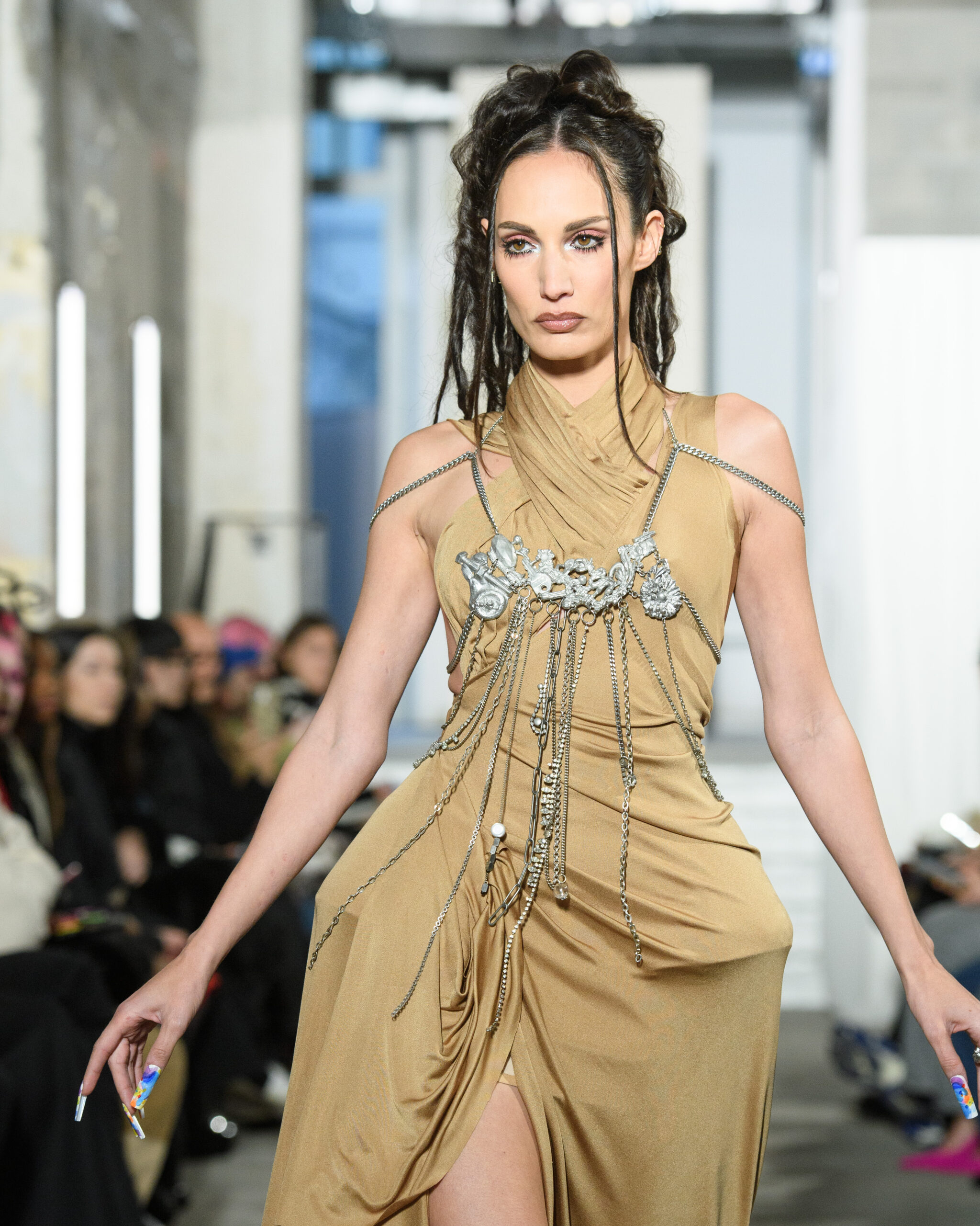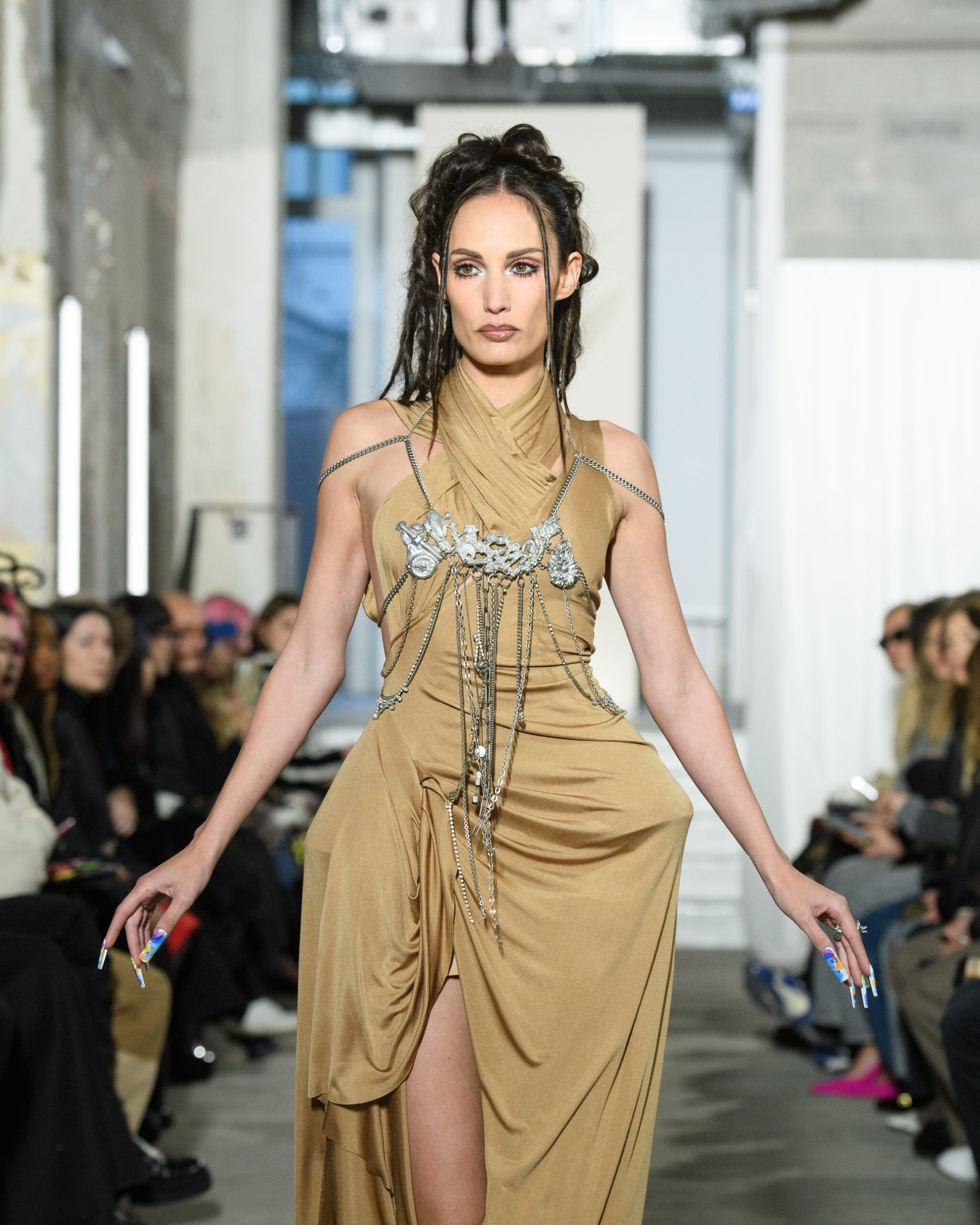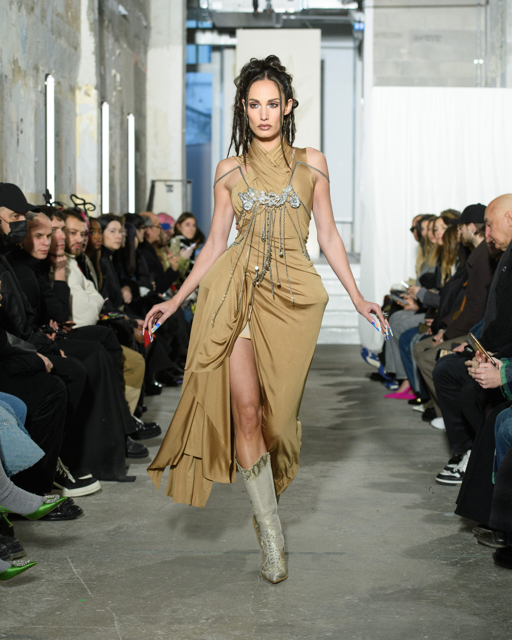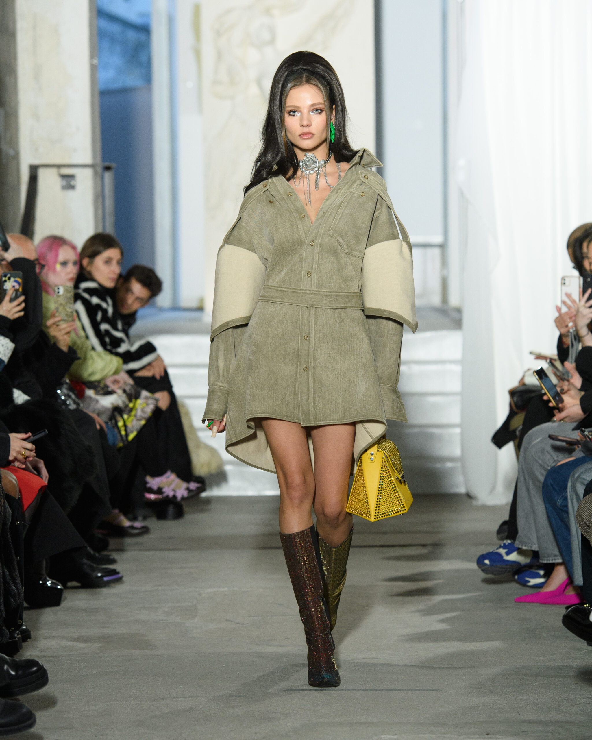 La collection Weinsanto pour l’automne-hiver présente une gamme de vêtements allant des classiques de jour et des vêtements de travail aux extravagances de couture d’évasion. L’approche sans limites de la collection voit des silhouettes moulantes, à la Samantha, aux styles surdimensionnés Badgal RiRi.