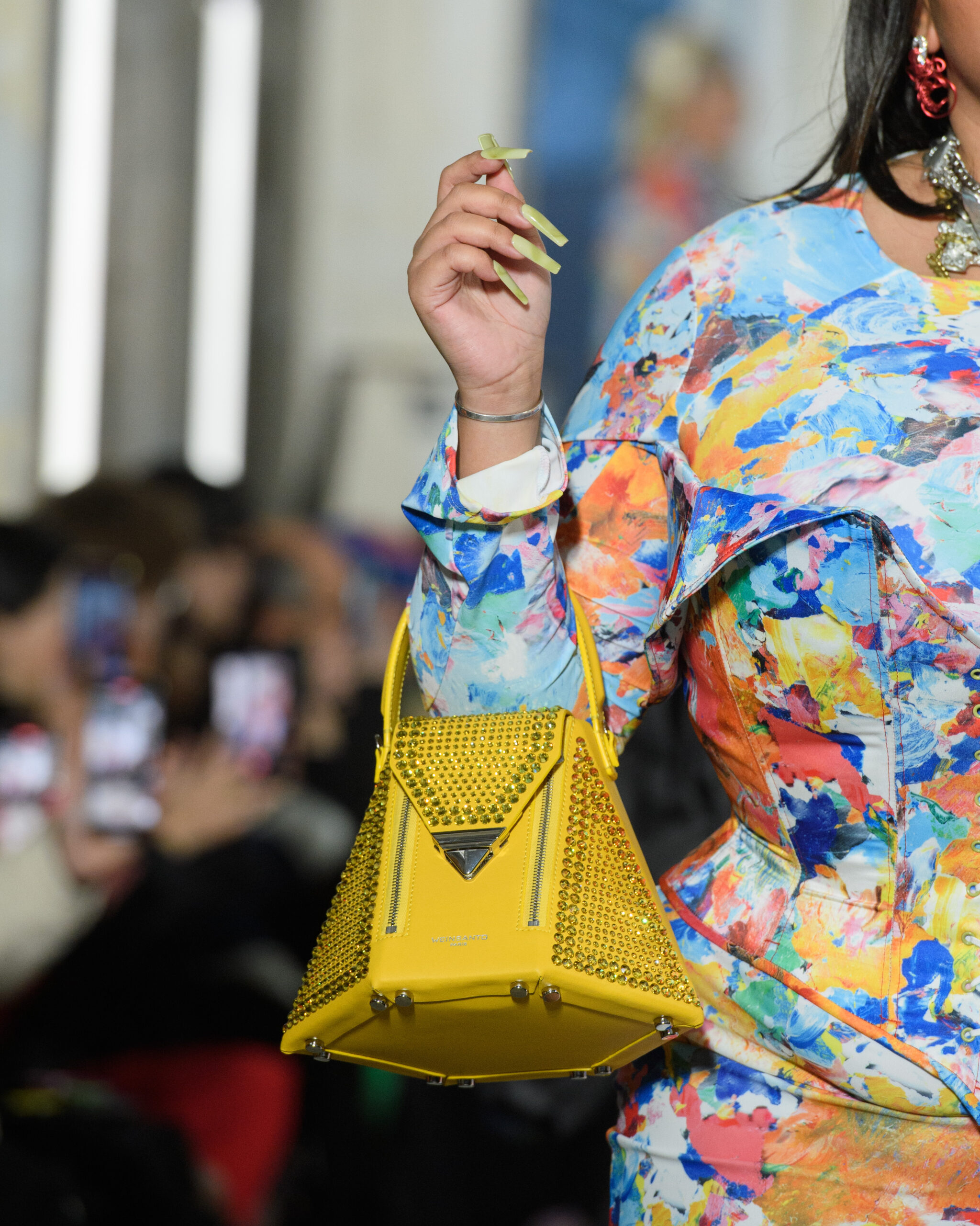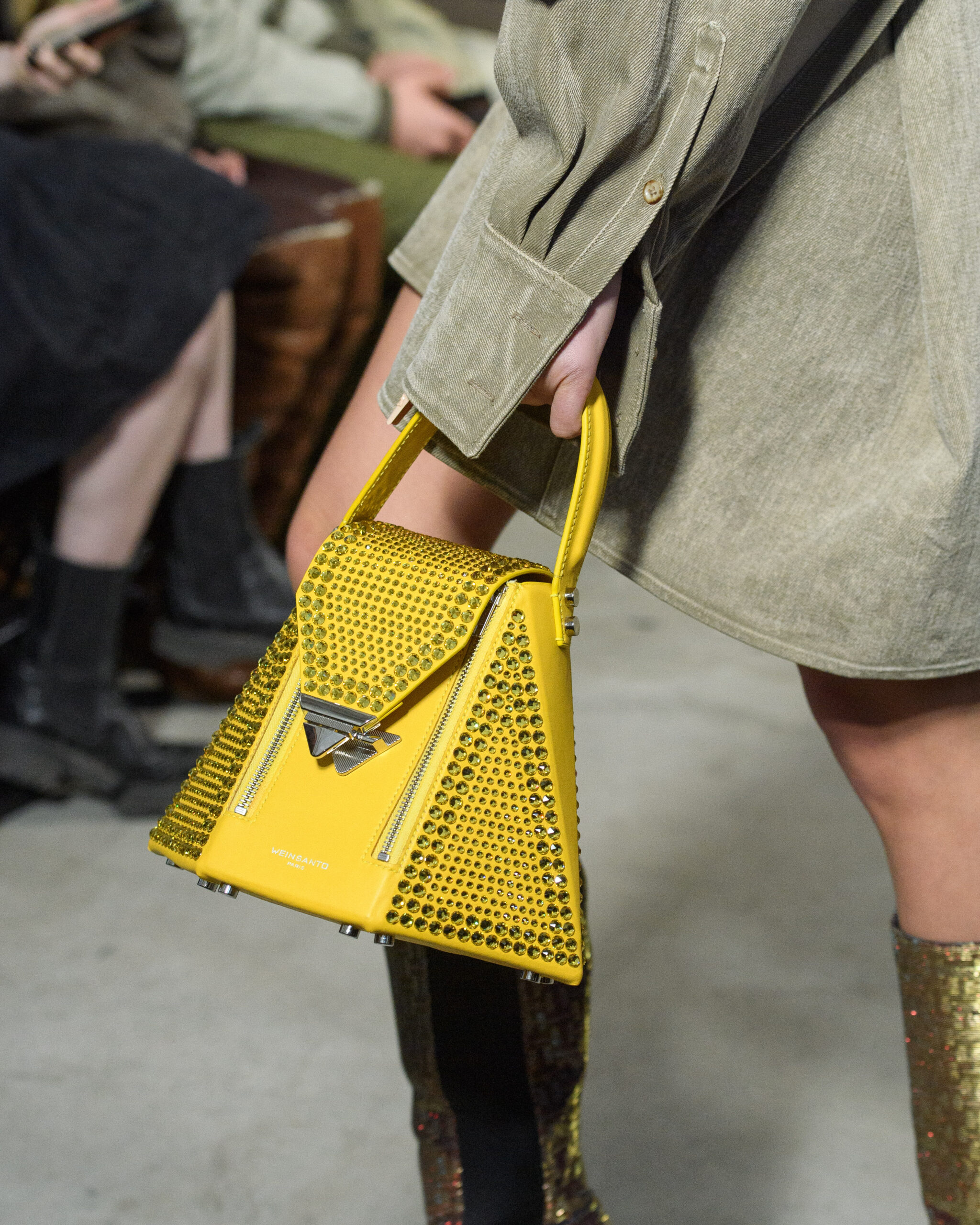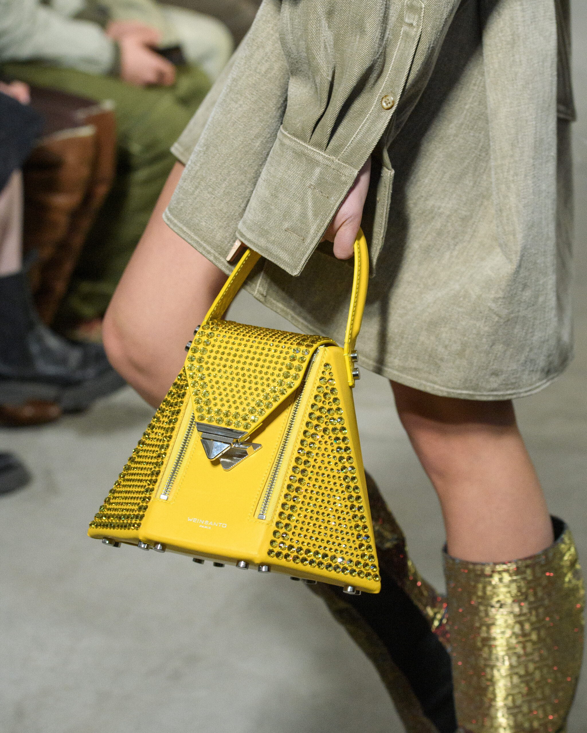 Weinsanto introduit également le « Sac Samantha » : un sac à bandoulière avec des détails de corseterie et des plis rappelant le traditionnel gâteau alsacien Kougelhopf, un hommage aux racines du designer. Le sac, avec le nouveau monogramme W en métal, est disponible en denim et en cuir.