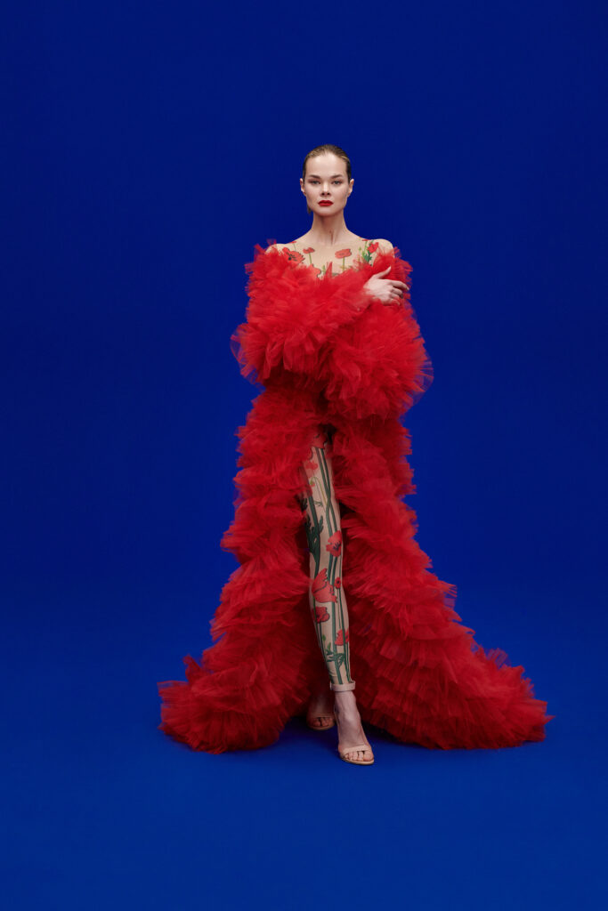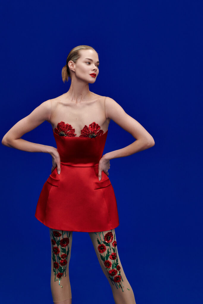 La collection s’inspire des fleurs de pavot, symbole éternel de beauté et de charme. Audacieux mais délicats, les pavots illuminent les créations couture de YANINA : robes et tuniques, jupes et pantalons palazzo. Le pavot est le motif que Yulia Yanina amène pour célébrer la couleur, le bonheur et l’amour – son manifeste en tant qu’artiste. Les fleurs de pavot ont inspiré de nombreuses formes et détails tels que des manches exagérées, des silhouettes romantiques et des décors faits à la main qui transforment visuellement les tissus, les graphismes et les nuances en champs fleuris.