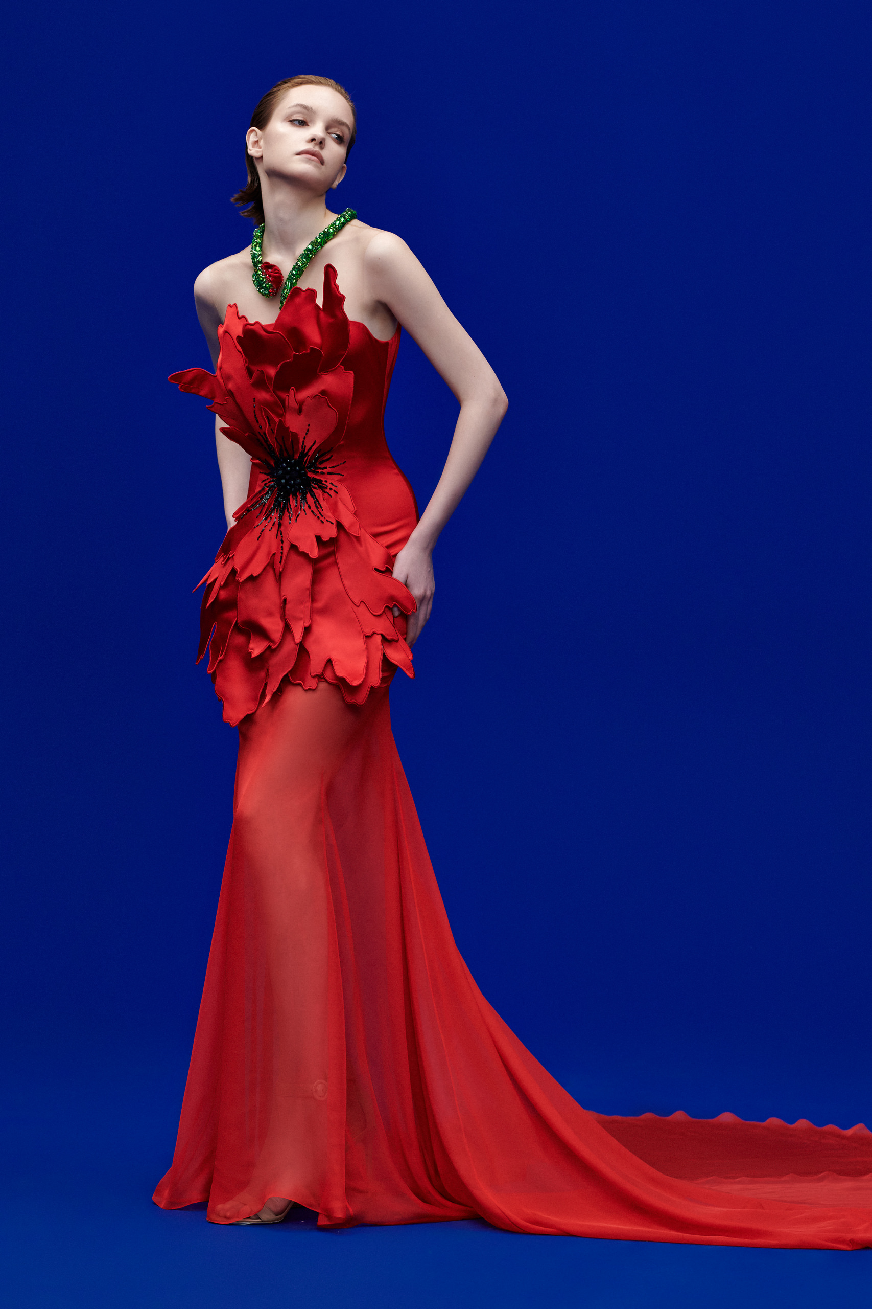 La collection s’inspire des fleurs de pavot, symbole éternel de beauté et de charme. Audacieux mais délicats, les pavots illuminent les créations couture de YANINA : robes et tuniques, jupes et pantalons palazzo. Le pavot est le motif que Yulia Yanina amène pour célébrer la couleur, le bonheur et l’amour – son manifeste en tant qu’artiste. Les fleurs de pavot ont inspiré de nombreuses formes et détails tels que des manches exagérées, des silhouettes romantiques et des décors faits à la main qui transforment visuellement les tissus, les graphismes et les nuances en champs fleuris.