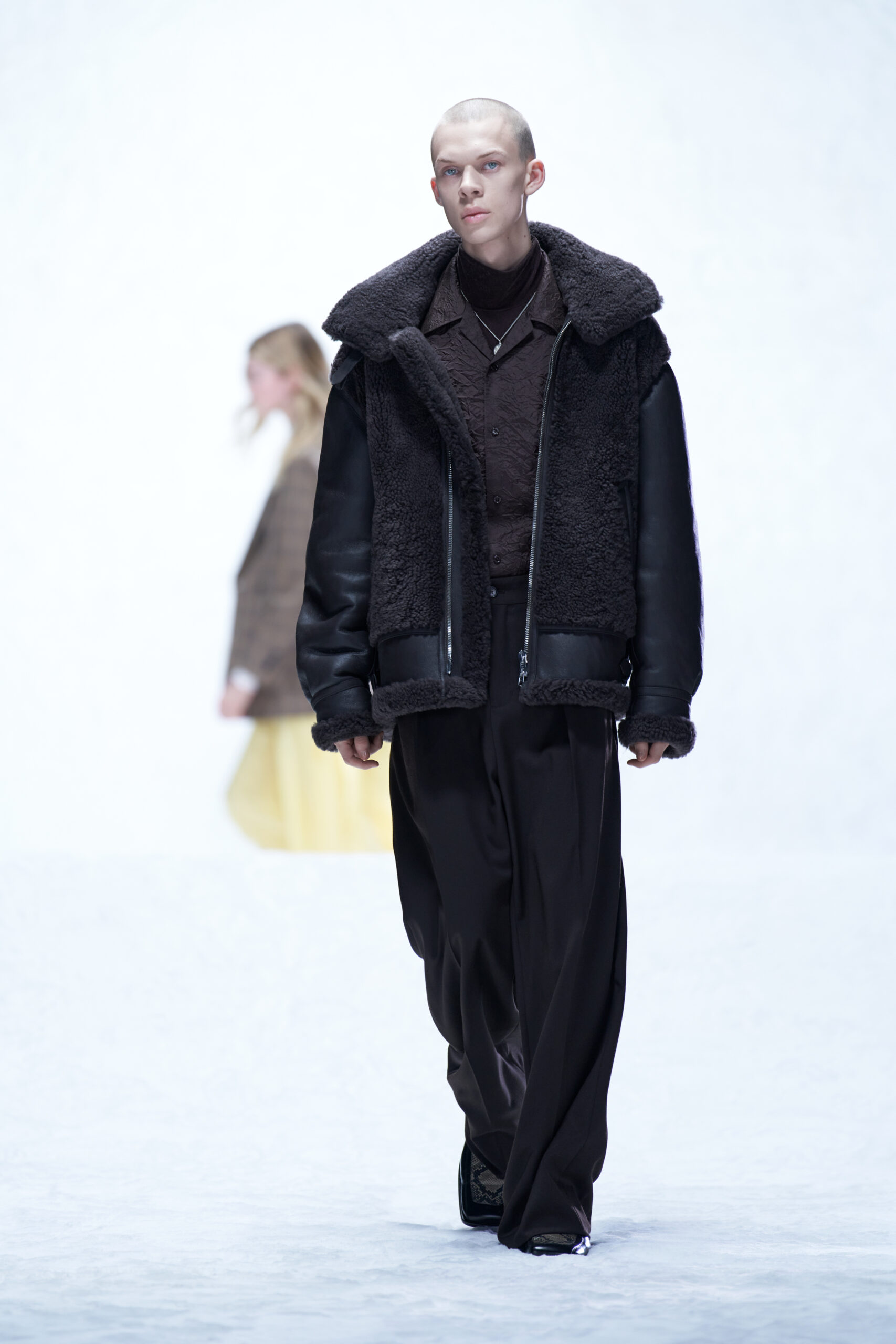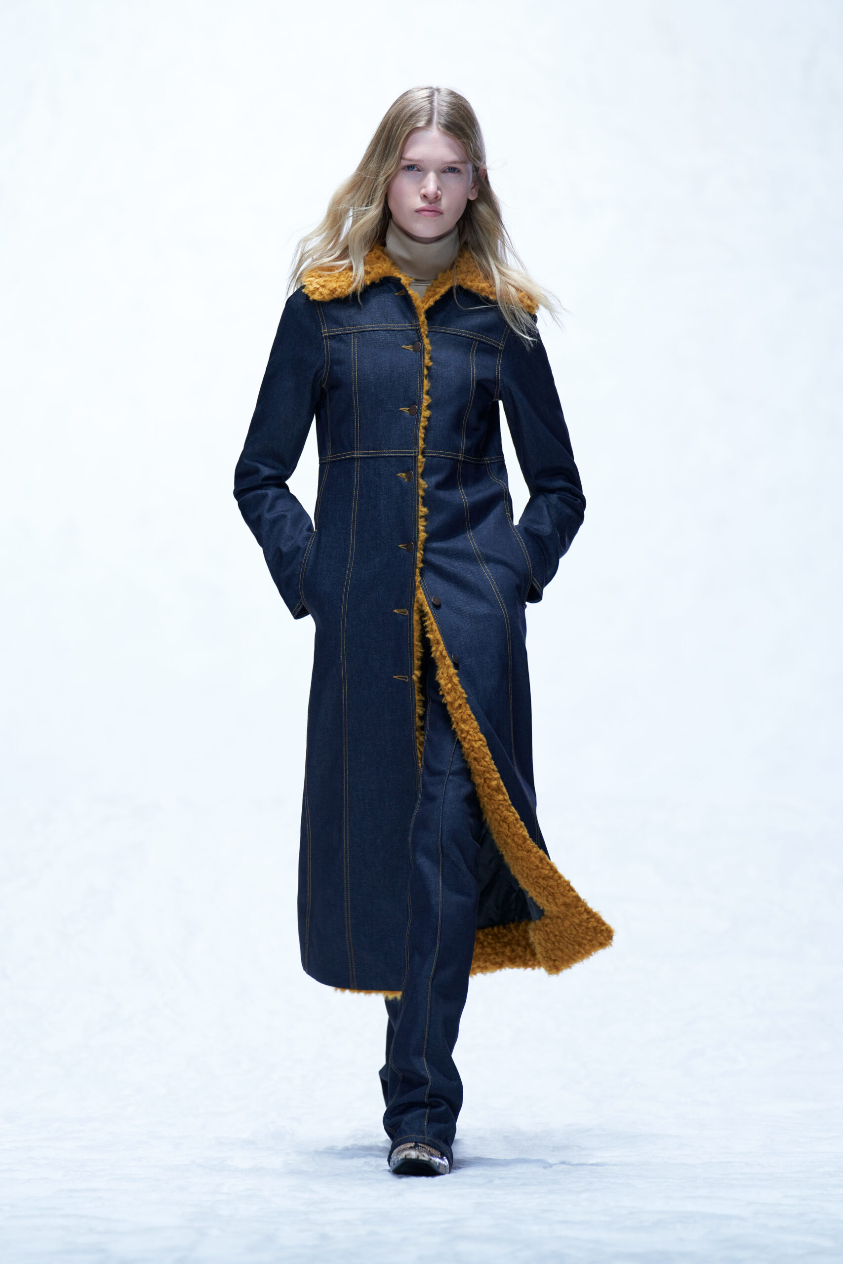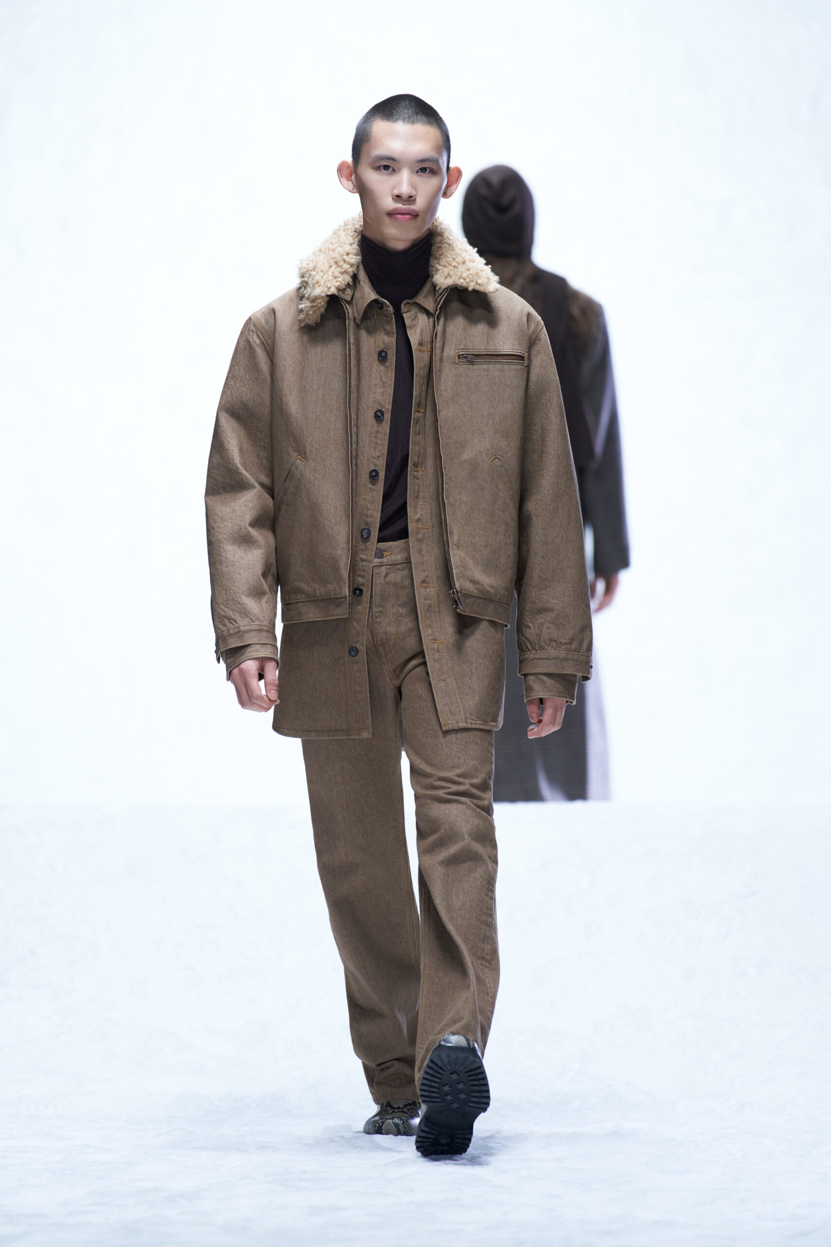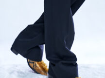 Le velours côtelé écrasé, le denim brut et la moleskine sont également à l’honneur, car les tissus ayant une inflexion des années 1970 sont filtrés à travers un objectif minimaliste des années 1990.