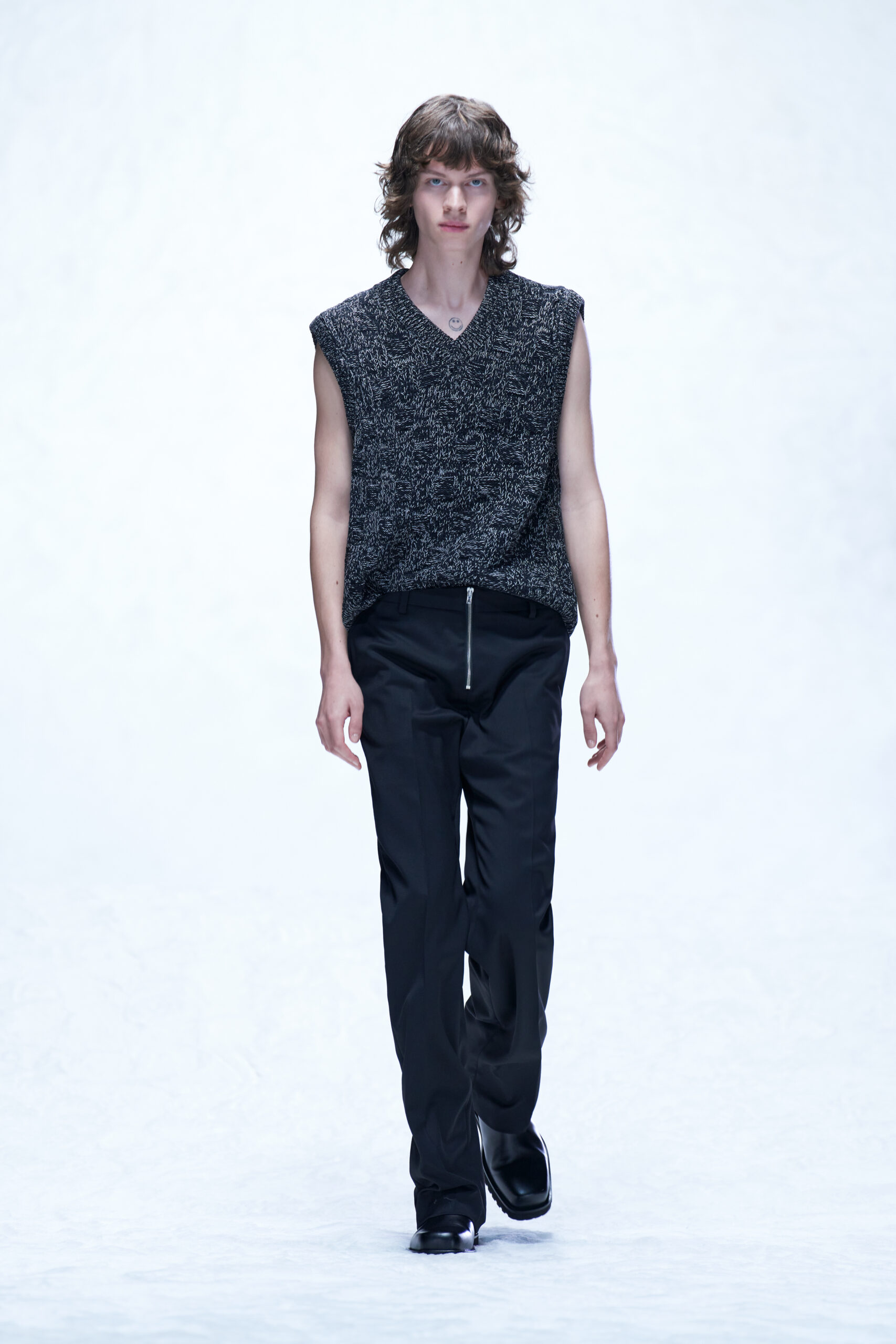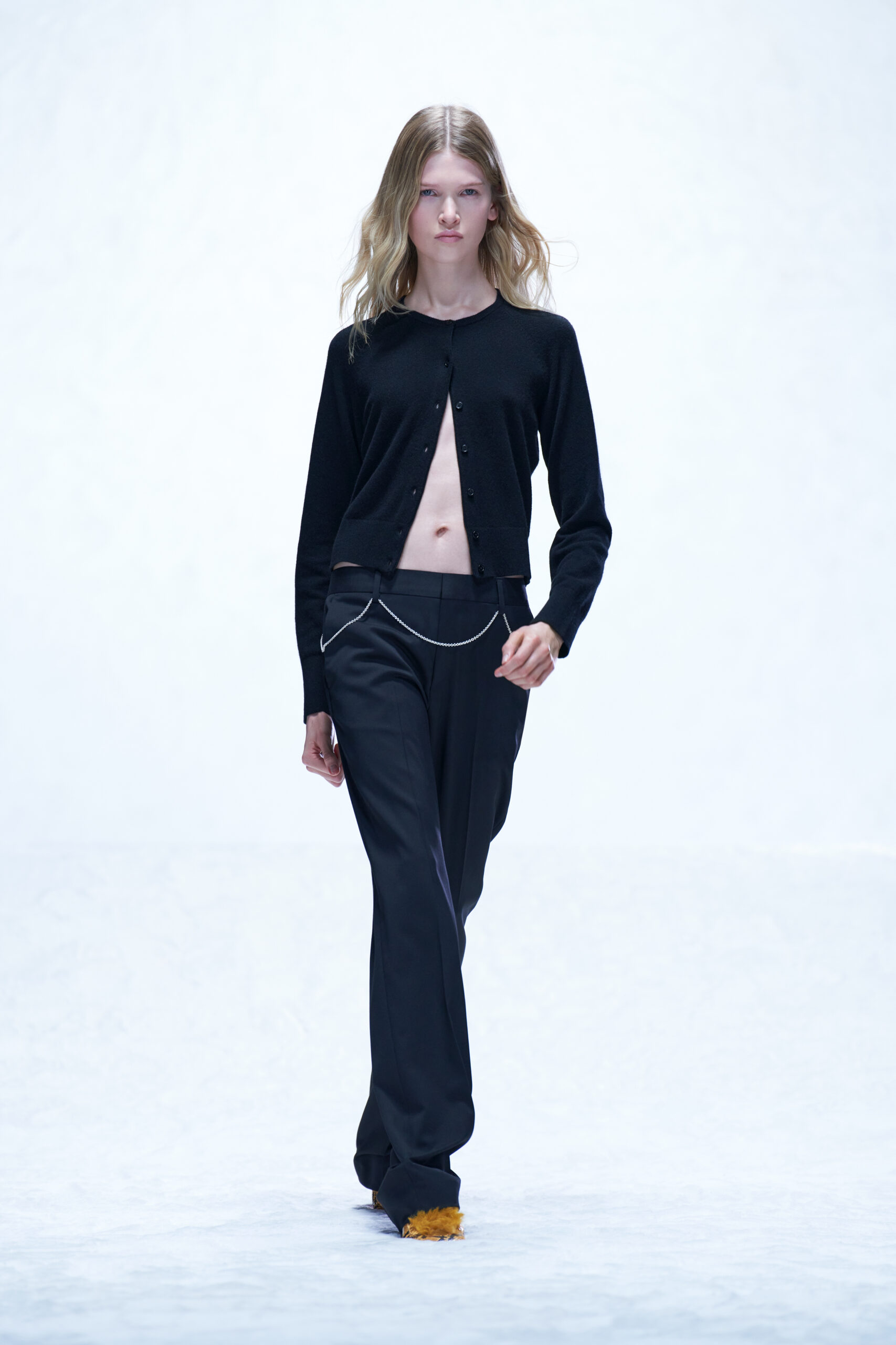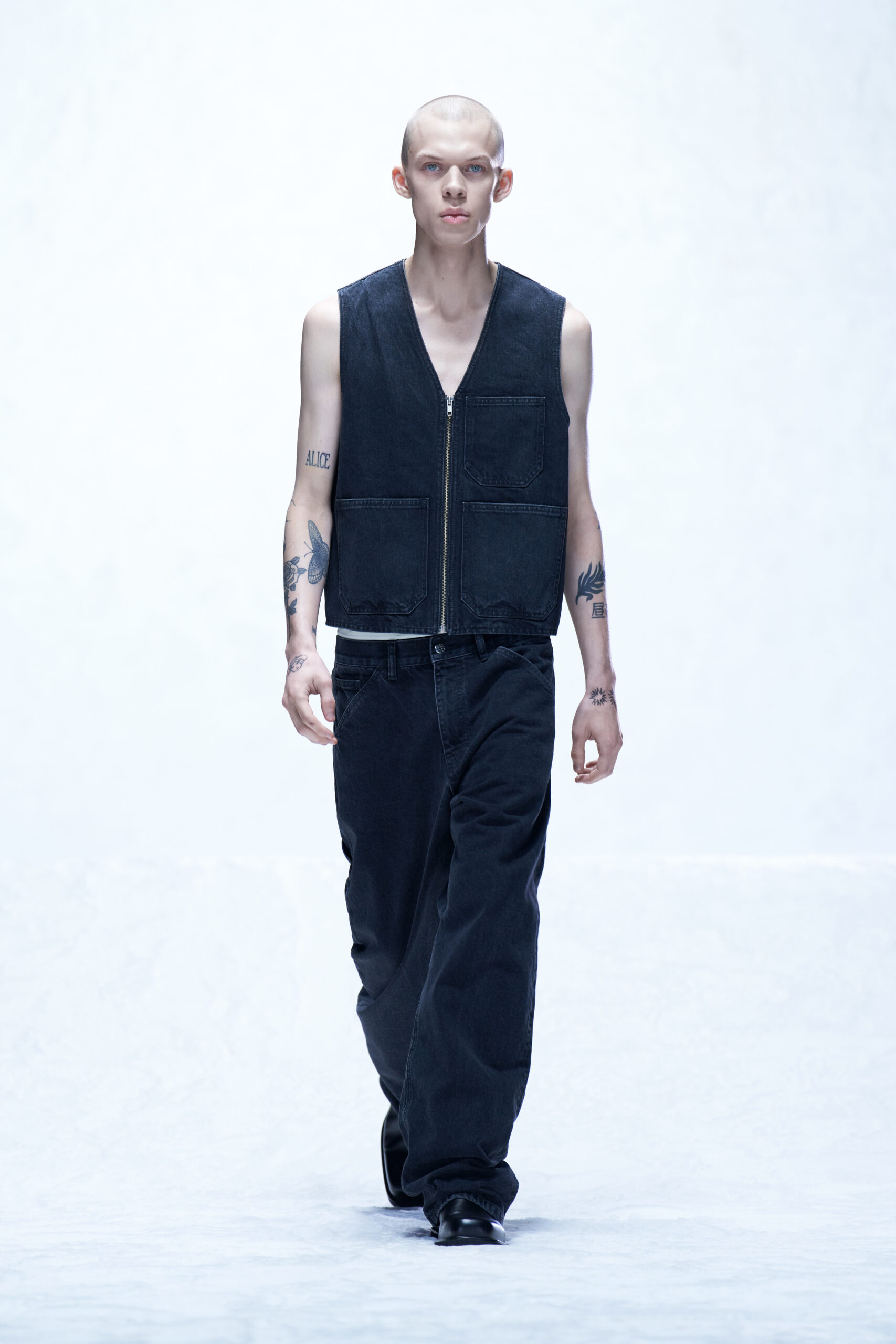 Le velours côtelé écrasé, le denim brut et la moleskine sont également à l’honneur, car les tissus ayant une inflexion des années 1970 sont filtrés à travers un objectif minimaliste des années 1990.