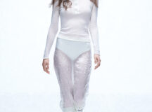 La collection est équilibrée grâce à l’utilisation de couches transparentes, alors que les tissus aérés et écrasés, une palette glaciale soulignent la légèreté et le mouvement. La saison voit également la renaissance du tricot gaufré des archives de Filippa K, appliqué à une série de vêtements qui font référence aux sous-vêtements de ski classiques. De plus, la marque a introduit un nouveau monogramme saisonnier écrit à la main, inspiré des marques de ski vintage, qui apparaît sur certains vêtements et accessoires.