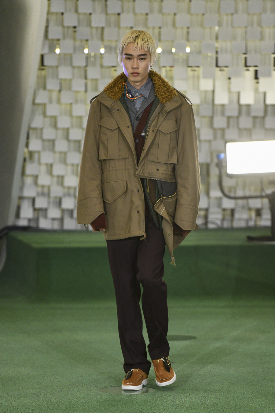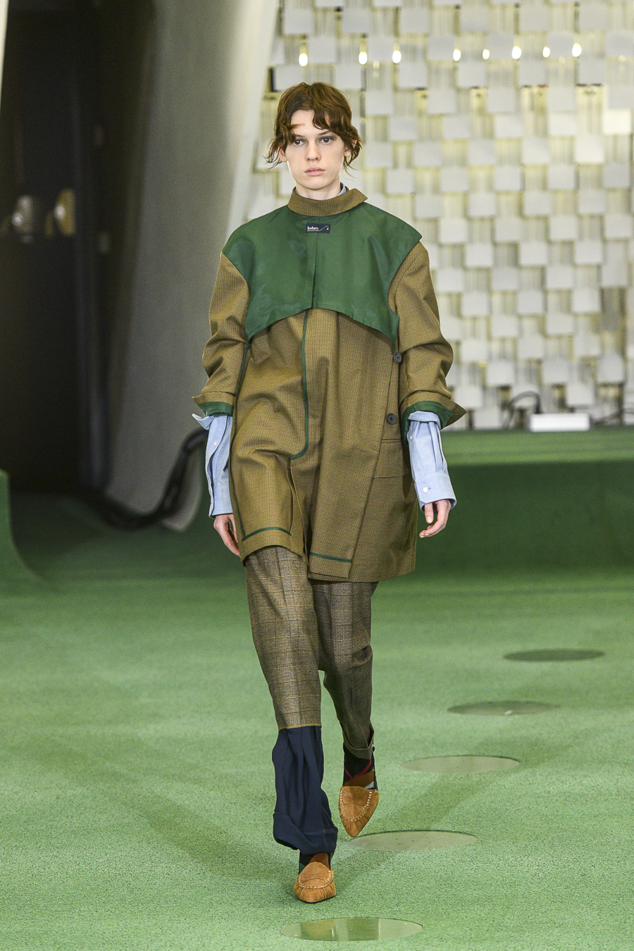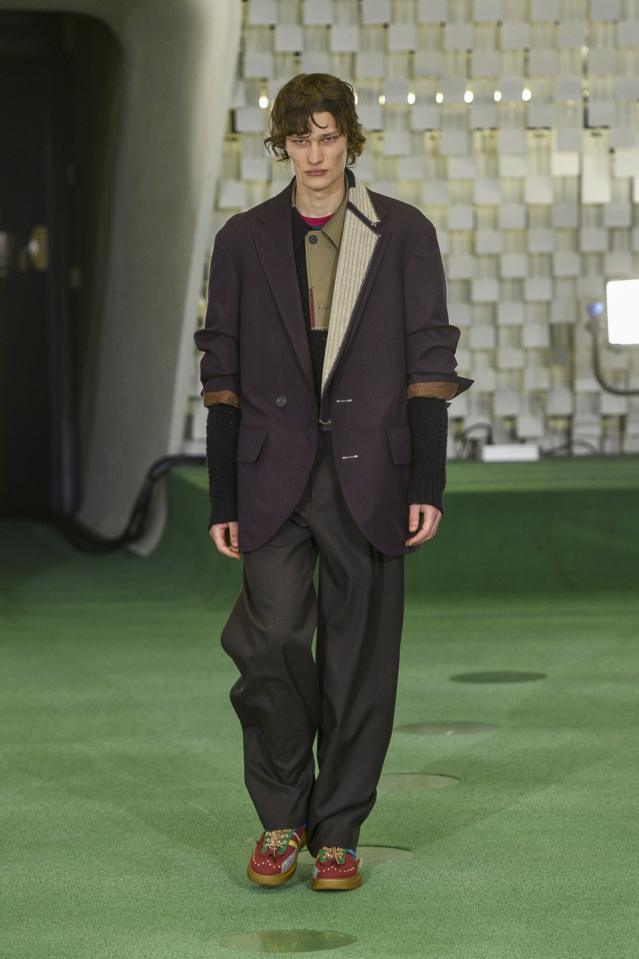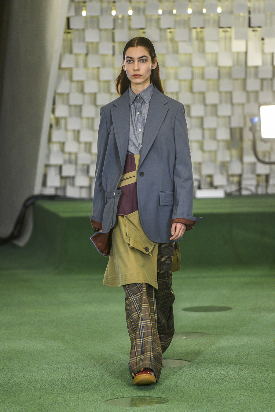 L’approche tactile d’Abe est évidente dans ses créations, avec des doublures de manteaux à l’extérieur, des blazers retournés à l’envers et des étiquettes de marque bien en évidence sur les revers. Cela ajoute une touche unique et originale aux créations, tout en offrant une expérience visuelle intéressante.