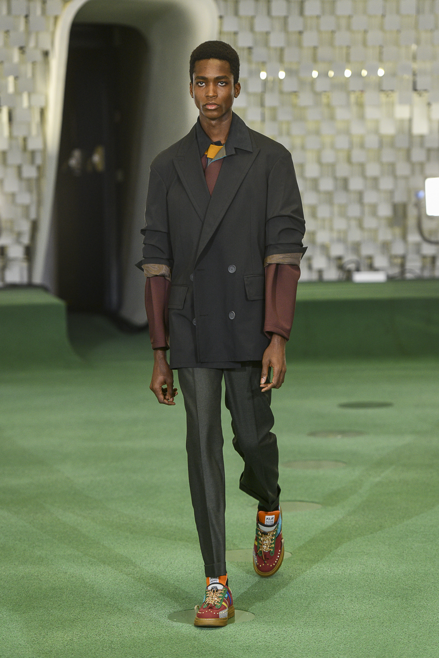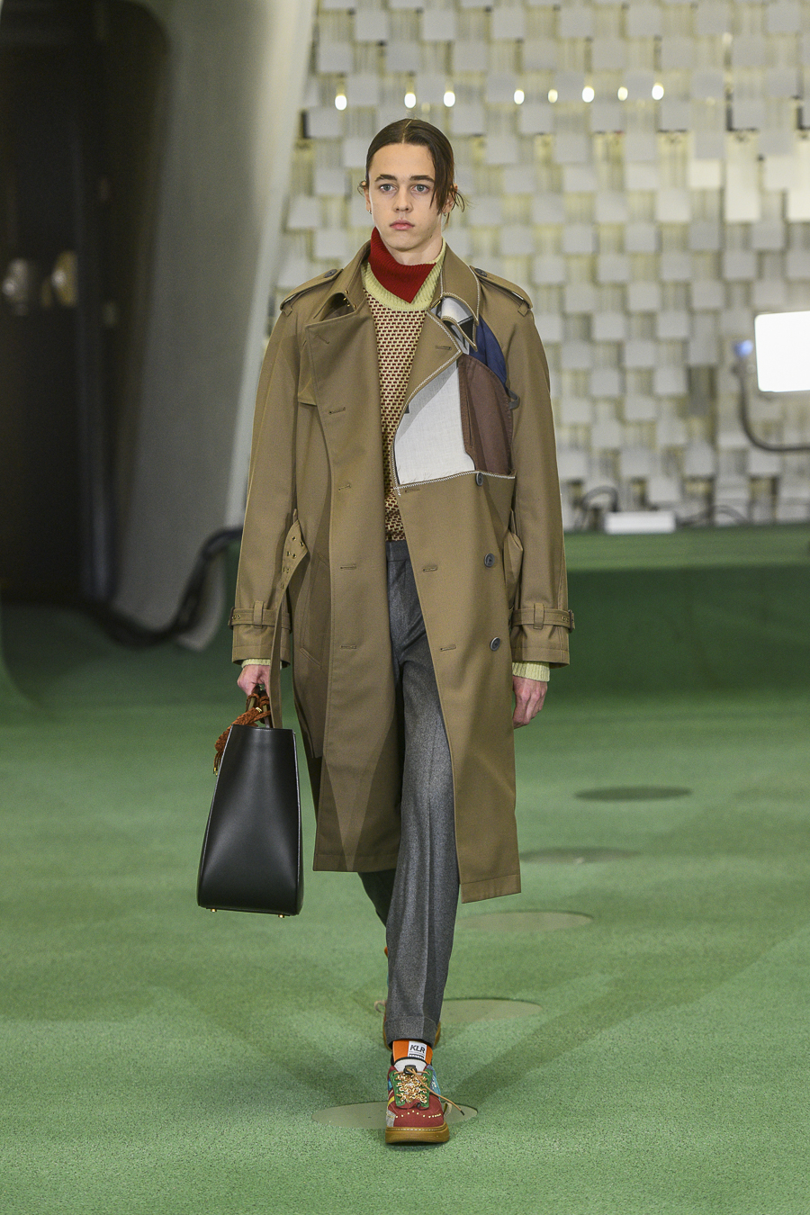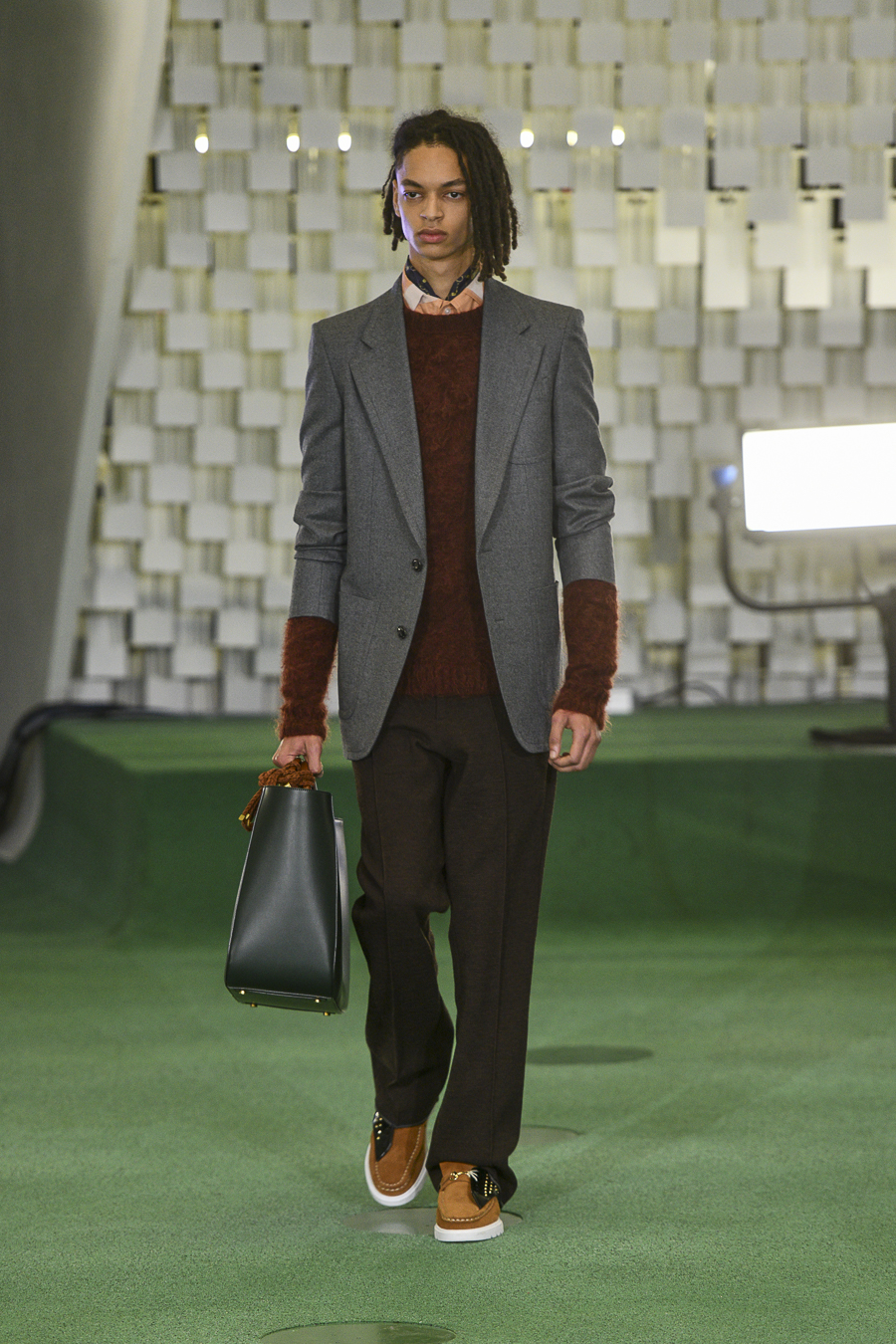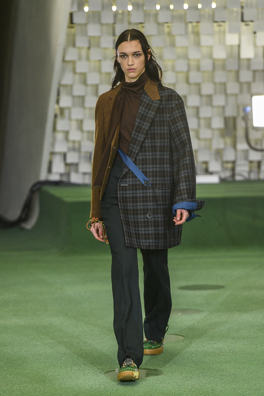 L’approche tactile d’Abe est évidente dans ses créations, avec des doublures de manteaux à l’extérieur, des blazers retournés à l’envers et des étiquettes de marque bien en évidence sur les revers. Cela ajoute une touche unique et originale aux créations, tout en offrant une expérience visuelle intéressante.