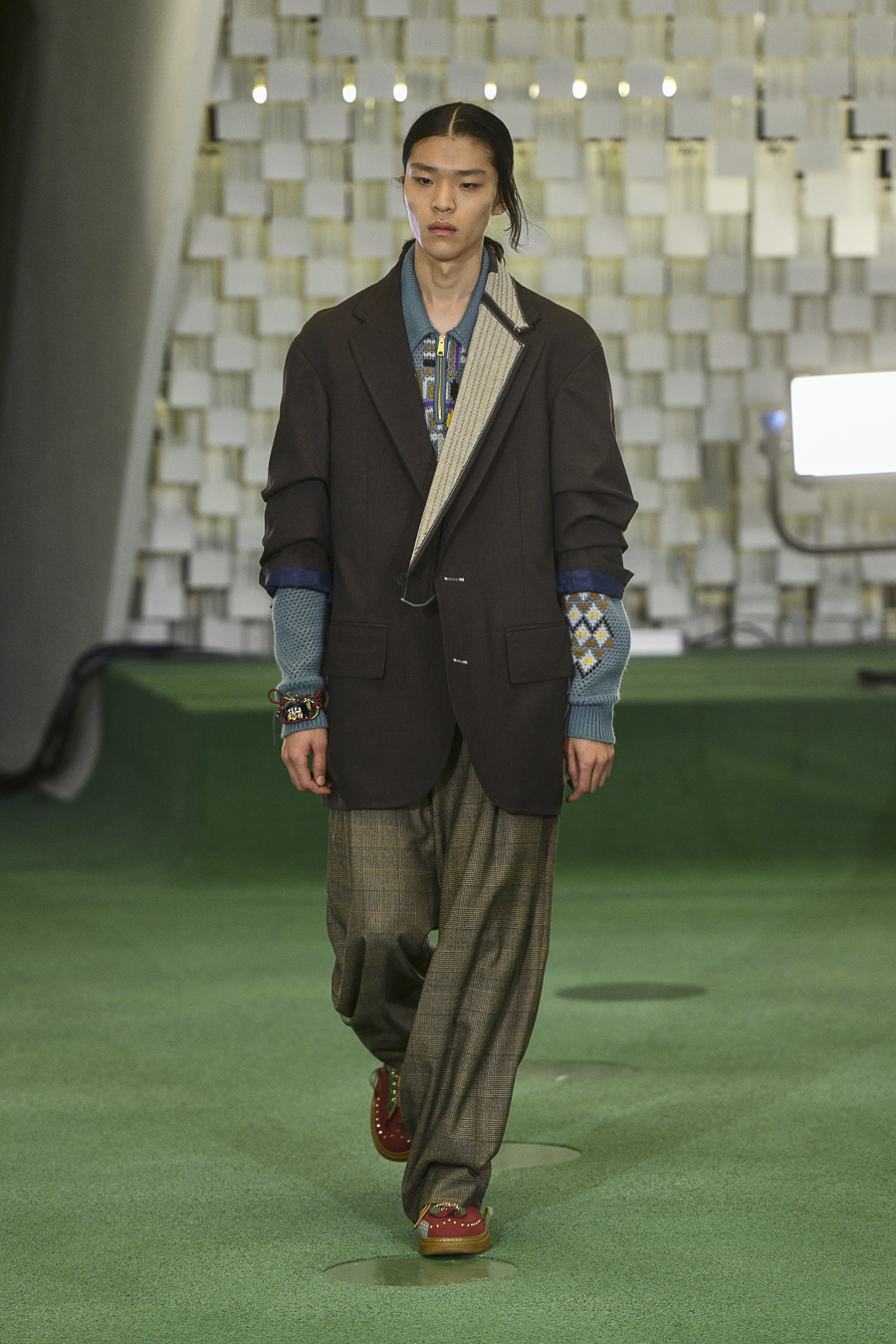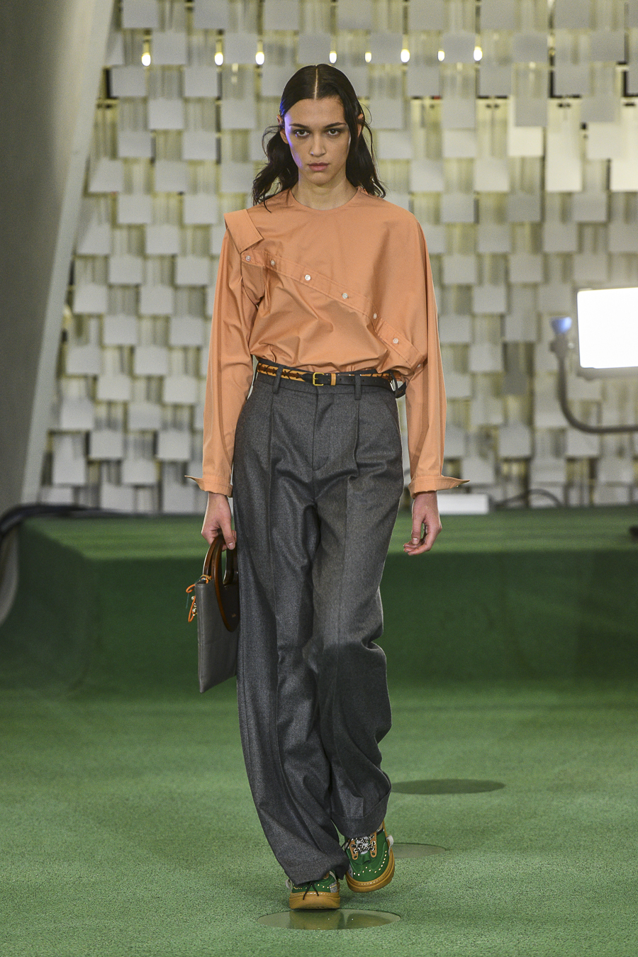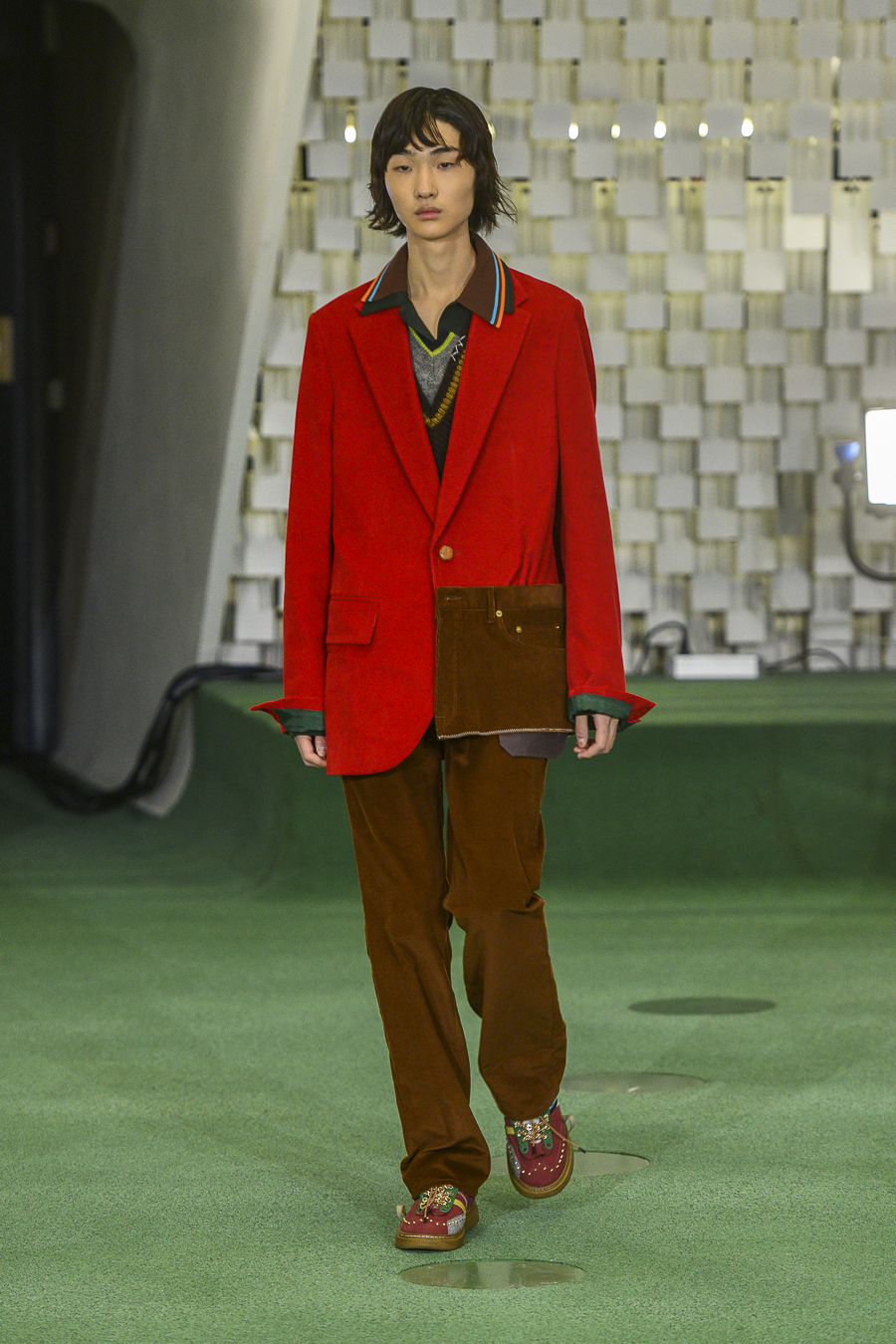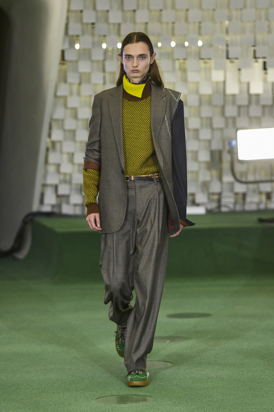 L’approche tactile d’Abe est évidente dans ses créations, avec des doublures de manteaux à l’extérieur, des blazers retournés à l’envers et des étiquettes de marque bien en évidence sur les revers. Cela ajoute une touche unique et originale aux créations, tout en offrant une expérience visuelle intéressante.