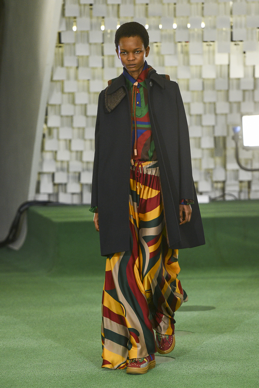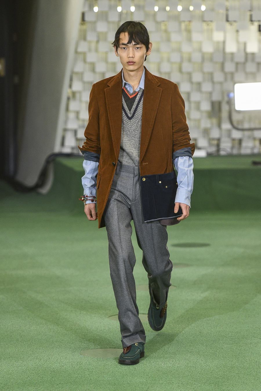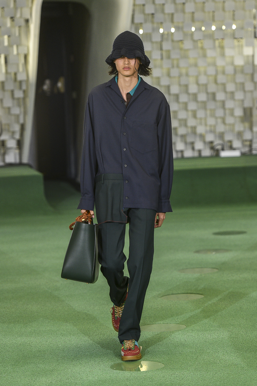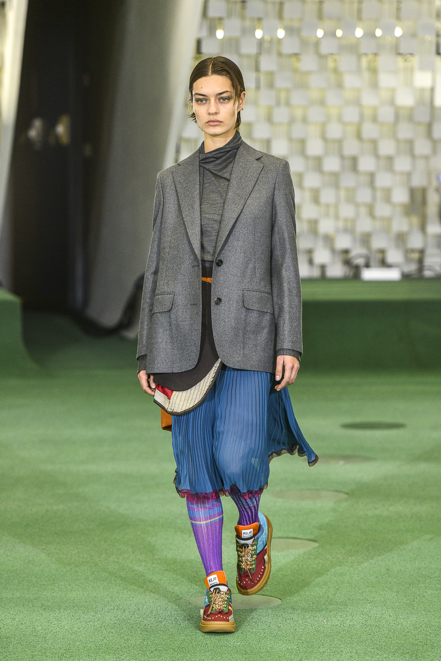 L’approche tactile d’Abe est évidente dans ses créations, avec des doublures de manteaux à l’extérieur, des blazers retournés à l’envers et des étiquettes de marque bien en évidence sur les revers. Cela ajoute une touche unique et originale aux créations, tout en offrant une expérience visuelle intéressante.