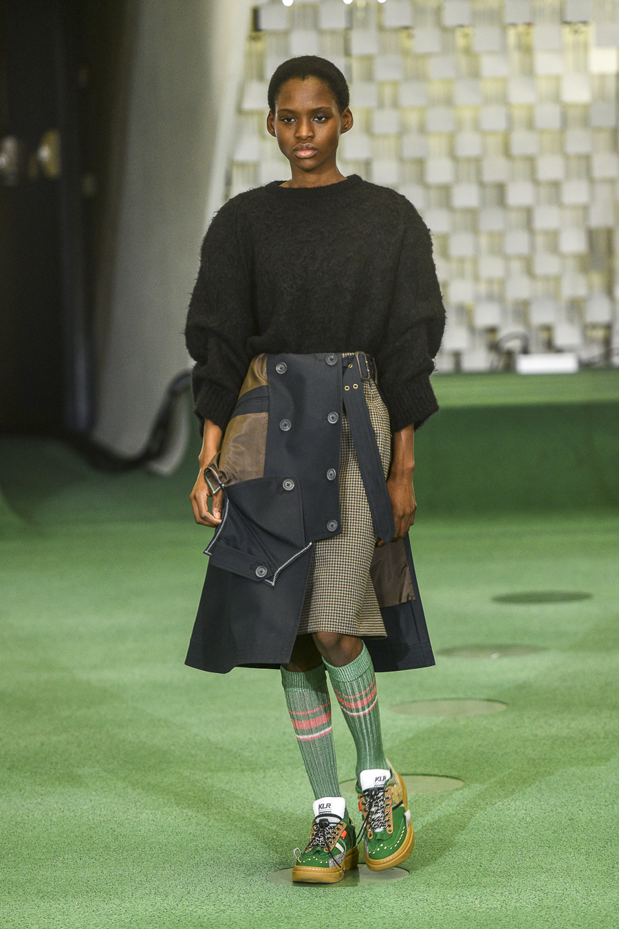 Abe repousse également les limites en utilisant des matériaux et des accessoires inattendus, comme des baskets avec des pointes et des boucles minuscules. Il réimagine également des vêtements traditionnels, tels que des trenchs, en jupes, ajoutant une touche de modernité à des classiques intemporels.
