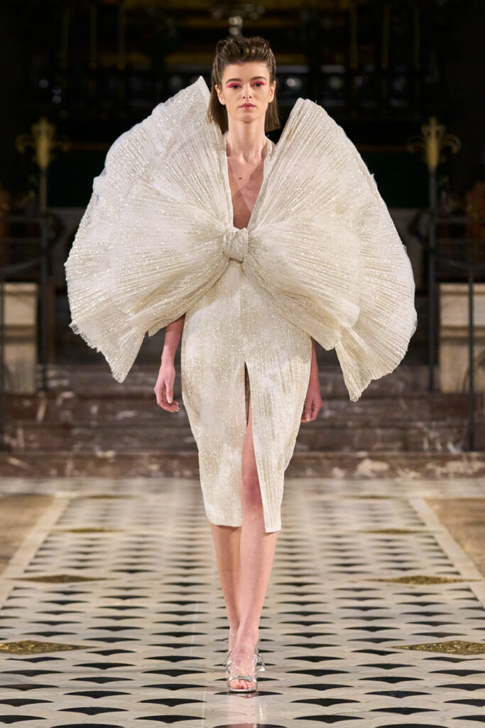 Lena Erziak présente sa collection couture printemps-été 2023 lors de la Haute Couture Paris Fashion Week, en mettant en avant les étoiles d’Hollywood comme source d’inspiration. Cette collection rend hommage à l’âge d’or du cinéma, une époque où la couture était en parfaite adéquation avec son temps. Lena Erziak crée un glamour spectaculaire et luxueux, en y ajoutant une vision personnelle et moderne.