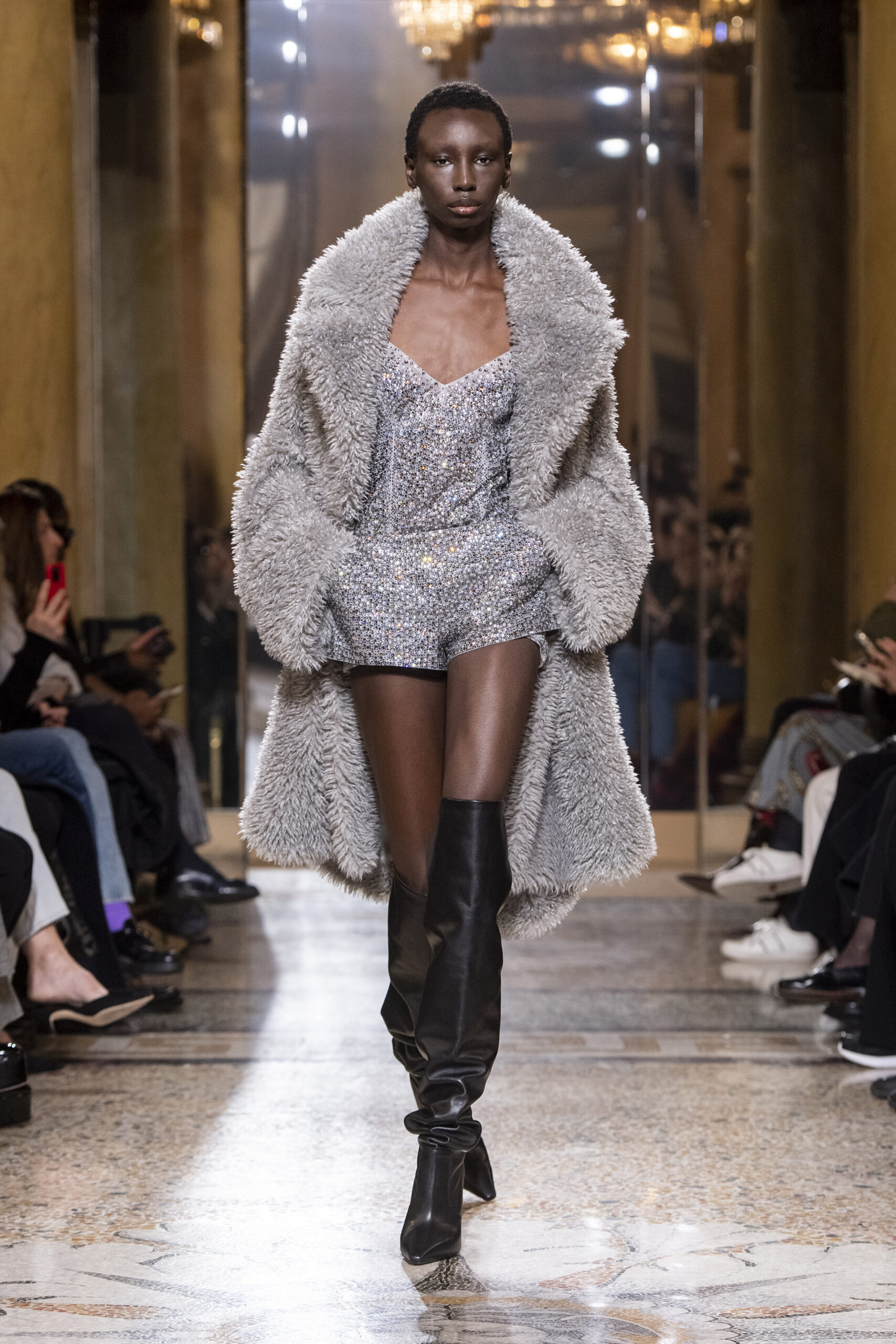 En se remémorant une conversation avec un designer de costumes de Cinecittà, toujours émerveillé par la beauté, l’élégance, le glamour et la féminité affirmée de la légendaire actrice Ava Gardner, Ermanno Scervino a développé sa garde-robe automne/hiver 2023-2024.