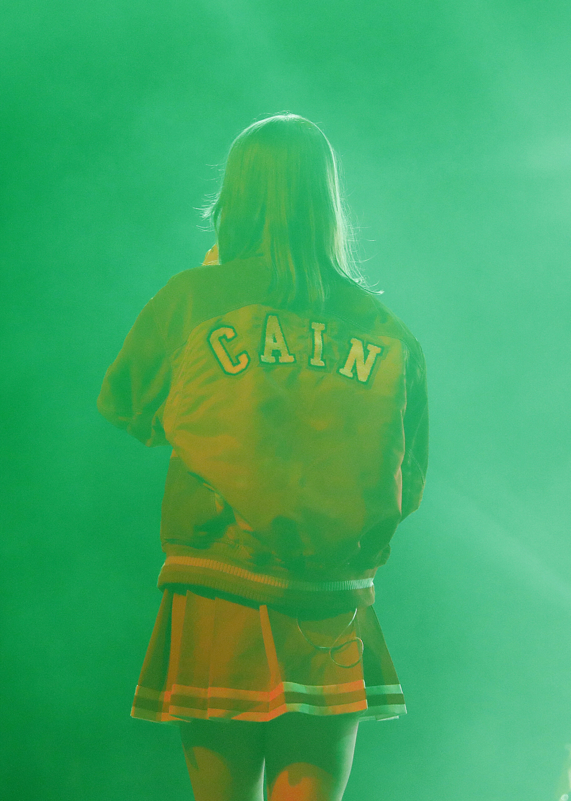 The House of Givenchy is pleased to announce singer Ethel Cain wore a custom Givenchy outfit, designed by Matthew M. Williams, to the 2023 Coachella Valley Music and Arts Festival held on April 15th 2023 in Indio, CA. Red nylon varsity jacket, worn with white and red cotton cropped T-Shirt, and red and white wool pleated skirt.